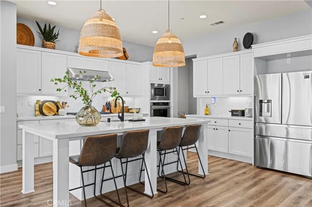 Welcome to your dream home at 20825 Red Sky Ct, Located in the Gated Community "Five Knolls" This stunning single-family residence boasts an impressive 4,003 square feet approximately of luxurious living space, offering an ideal blend of comfort and style. With five spacious bedrooms and five well-appointed bathrooms, this home provides ample room for relaxation and entertainment. Step inside to discover elegant laminate floors and recessed lighting that create a warm and inviting atmosphere throughout. The gourmet kitchen is a chef's delight, featuring stainless steel appliances, a gas stove and oven, premium counters, and an expansive island that's perfect for gatherings. The large pantry makes the storage convenient. Enjoy the convenience of a refrigerator, dishwasher, and range hood, all designed to make culinary adventures a breeze. Elegant fireplaces add a touch of sophistication to the living spaces, while the primary bedroom boasts a luxurious ensuite bathroom with a separate tub and shower, walk-in closets, and double sinks. Each additional bedroom is thoughtfully designed with closets for ample storage. Outdoor living is a dream with a beautifully landscaped backyard, complete with a built-in barbecue, fire pit, and tasteful lighting, lawn and fountain. Enjoy leisurely days at the communal pool or in the pool house, perfect for hosting memorable gatherings. The covered seating area in the backyard provides shade and comfort. This community also has a expansive and lush park. This home ensures year-round comfort with central AC and heating, and the dedicated laundry room adds convenience to your daily routine. Experience the best of Santa Clarita living in this exquisite residence. Don't miss the opportunity to make it your own!