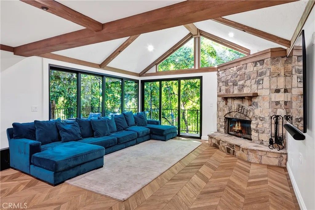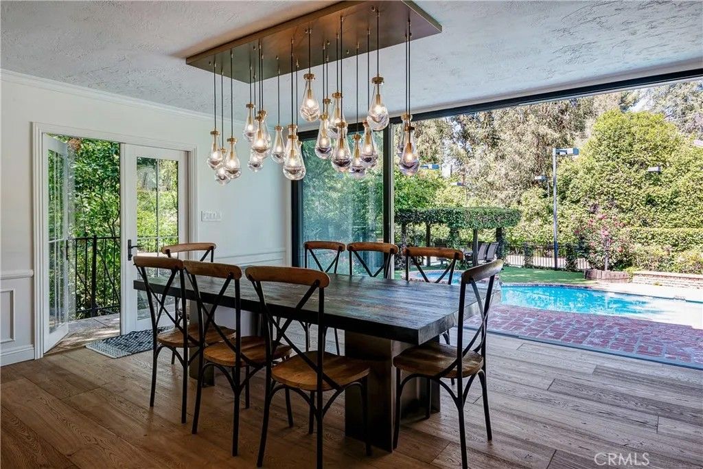 Privately situated behind secluded gates in one of Tarzanas most sought-after neighborhoods just South of Ventura Boulevard, this timeless 1-acre tennis court estate is an exclusive sanctuary. Two gates open to a long, treelined driveway and sprawling park-like lot, where mature landscaping and a classic architectural design create striking curb appeal. Featuring over 5,500 square feet of thoughtfully designed living space, this modern traditional 2-story features 6 spacious bedrooms and 6 bathrooms. Oversized glass doors from the formal dining area open to the patio overlooking the pool and spa, seamlessly blending indoor and outdoor living. A flexible downstairs roomperfect as a music studio, lounge, or studyadds versatility to the floor plan, along with a quiet home office. The chefs kitchen is a true showpiece, outfitted with premium Miele appliances, double ovens, marble countertops with backsplash, and custom cabinetry. A breakfast nook perfectly appointed next to large windows and doors opening out to another outdoor space. An oversized family room with beautiful wood beamed ceilings, fireplace, and floor to ceiling sliding glass doors which fully open to create a disappearing corner and bring the outside in. Adjacent to the rec/ game room, complete with bar and pool table. Upstairs, the primary suite serves as a private retreat, featuring a contemporary electric fireplace and its own secluded terrace with sweeping views of the pool and tennis court. The spa-inspired bathroom features sleek porcelain finishes, a soaking tub, walk-in steam shower, dual sinks, modern cabinetry and walk-in closet. The highlight of this property is the sprawling nearly 1 acre outdoor oasis. With multiple lounge areas, surrounding speakers throughout, a pergola-shaded patio, pool, tennis court, and a spacious grassy lawn. An additional side yard features an in-ground trampoline, and grassy area with playground. At the rear of the property, a hidden staircase leads to a secluded ravine. Also comes with architectural plans to create an additional over 2,000 square foot two story accessory building. Located just moments from Ventura Boulevards premier shopping and dining, and top-rated private schools, this gated estate is a rare opportunity to experience elevated living in the heart of Tarzana.