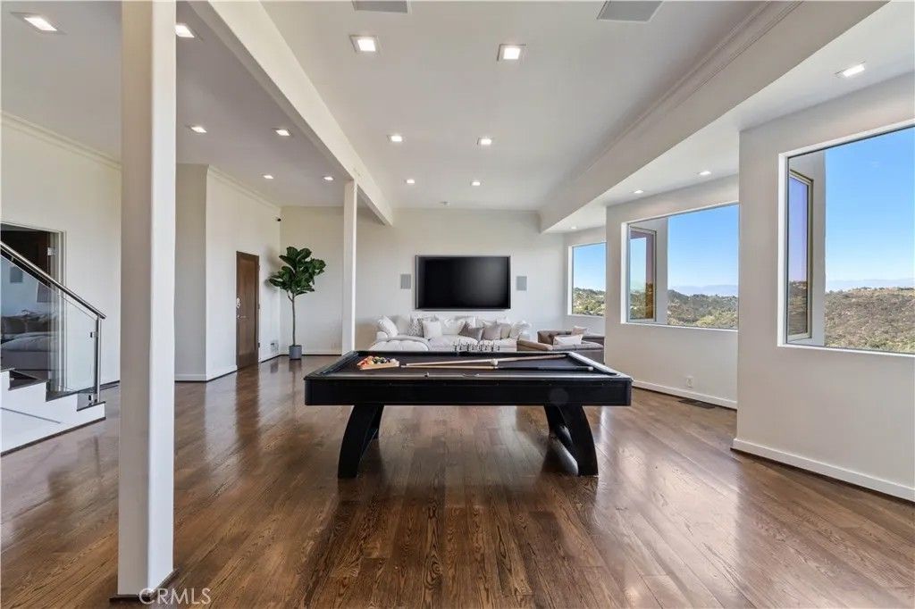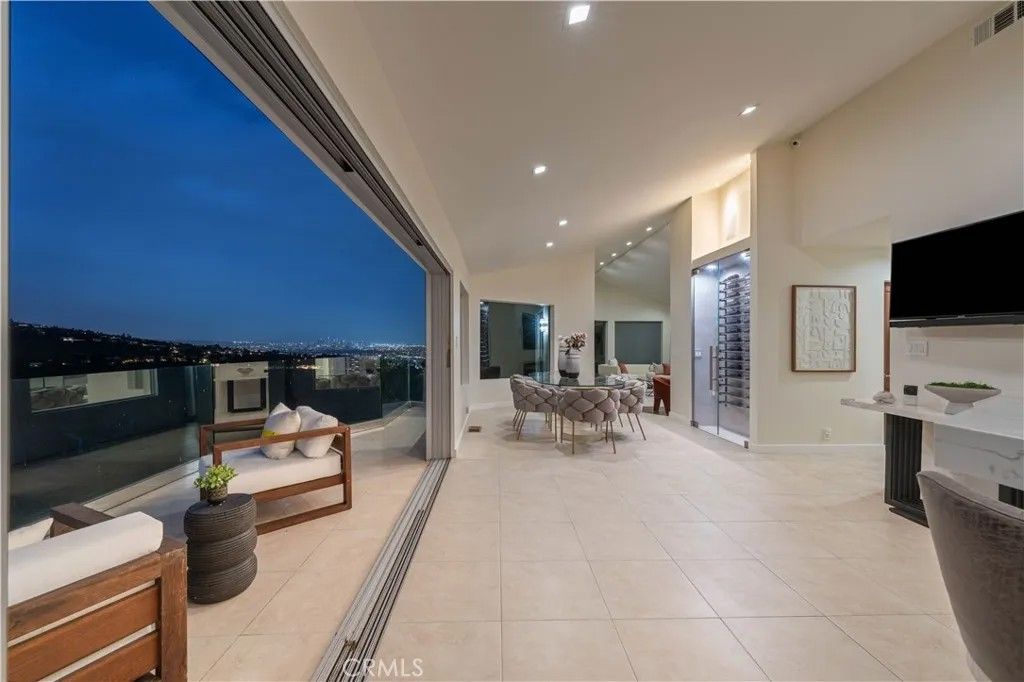 Lowest price per foot in all of BHPO! Seller Financing available. A masterpiece of modern luxury, crafted by acclaimed architect Donald Woolf, spans 6,573 sq ft on a sprawling acre lot. This fully walled and gated estate commands jetliner views of the canyons, rolling hills, and the glittering DTLA skyline. Step through the grand 12-ft pivot door into a world of elegance, where oakwood floors and 14-ft soaring ceilings create a serene ambiance. Expansive Fleetwood doors seamlessly blend indoor/outdoor spaces, inviting natural light to dance across the home. The family room, adorned with a sleek linear fireplace and framed by panoramic scenery. The gourmet kitchen, a true culinary haven, showcases exquisite Italian cabinetry, premium Thermador appliances, and a spacious balcony ideal for al fresco dining. The primary suite is a tranquil sanctuary, thoughtfully appointed with a cozy fireplace sitting area, dramatic floor-to-ceiling windows, and a luxurious collection of walk-in closetsincluding massive his-and-her wardrobes and a dedicated shoe closet tailored for the discerning collector. The en suite bathroom pampers with a dual vanity, rejuvenating steam shower, and a freestanding soaking tub, all complemented by Italian tile and remote-controlled LED lighting. Beyond its elegance, the home boasts massive storage areas, including a game room, 2,000 sq ft of under-house storage, and three additional storage rooms, providing both versatility and convenience. The 4-car garage features custom flooring, combining practical function with sleek design. A state-of-the-art 15-camera security system, Smart toilets in all bathrooms, and an advanced industrial-grade water filtration system offer unparalleled peace of mind. All TVs and appliances are included, streamlining your move-in process. Glass-deck balconies offer front-row seats to breathtaking hillside and city views. Nestled in the prestigious Beverly Crest neighborhood, the estate balances tranquil seclusion with quick access to Beverly Hills iconic destinations, including Rodeo Drive, Greystone Mansion, and Franklin Canyon Park. A refined lifestyle awaits on one of the areas most coveted streetsjust moments from the heart of Beverly Hills and all the offerings of the Westside.