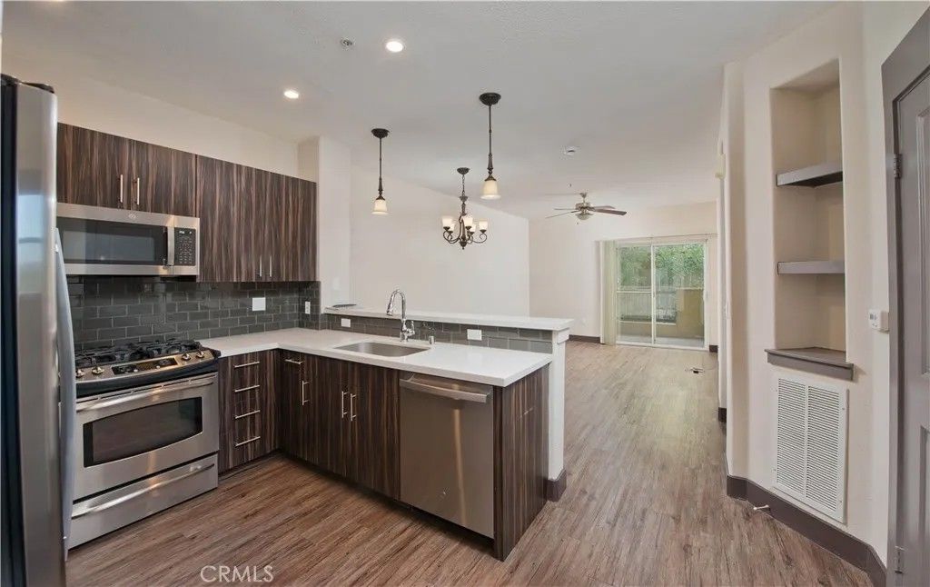Welcome to The Madison at Town Center where resort-style sophistication meets urban convenience. This beautifully upgraded one-bedroom, one-bath condominium offers approximately 800 square feet of modern comfort and refined style. Step inside to an open-concept living area highlighted by stylish laminate wood-look flooring and abundant natural light. The gourmet kitchen features sleek quartz countertops, stainless steel appliances, and contemporary fixtures, perfect for both everyday living and entertaining. The spacious bedroom includes a generous walk-in closet, while the full bath showcases clean lines and elegant finishes. Additional touches such as in-unit laundry and central air and heat ensure comfort and convenience year-round. Built in 2003, this sought-after community offers resort style amenities including secure garage parking with guest access, a sparkling pool and spa, a well-equipped fitness center, clubhouse, and inviting outdoor entertaining areas. Just steps away, residents can enjoy an array of shopping, dining, and nightlife options all within a lively and walkable setting. Experience elevated living at its finest, where modern design and everyday convenience come together seamlessly.
