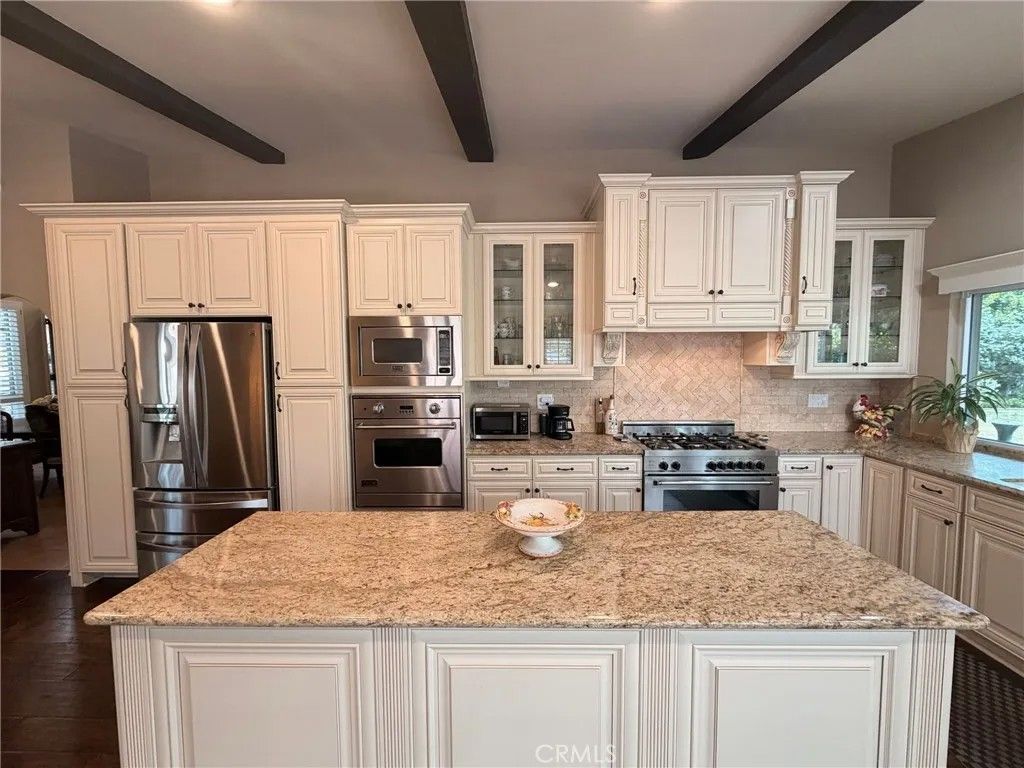 eautiful Single-Story Home in the Greater Mulwood Community Prime Location! Welcome to this exceptionally well-maintained and spacious single-story home located in the highly sought-after Greater Mulwood neighborhood. Situated near top-rated Las Virgenes schools, this property offers a rare opportunity to own a home with incredible bones, an open layout, and abundant potential. Key Features: Updated Chefs Kitchen: A large, modern kitchen featuring high-end Viking and Bertazzoni appliances, an expansive center island, and plenty of storageperfect for entertaining. The kitchen opens seamlessly to a welcoming family room with a charming brick fireplace and built-in bar. Private, Gated Courtyard: Enter through a double-door entryway set within a spacious, gated front courtyardideal for added privacy and outdoor enjoyment. Bright & Open Living Spaces: The home is filled with natural light, enhanced by wood-beamed vaulted ceilings, recessed lighting, and views of the serene backyard from multiple rooms. High-Quality Finishes Throughout: Includes double-paned windows and sliding doors, custom plantation shutters, hardwood and tile flooring, and updated fixtures. Spacious Primary Suite: The oversized primary retreat features a cozy wood-burning fireplace, a custom built-in wood desk, a large walk-in closet, and a luxurious en-suite bathroom with a double sink vanity, Travertine walk-in shower, and custom glass enclosure. Additional Amenities: Separate laundry room Two updated powder roomsone near the kitchen/family area and another adjacent to the three large secondary bedrooms Each secondary bedroom includes oversized closets Generously sized, private backyard with room for a pool and several mature fruit trees This home offers a highly desirable layout, timeless updates, and a location that cant be beat. Whether you're looking to move right in or customize further, this is a truly special opportunity to make it your own.