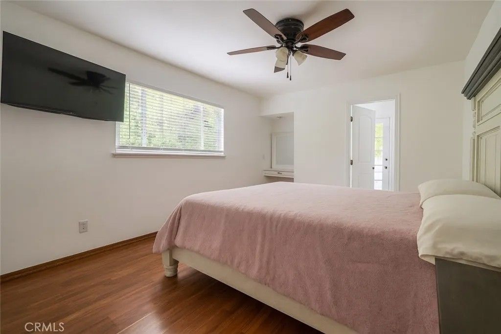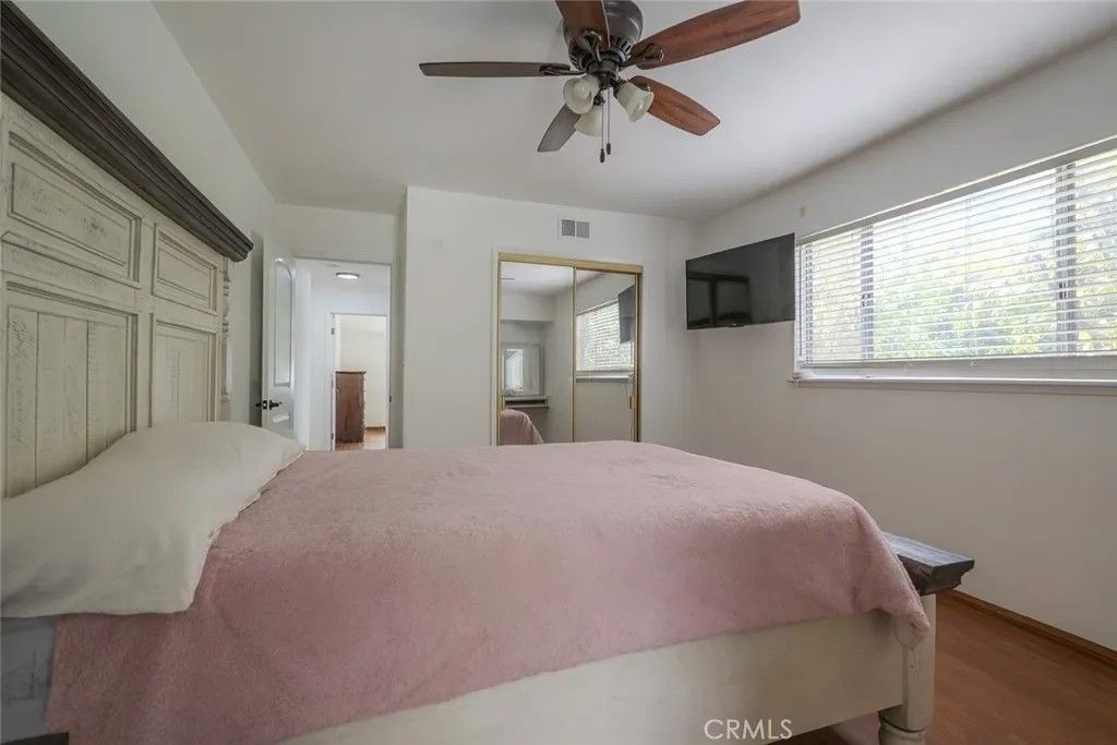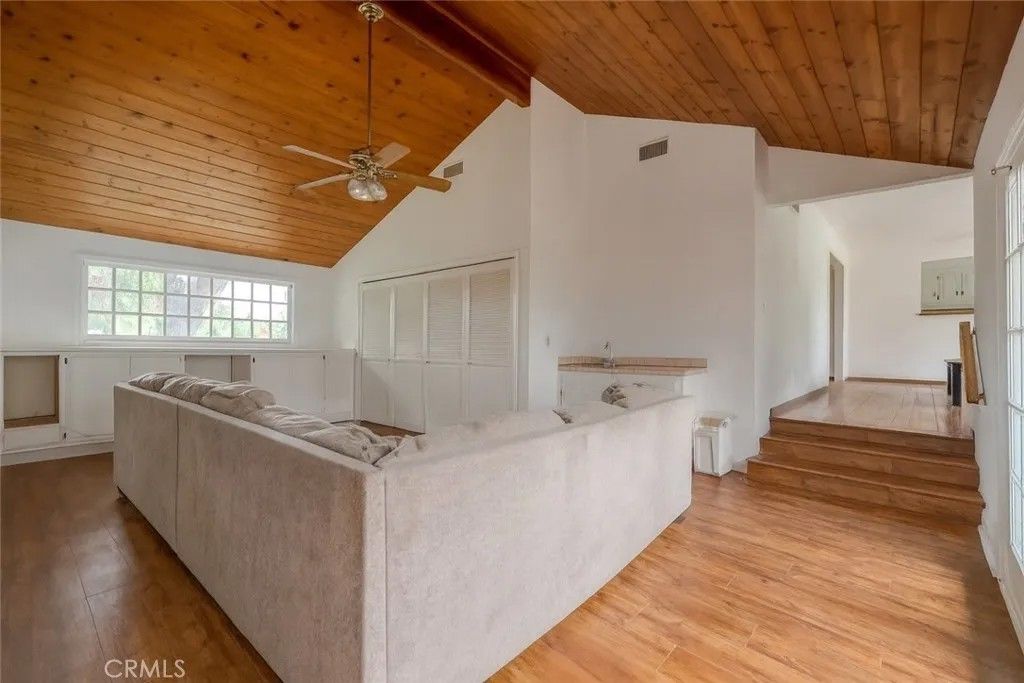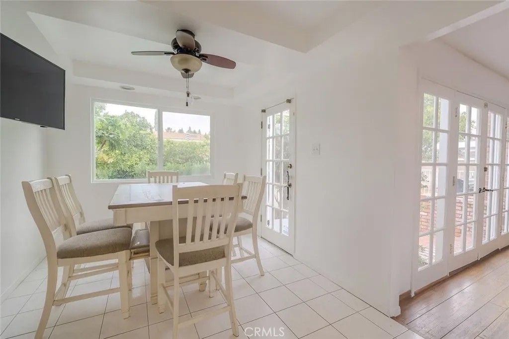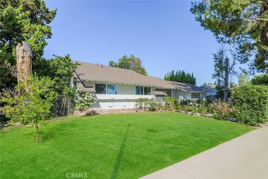 Absolutely gorgeous Porter Ranch pool home with nearly 2,000 sq. ft. of living space on an over 10,000 sq. ft. landscaped lot featuring a pool and RV access. Pride of ownership is evident throughout with hardwood floors, a bright formal dining room with French doors, breakfast bar, and rock fireplace. The spacious family room offers vaulted wood-beamed ceilings, wet bar, French doors, and new laminate flooring. The kitchen includes tiled counters, double oven, cabinetry, and a breakfast nook. The primary suite boasts hardwood floors, ample closets, vanity, and an updated bath, while the secondary bedrooms also feature hardwood floors and ceiling fans. Enjoy the entertainers backyard with sparkling pool and spa, large patio, brick BBQ, fruit trees, and covered parking with private entry. Recent upgrades include new roof, windows, recessed lighting, and freshly painted inside and out.