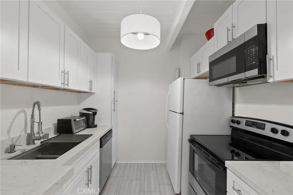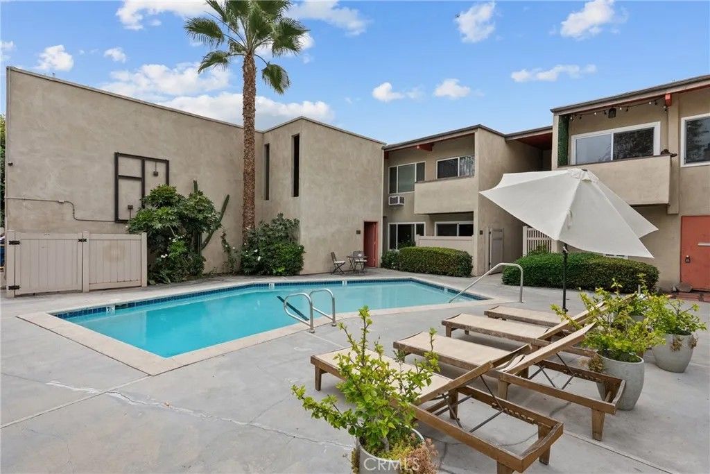 END UNIT with NO ONE ABOVE OR BELOW offers a RARE level of privacy in condo living! Excellent location on a quiet residential street in the heart of Valley Village. Light and bright with high ceilings, the space feels open and inviting. Recent updates include FRESH PAINT AND NEWER LAMINATE FLOORING. The living room opens to a private balcony and connects seamlessly to a cozy dining area. REMODELED KITCHEN features granite countertops, newer cabinetry, stainless steel appliances including a newer stainless steel oven (installed August 2025), stainless steel dishwasher, and newer microwave. Down the hallway, the bedroom is located next to the tastefully UPDATED BATHROOM which features a skylight. LOW MONTHLY HOA DUES! Reserved carport space with two storage cabinets located below the unit, and it is just steps away from the community laundry room. Close to freeway, shopping, and dining, this home combines modern comfort and unbeatable convenience. Dont miss this unique opportunity!
