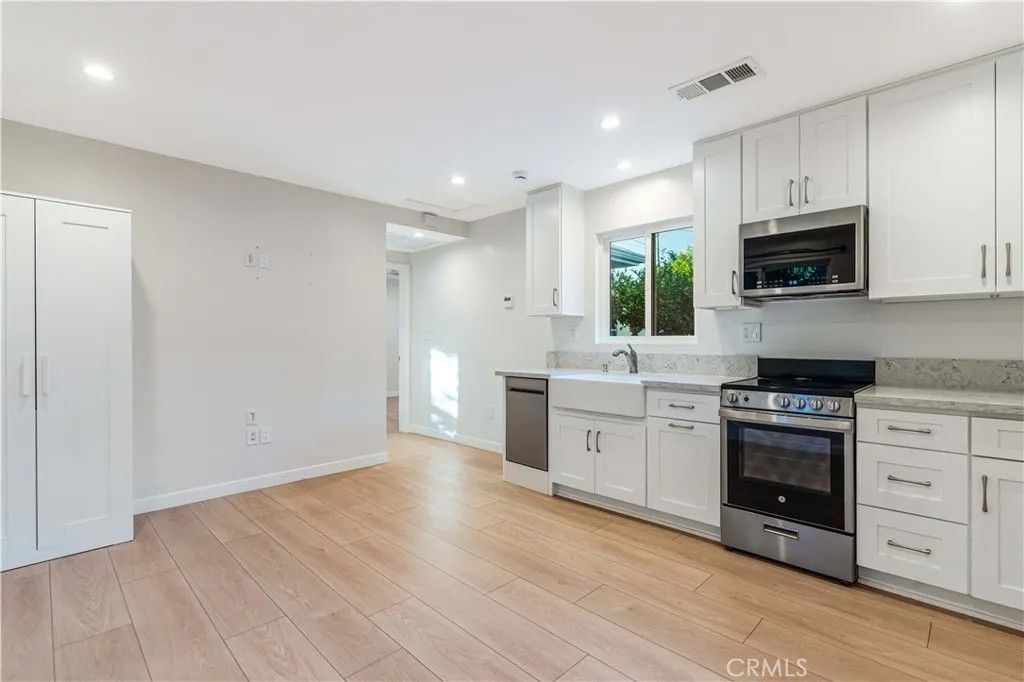 Beautifully renovated charmer with Permitted ADU & Bonus Flex Space perfect for first-time buyers, multigenerational living, or income potential! Located in the heart of Sherman Oaks near highly rated Kester Elementary School, this move-in-ready residence blends timeless character with modern comfort. Step inside to discover gleaming original hardwood floors, an inviting Living Room with an ornamental fireplace, and a Formal Dining Room ideal for entertaining. The renovated Cooks Kitchen showcases maple cabinetry, extensive quartz countertops, vaulted ceilings with skylights, upgraded lighting, and stainless-steel appliancesflowing seamlessly into a bright and comfortable Den overlooking the rear patio. The expanded Primary Bedroom Suite offers ample closet space and a fully upgraded Primary Bath, while the Guest Bedroom and remodeled Guest Bathroom provide stylish comfort for family or guests. The converted garage bonus flex space is perfect for a home office, gym, or potential third bedroom. Additional highlights include a dedicated laundry room, paid solar panels for ADU, multiple-car driveway parking, and a lush backyard oasis with covered patio, raised hot tub, grassy play area, storage sheds, and professional landscaping. The newly built 1-Bedroom + 1-Bath ADU is a show-stopperbeautifully finished with its own private patio, ideal for rental income or extended family. Located just minutes from Ventura Blvd, Sherman Oaks Park, Balboa Recreation Area, top restaurants, shops, and commuter routes, this rare turnkey home delivers flexibility, style, and value in one of the Valleys most sought-after neighborhoods. Dont miss this exceptional opportunitylive in one, rent the other, and enjoy the best of Sherman Oaks living!