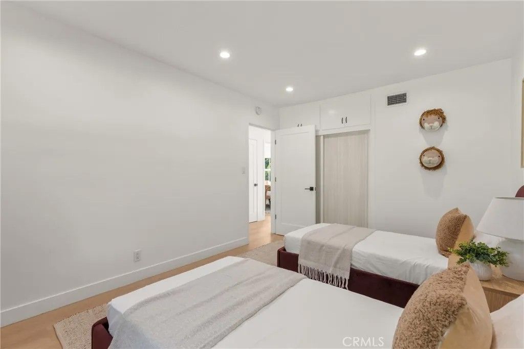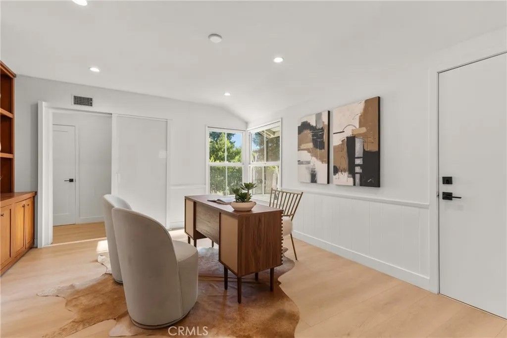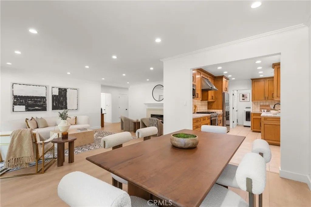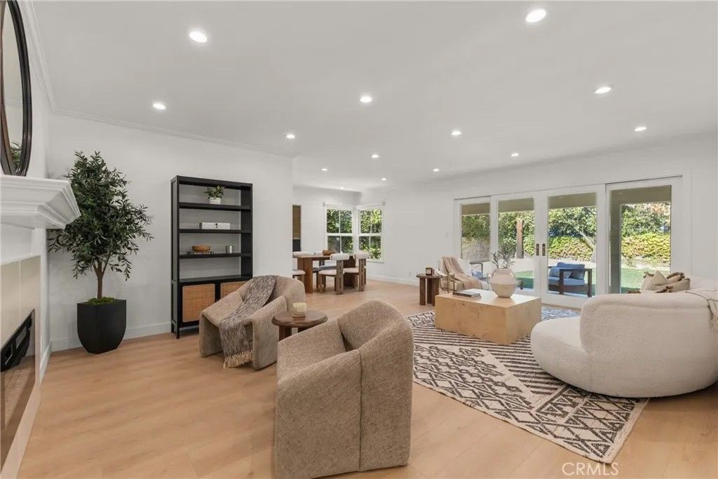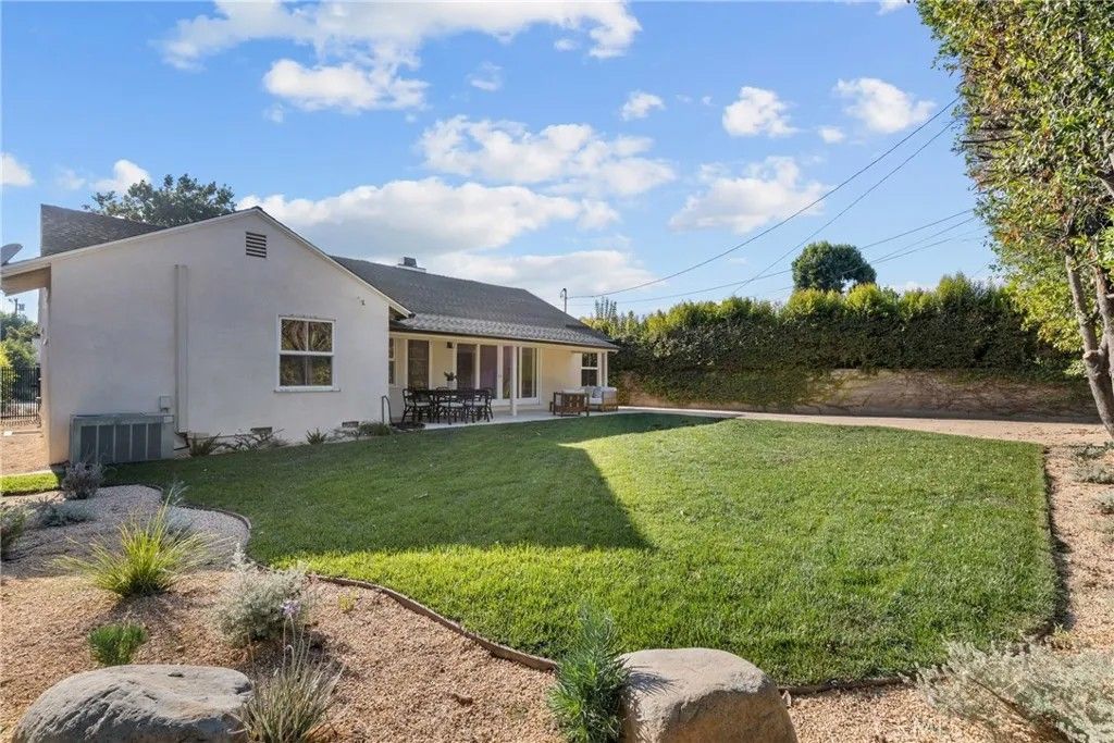 A beautifully reimagined blend of modern design and classic ranch charm, this fully remodeled 4-bedroom, 2-bathroom home is located in a quiet, tree-lined pocket of Lake Balboa. Originally built in 1956 and thoughtfully transformed, the home now offers a bright, open layout with stylish finishes and a seamless indoor-outdoor flow. The spacious living room is anchored by a sleek double-sided fireplace and opens to the dining area and a newly updated kitchen featuring custom cabinetry, quartz countertops, and stainless steel appliances. French doors lead to a generous covered patio and expansive grassy yardperfect for entertaining or relaxing in the California sun. The versatile floor plan includes a dedicated den or flex space with built-ins, and the expanded 2-car garage, once used as an artists studio, offers incredible natural light with its north-facing skylightsideal for creative work, a gym, or ADU potential. Set on a generous lot in a sought-after neighborhood close to parks, schools, and freeways, this home is the perfect balance of style, function, and location.