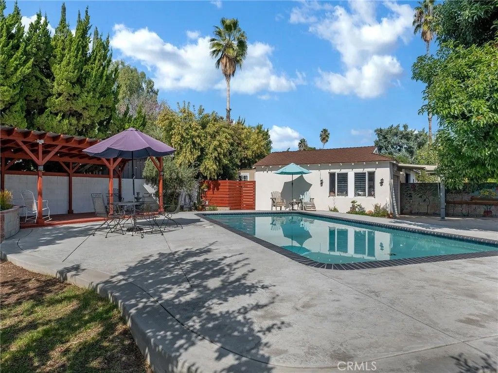 Sherwood Forest Adjacent, Absolutely Charming 3 bedroom, 2 1/2 bathroom Single story modern "farmhouse" ranch style property on approximately 1/2 acre. Circular driveway and side access to rear grounds and potential ADU's. Recently remodeled light cream kitchen cabinetry with mocha glaze accents, Quartz counters, soft-close drawers, Stainless Steel appliance plus Kucht Professional Oven/Range, and sit up breakfast bar. Vaulted white-washed ceilings, ceiling fans, hardwood floors, 2 brick accented wood and gas burning fireplaces warm the living and formal dining rooms. Warm and inviting hardwood flooring throughout.Remodeled Bathrooms with glass subway tile accents. Other upgrades include: Type "L"Copper Plumbing throughout, and from meter to the house, New Dual Pane windows and wood shutters, 2 year new 50 gallon high efficiency water heater, Updated electrical, New Heating and Air conditioning, plus ducting in 2020. Exterior improvements such as a 1 year new roof, new pool decking, brand new Hayward energy efficient Variable Speed Pool pump, and 2 year new 50 gallon high efficiency water heater. The approximately 550 square foot bonus room ( previous garage) features a split air and heat unit and would make a perfect JR ADU while the detached garage with its separate access could be your regular ADU. With all these upgrades and the pristine condition, this house is sure to sell fast. Along with the recent drop in interest rates, the time is NOW!!!!
