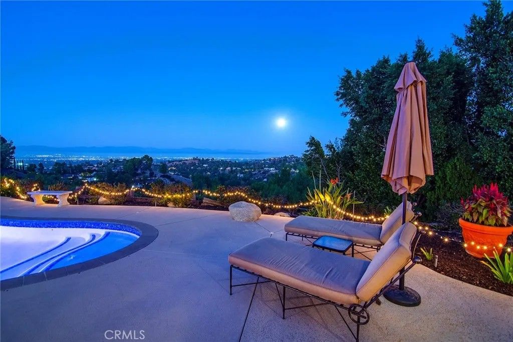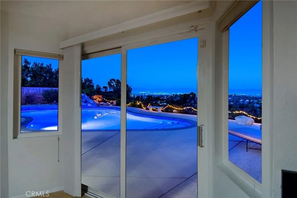 Tucked away in the hills of Tarzana on a desirable corner lot in a peaceful cul-de-sac, this beautifully maintained home offers spectacular 180 views of sparkling valley lights, rolling hills, and majestic mountains. From golden sunrises to tranquil moonlit evenings, every moment here is surrounded by natural beautyan ideal setting for relaxed living and unforgettable entertaining. Step inside to an open, light-filled layout featuring a formal dining area, a spacious living room with fireplace, and a bright kitchen with a center island, new double oven, new Insta-hot, and effortless flow into the family roomwhere walls of windows showcase breathtaking views. Downstairs includes a flexible bedroom and full bath, plus a bonus room perfect for a home gym or extra space. A striking spiral staircase leads to an airy upstairs landing with near floor-to-ceiling windows that flood the space with natural light and welcome in cool breezes. The large primary suite offers a peaceful retreat with a large walk-in closet, soaking tub, and separate shower. Three additional bedrooms and a full bath complete the second floor - two of which also take full advantage of the stunning views. Outdoors, enjoy your own private oasis: a sparkling pool with waterfall, gated area for kids, pets or BBQs, and a large side yard ready for sport/pickleball or even more entertaining space. Have fun watching the Fourth of July fireworks light up the city skyline near and far! Recent upgrades include: newer roof/rain gutters, HVAC, water heater, pool plaster/tile/pump, attic fan, dual-pane windows, smooth ceilings, recessed lighting, kitchen sewer line (replaced), exterior sewer line (lined) & copper pipes throughout the home interior. Located near top-rated schools and offering ample guest parking, this rare gem combines comfort, lifestyle, and an unbeatable location. Dont miss your chance to make it yours!