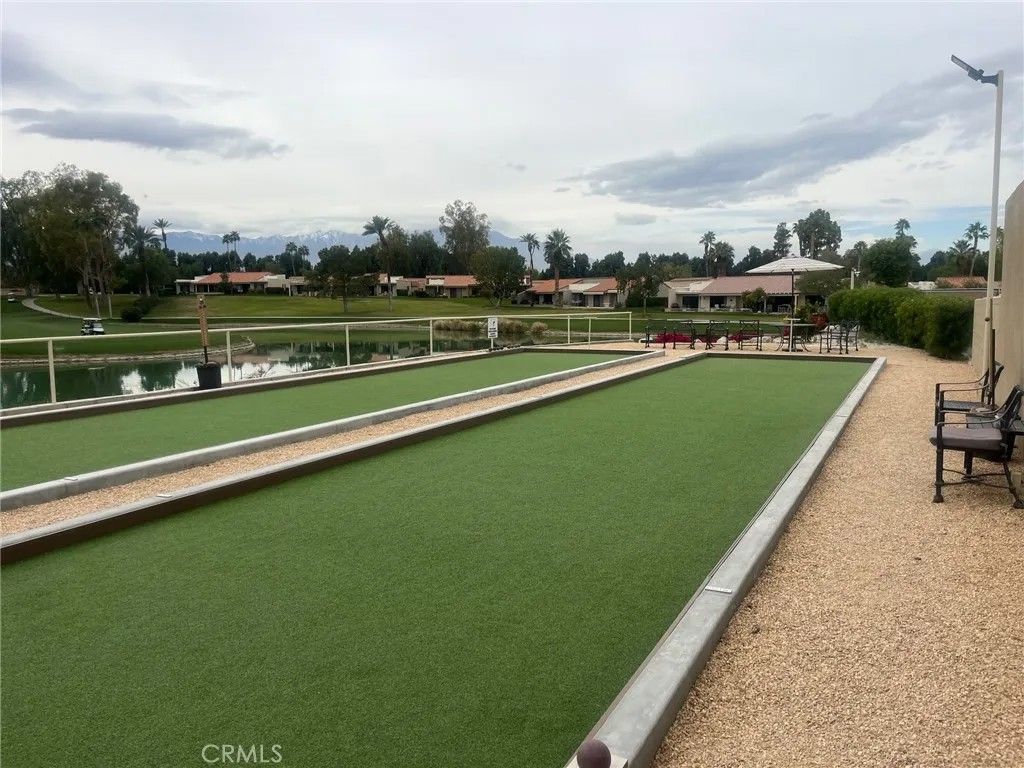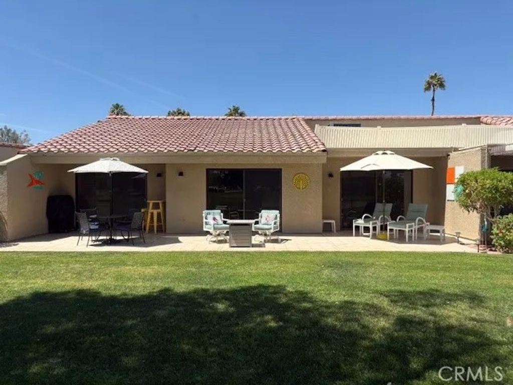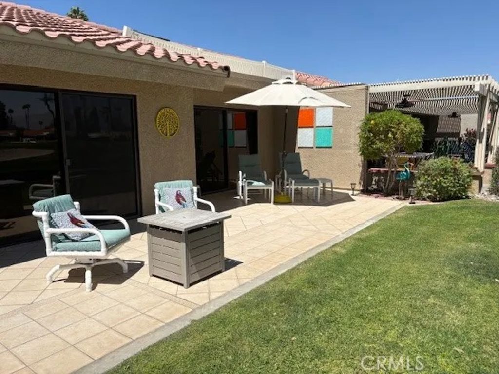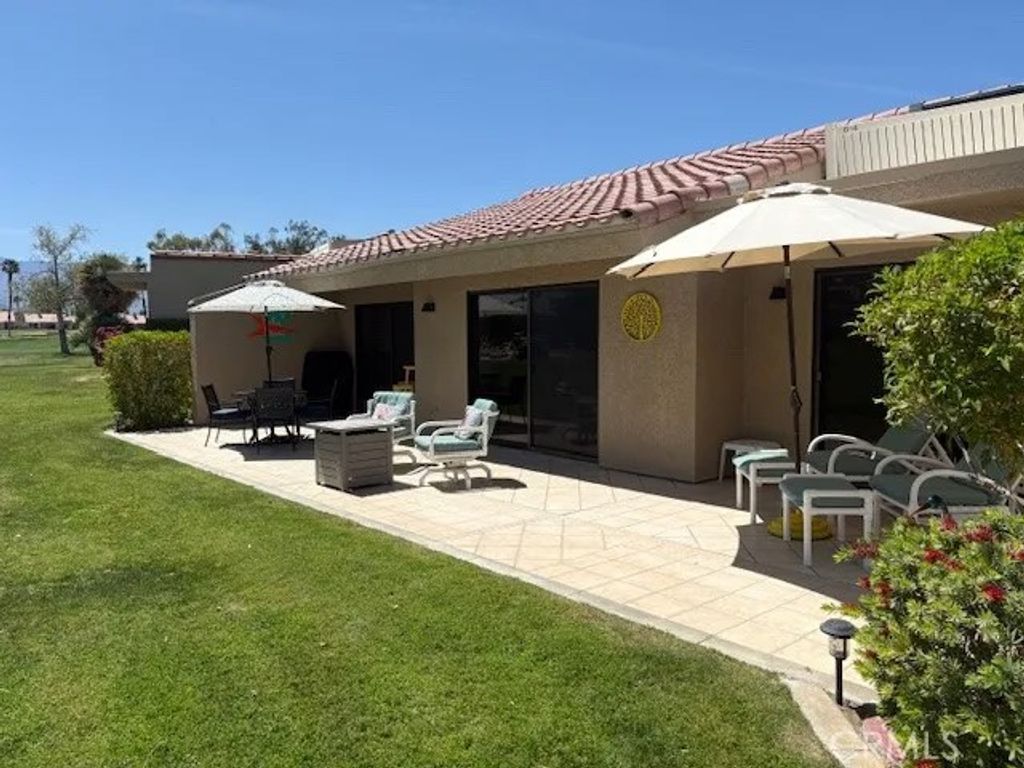 Exceptional Resort Property with Premier View Location Situated on a premium lot, this residence offers one of the most desirable vantage points in the community. The expansive and oversized rear patio provides an ideal setting for outdoor dining and lounging, with unobstructed views of the 18th green framed by dramatic mountain and lake backdrops. Tinted sliders enhance comfort and energy efficiency while preserving the stunning scenery. This highly sought-after floor plan is offered turnkey/furnished, providing immediate enjoyment and convenience. Recent updates include a new A/C system, new split A/C, and a new water heater, ensuring peace of mind and modern comfort. The property is located within a guard-gated community, offering security and a true resort-style lifestyle. Residents enjoy close proximity to the clubhouse, which features dining, cocktails, and scheduled entertainment. The community pool and spa are less than a one-minute walk away. Golf, pickleball, tennis, and bocce ball are all accessible within the resort. Beyond the grounds, the location is ideal for desert livingnear world-class dining, shopping, and major event venues such as the BNP Paribas Open and Coachella/Stagecoach festivals. Short-term rental potential with prior history adds an attractive investment component. Downtown Palm Springs is approximately 14 miles away, offering additional dining, culture, and entertainment. This property seamlessly blends an exceptional setting, desirable amenities, and a refined resort lifestylean opportunity not to be missed.