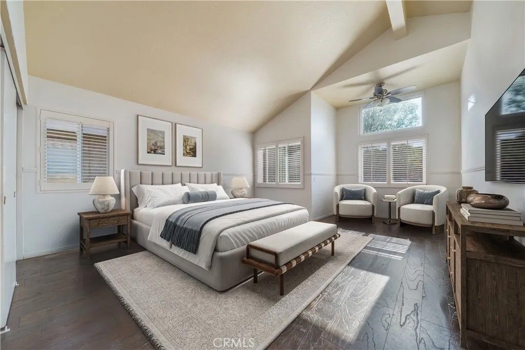 Located in a scenic pocket of San Dimas, this freshly painted two-story home captures the feeling of space and light from the moment you step inside. Vaulted ceilings, tall windows, and a skylight illuminate the main living areas, creating an uplifting atmosphere throughout. The family room, warmed by a fireplace, provides a comfortable gathering space, while the dining room features an updated 8-foot glass sliding door that opens to the backyard, extending the living experience outdoors. The backyard offers ample space to unwind, host gatherings, or simply enjoy the outdoors, with a fence and block wall surrounding the yard to provide privacy. The kitchen includes stainless steel appliances and connects easily to the dining and gathering spaces, making this home ideal for entertaining and everyday living. Upstairs, the primary suite offers vaulted ceilings, generous windows, walk-in closet, and an en-suite bath with dual vanities, soaking tub, and shower. The additional three bedrooms offer ample space and flexibility, perfect for family, guests, or a home office. A private horse stable is a standout benefit of this property, adding tremendous lifestyle appeal for equestrian enthusiasts who desire the convenience of keeping a horse at home while enjoying nearby riding areas and the community equestrian center. Community amenities further elevate the experience with pool and spa, clubhouse, green spaces, volleyball court, and RV parking, blending recreation and comfort. Located north of the 210 freeway and close to dining, shopping, and outdoor trails, this home offers a rare combination of comfort, natural light, and equestrian appeal. Homes with this balance of lifestyle, location, and amenities are seldom availablean exceptional opportunity that invites you to experience it firsthand.