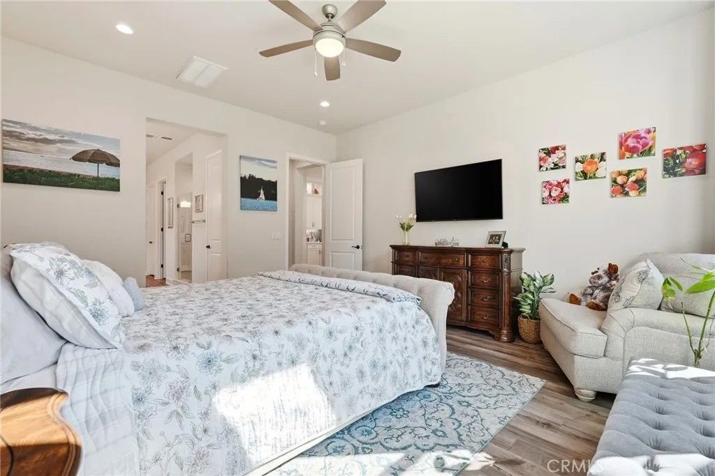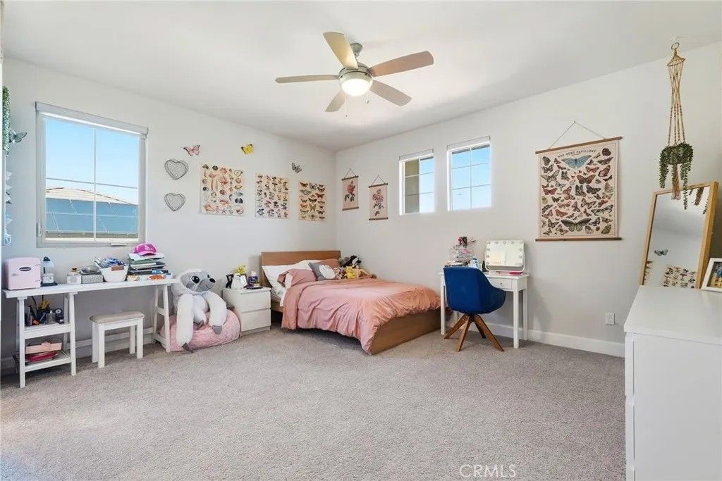 Proud to present this stunning newer construction 5-bedroom, 5.5-bathroom residence located in the highly sought-after Sterling of West Hills neighborhood. This luxurious home, boasting over 4000 square feet of living space, features an open floor plan and is located on a serene cul-de-sac. The chef's kitchen is a culinary dream, equipped with a spacious center island, wet bar, wine refrigerator, 6-burner stainless steel stove, walk in butlers pantry, and high-end stainless steel appliances. The primary bedroom, conveniently located on the first floor, offers a spa-like en-suite bathroom with dual sinks, dual closets, a soaking tub, and large step-in shower. The cozy living room near the kitchen has an upgraded built in fireplace. Head upstairs where you will find a spacious loft with panoramic views of the surrounding mountains, four generously sized bedrooms each with a walk-in closet & its own private full bathroom. Also conveniently located upstairs is the laundry room with utility sink. Additional features include a spacious 3-car garage with ample storage space and a 240-volt hookup for electric vehicles. The upgraded solar panels are owned, not leased, helping to keep electricity bills at an all-time low. The expansive backyard features a covered patio. large grassy area and dog run. This property is located within the award-winning El Camino, Hale, and Pomelo school district, and the neighborhood includes a roaming security guard after hours.