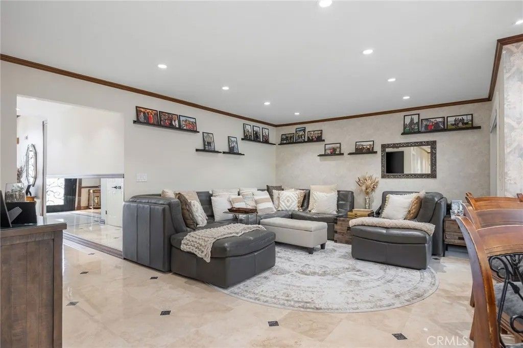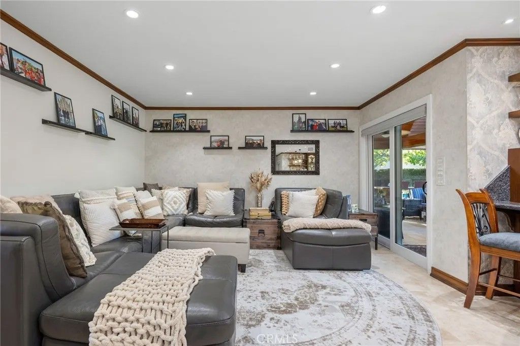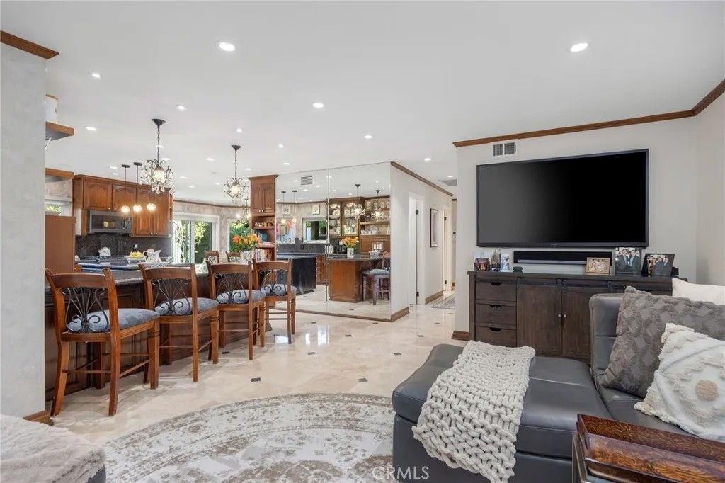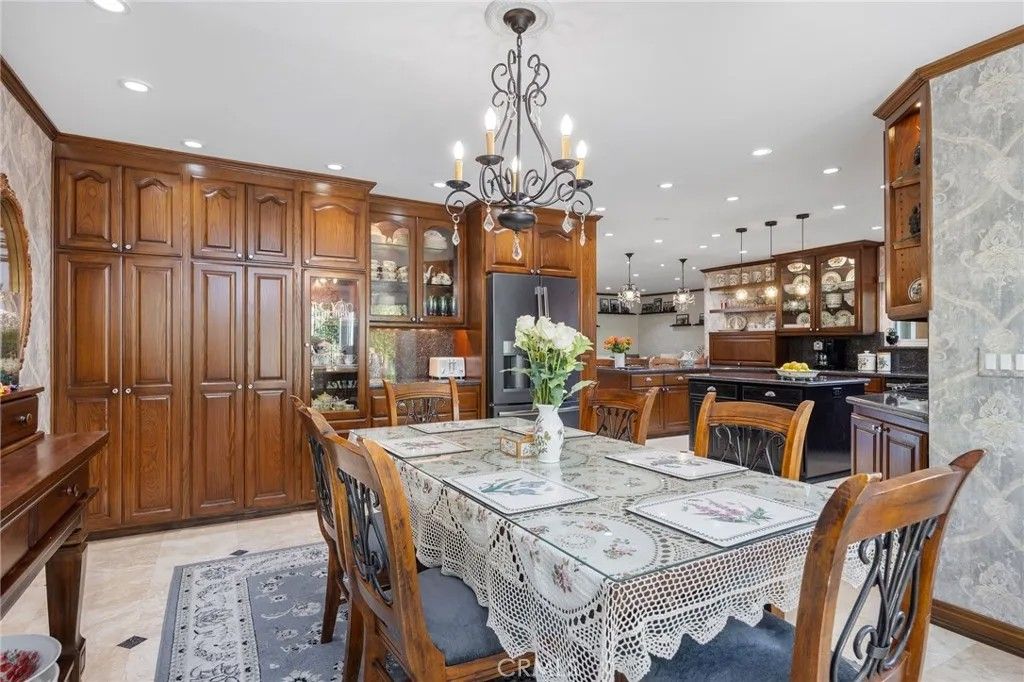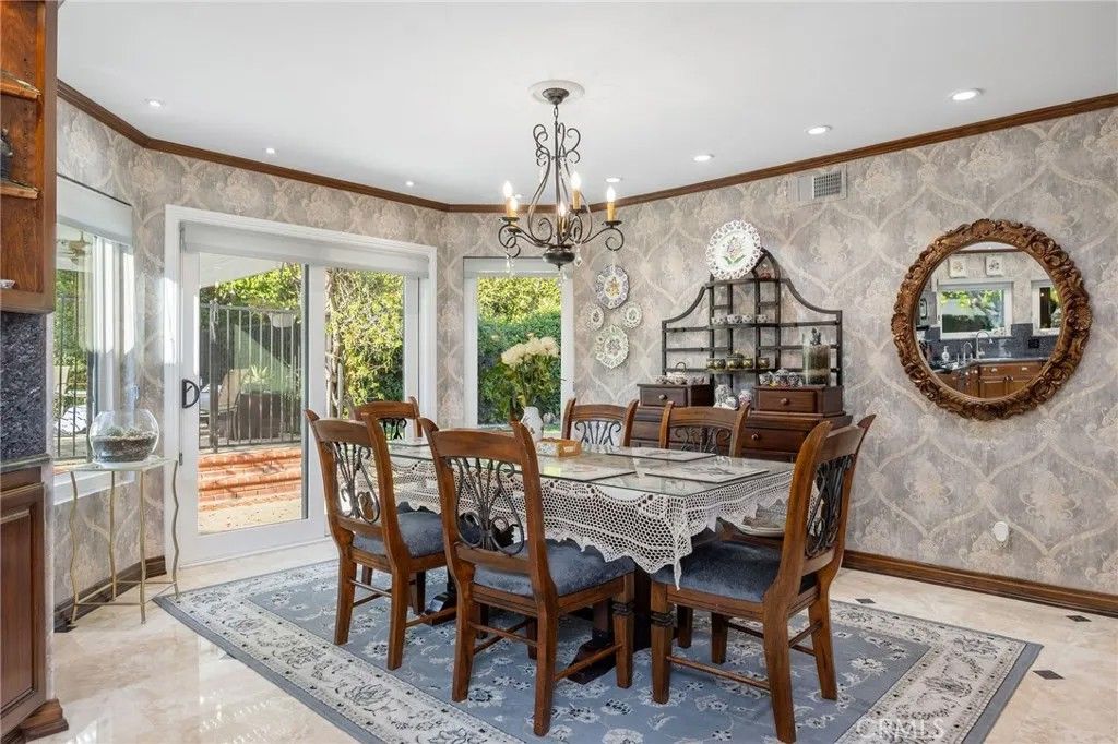 Gated, corner lot single-story home with a three-car garage located in one of Chatsworths most desirable neighborhoods, where homes rarely come on the market. Offering nearly 3,000 sq ft of living space on an expansive lot of over 16,000 sq ft, this well-maintained residence provides space, comfort, and inviting indoor-outdoor living. Upon entry, dramatic smoked-glass and wrought-iron double doors welcome you into a warm and thoughtfully updated interior featuring a combination of polished travertine flooring with designer insets and high-quality oak hardwood floors. The home has been recently refreshed with new interior paint and updated hardware in 2025, while longtime owners have consistently maintained and upgraded the property over the years. The floor plan includes formal living and dining rooms with fireplace, a spacious family room with backyard access and views, and a functional kitchen with oak cabinetry, slide-out storage drawers, and a breakfast bar. The home offers four bedrooms and is currently configured as a three-bedroom, with easy potential to convert back. The oversized covered lanai is a standout feature, offering space for both a full seating area and dining area, and is finished with stained wood ceilings, recessed lighting, and ceiling fans. The backyard includes a pool and spa (resurfaced 2023), new pool equipment (2023), outdoor kitchen, separate gazebo/sunning area, large grassy lawn, mature trees and lush greenery creating a private feel, and a fenced dog run with a recently updated canine cabin. Additional features include electric gates, Milgard windows, HVAC less than 10 years old, and new insulation installed in 2025. Conveniently located near hiking trails, parks, and the natural beauty that defines Chatsworth.