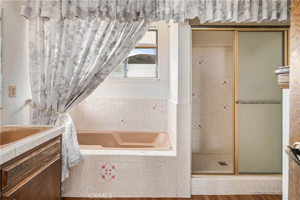 Custom-built hacienda-style residence offering breathtaking city, lake, and mountain views from multiple vantage points. A striking courtyard entry sets the tone, creating a private and welcoming approach before entering through impressive double doors. Inside, the home features a thoughtful layout designed to capture both views and indoor-outdoor living. The family room is ideal for entertaining, showcasing expansive views and a built-in bar, while the living room offers a more intimate setting overlooking the private courtyard and is anchored by a beautiful used brick fireplace with a custom mantle. The kitchen is rich in character, featuring custom tiled countertops and backsplash, abundant cabinetry, and picturesque views that make everyday living feel special. The expansive primary suite serves as a true retreat, complete with a large private balcony perfect for enjoying sunrise and evening views. The suite also includes a spacious walk-in closet and a private bathroom with dual sinks, a separate soaking tub, and a walk-in shower. All bathrooms throughout the home feature custom tile, with the added convenience of a full bathroom located on the main level. Additional highlights include newer flooring throughout most of the home, newer heating and air conditioner, an oversized two-car garage, and architectural details that reflect timeless hacienda-style design. This is a rare opportunity to own a distinctive, custom home that combines privacy, character, and unforgettable views.