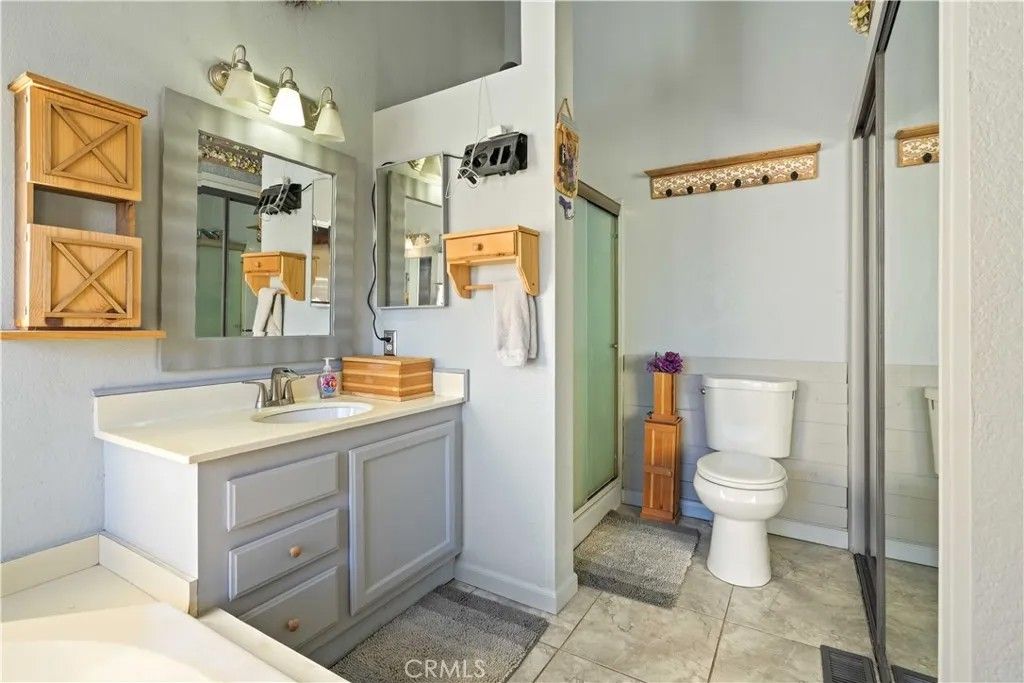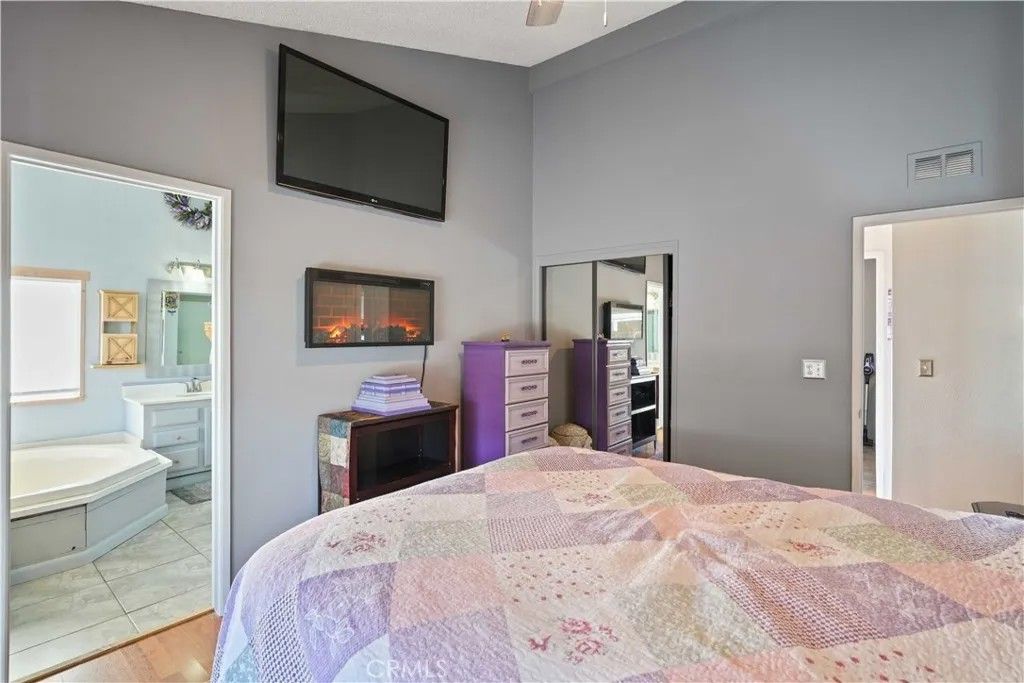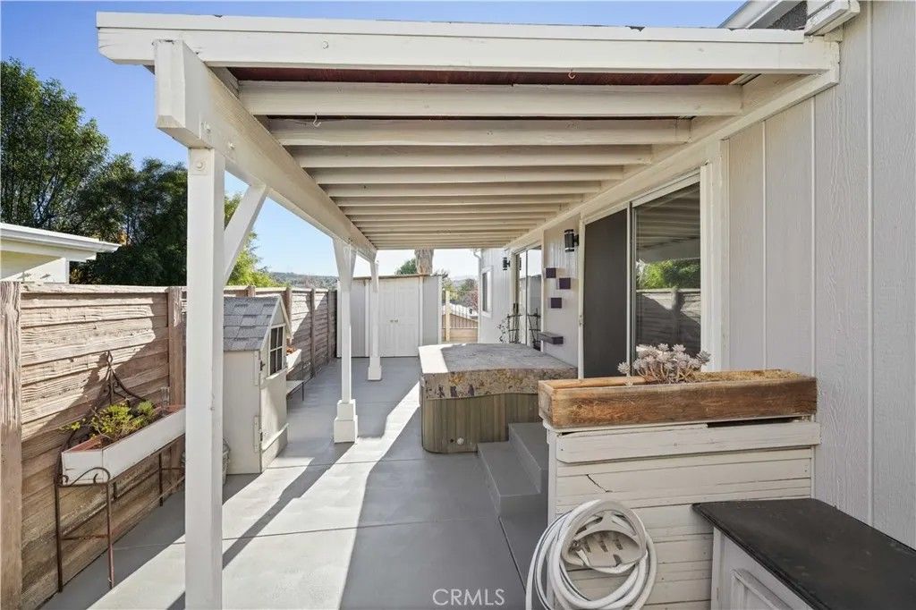 Rustic Farmhouse Charm with Modern Comforts in Canyon View Estates! Welcome to this beautifully updated 2-bedroom, 2-bathroom home spanning 1,234 square feet, where farmhouse style meets everyday functionality. From the moment you arrive, the upgraded exterior light fixtures add a touch of elegance and curb appeal. Step inside to a warm and inviting living room featuring a cozy fireplace with rock accents and a custom rustic wood mantel, perfect for relaxing evenings. A ceiling fan overhead and custom wood trim around the windows and sliding doors complete the space with comfort and character. The kitchen is a true standout with gray-painted cabinetry, butcher block countertops, stainless steel appliances, and charming wood trim details around the dividing wall, oven vent, and lighting fixtures. Durable tile flooring ties the space together, offering both style and practicality. The laundry room impresses with an abundance of cabinetry and tile flooringoffering maximum storage and utility. The fully remodeled guest bathroom boasts upgraded features throughout: an upgraded vanity, modern mirrors and lighting, tile wainscoting, and a beautifully tiled shower with a glass door. Retreat to the spacious primary bedroom, featuring a ceiling fan, mirrored wardrobe doors, and a sliding door leading to the backyard. The en-suite bathroom offers tile flooring, painted cabinetry, a large soaking tub, custom window trim, upgraded fixtures, and a wood plank accent wall, plus an additional mirrored closet for extra storage. Step outside to your private backyard oasiscomplete with a covered concrete patio, paver sitting area with a view, offering minimal maintenance. An additional garage access door with a metal screen allows for a refreshing breeze and convenient entry. This home is a rare blend of rustic charm and modern upgrades, perfect for buyers looking for style, warmth, and a move-in-ready space. Don't miss your opportunity to own this unique gem! This home has a monthly land lease of $1,559.04, which includes access to 24-hour gated security, 2 pools and spa, 2 sport courts, 2 play areas, a clubhouse, and RV storage. Conveniently located near parks, trails, schools, shopping, dining, and with easy freeway and Metro-link access. This is one you wont want to miss! Please submit pre-approval and proof of funds with offer. Buyer to verify all information prior to close of escrow.