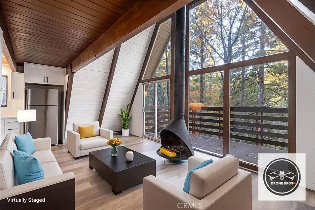 Exceptional A-Frame Mountain Retreat | Arrowbear Lake Experience the ultimate in mountain privacy and modern design with this stunningly remodeled A Frame cabin, perfectly situated in one of Arrowbears most secluded locations. Tucked at the end of a private, gated cul-de-sac and backing directly to U.S. Forestry land, this rare property offers unmatched serenity and breathtaking natural surroundingswith virtually no neighbors on either side. First time on the market in decades and family-owned since 1977, this distinctive cabin has undergone a comprehensive, high-quality renovation over the past four yearsover $90,000 in upgrades completed between August 2021 and March 2025. Property Highlights Premium Double Lot Includes two parcels (APN: 0328-157-36-0 000 & 0328-157-37-0-000), making this one of the largest and most desirable properties in Arrowbear Lake. Expansive Outdoor Living New TREX weather resistant front porch and rear balcony (installed March 2025), offering sweeping forest views and year-round durability against snow and rain. Prime Location. Only 4 miles from Snow Valley Ski Resort, ideal for winter sports enthusiasts or anyone seeking crisp, clean mountain air and year-round recreation. Remodel details (20212025) New Hardie Plank fire- and water-resistant siding Owens Corning 30-year roof Tankless electric water heater Pex A plumbing system & updated electrical (dedicated circuits for range, heater, etc.) Fresh interior and exterior paint Engineered wood flooring (Aug 2023) and new carpeting (Aug 2023) Fully remodeled kitchen featuring designer cabinets, quartz Fairy White countertops, elegant hardware, custom lighting, and new GE appliances (Oct 2023). Upgraded bathroom and trim work (Sept 2023) Lifestyle & Location Imagine waking up to peaceful forest views, sipping coffee on your private deck with no other homes in sight. This property truly captures the essence of a mountain escapea place where nature, comfort, and craftsmanship meet. Whether as a primary residence, weekend retreat, or investment property, this rare A-Frame offers unrivaled privacy and timeless mountain charma true gem in the Running Springs/Arrowbear area. Quite possibly the most private and picturesque cabin in all of Arrowbear Lake. Dont miss this once-in-a-lifetime opportunity to own a piece of mountain paradise. Location Location Location.