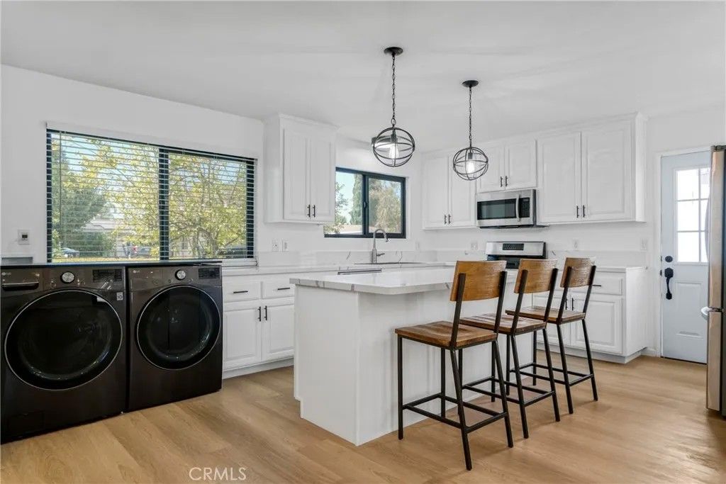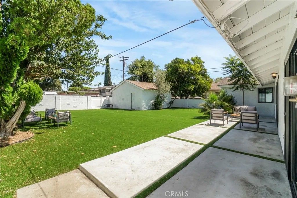 Welcome to this spacious and inviting REMODELED 4-bedroom, 2-bathroom single-story move-in ready home, this home offers a comfortable layout with plenty of natural light, storage and upgrades with laminate floors, recess lights throughout the entire home. The upgraded kitchen features quartz countertops with an Island, stainless steel appliances including refrigerator, stove, microwave, and dishwasher, abundant cabinet space with washer and dryer for convenience. The formal dining room and living room have new laminate flooring and the cozy fireplace creates the perfect gathering space. All bedrooms are spacious, while the primary suite boasts two closets and a gorgeous updated bathroom, The guest bathroom also updated features a walk-in shower. Additional features include copper plumbing, central air and heating, a large fenced backyard with new landscaping, with a spacious patio for entertaining, a detached two-car garage with rear access and Perfect ADU potential. This well-maintained property blends comfort, functionality, and curb appealperfect for those seeking a welcoming home in a prime neighborhood setting.
