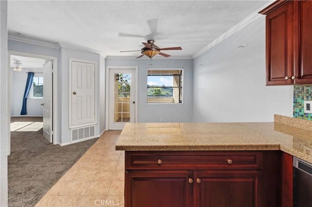 Oceanside with an Ocean View! Welcome to Vista Way Village, a resort-style gated community located approximately 3 miles from the beach. This top-floor unit features abundant natural light, tile flooring, granite kitchen countertops, and stainless steel appliances. The living area includes a fireplace and a full-size in-unit washer and dryer. The condo features two split bedrooms, one of which has an en-suite bath. Enjoy ocean breezes and greenery views from the covered patio. This unit includes a one-car garage and one assigned parking spot, with guest parking nearby. The gated complex features two swimming pools, spa, gazebo, basketball and tennis courts, a clubhouse, and a fully equipped gym. HOA includes water, sewer, and trash.