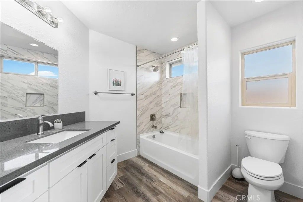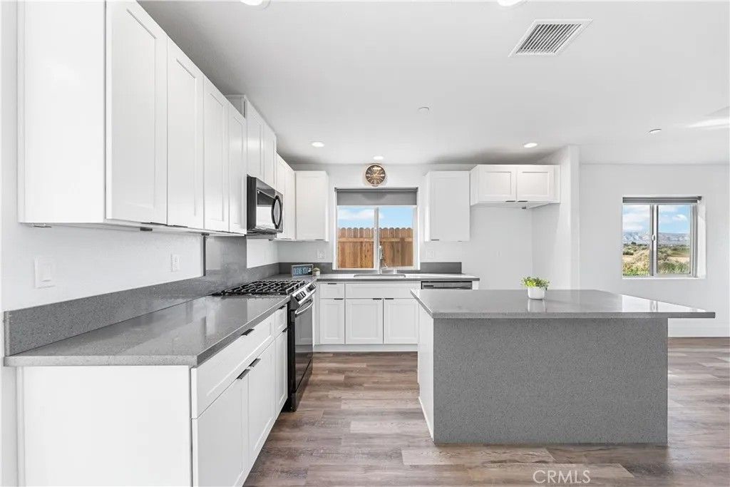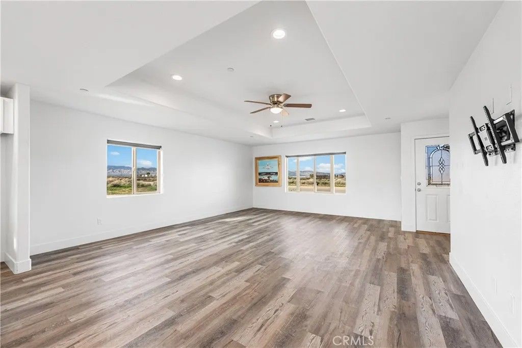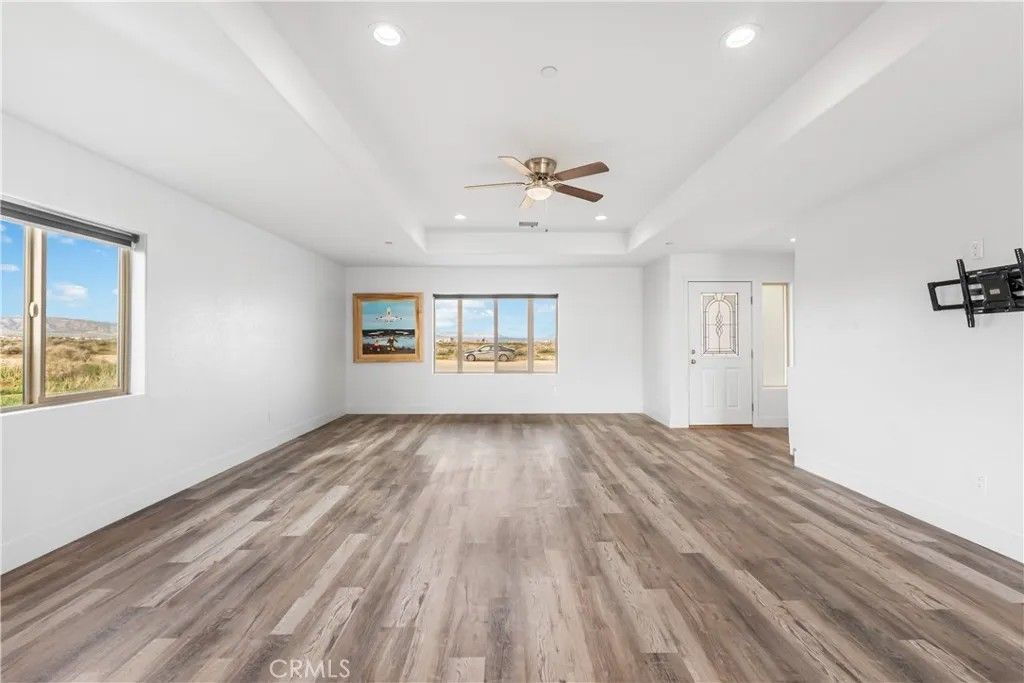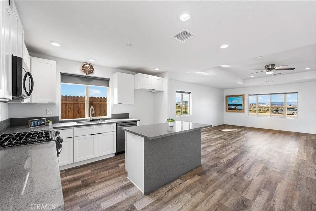 Located in the heart of California City, this spacious 4-bedroom, 2-bathroom home offers an unmatched view of the surrounding mountains and the flexibility youve been looking for! With RV access, theres plenty of room for your desert toys, outdoor gear, or additional vehicles. Inside, youre greeted by a large living room with soaring ceilings that create a bright and open feel. The kitchen is a showstopper, featuring sparkling gray quartz countertops, clean white cabinetry, and ample space for all your favorite appliances and gadgets. Whether you're a home chef or just love to entertain, this kitchen checks all the boxes. The adjacent dining area is generously sized to accommodate a full table, but versatile enough to be used as a second living area, office, or playroom. The primary suite offers a peaceful retreat with a private en-suite bathroom complete with dual sinks and great storage. Throughout the home, youll find beautiful wood grain vinyl plank flooring that combines warmth and durability. Enjoy peaceful desert sunsets, open skies, and easy access to local schools, shopping, and major highways. With its combination of space, views, and function, this home is ready for your next chapter!