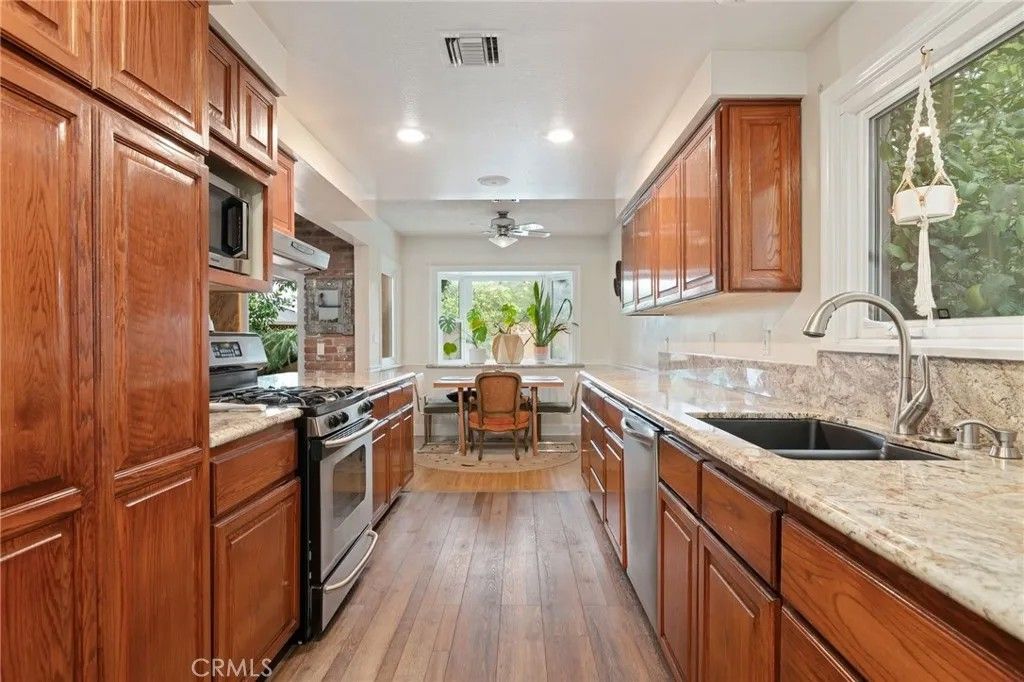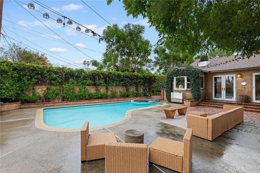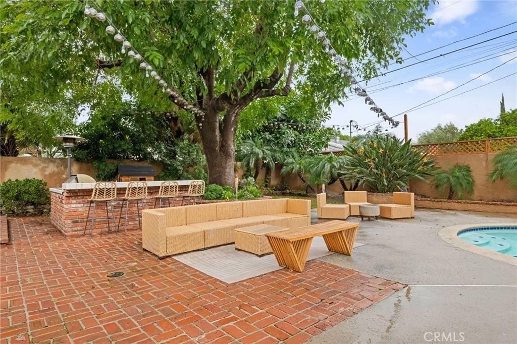 Welcome to your new home at 15815 Mayall Street, a beautifully maintained, move-in-ready home tucked away on a quiet, tree-lined street with sidewalks in one of North Hills most desirable neighborhoods. Thoughtfully designed for California indoor-outdoor living, this home blends timeless character with modern lifestyle features. The backyard is the true showpiecean entertainers retreat featuring a resort-style pool and spa with brand-new heater, new filtering system, expansive patio and lounge areas, and a fully equipped outdoor kitchen complete with built-in grill, outdoor TV, and integrated sound system. A massive central shade tree and mature landscaping provide exceptional privacy and comfort, creating a serene setting for everything from lively gatherings to quiet evenings at home. Inside, light-filled living spaces showcase original hardwood floors throughout and an easy, open flow ideal for both daily living and entertaining. The kitchen features marble countertops, ample cabinetry, and seamless connection to the main living areas, complemented by a convenient interior laundry area centrally located between the kitchen and bathroom, making daily chores effortless. The inviting living room with exposed brick and French doors extends into the carefully curated backyard, sitting alongside the marble countertop breakfast bar and cozy dining nook. The split-bedroom layout offers privacy and flexibility, with the primary bedroom enjoying direct access to the backyard oasis, making indoor-outdoor living effortless. One bathroom has been tastefully updated, while the second retains classic Hollywood charmadding warmth and character. A converted garage with a new insulated garage door provides a highly versatile bonus living space, ideal for a home office, gym, playroom, creative studio, or guest retreat. With convenient proximity to existing plumbing, this space also offers strong future expansion or ADU potential (buyer to verify).
