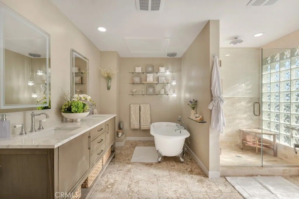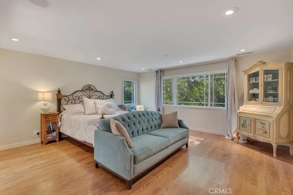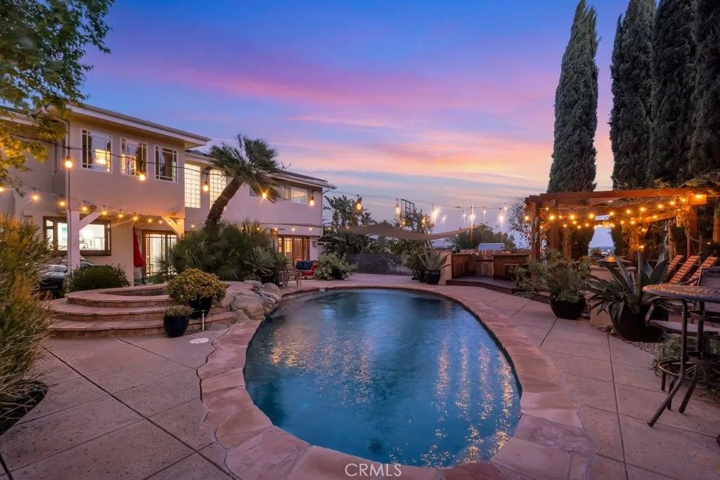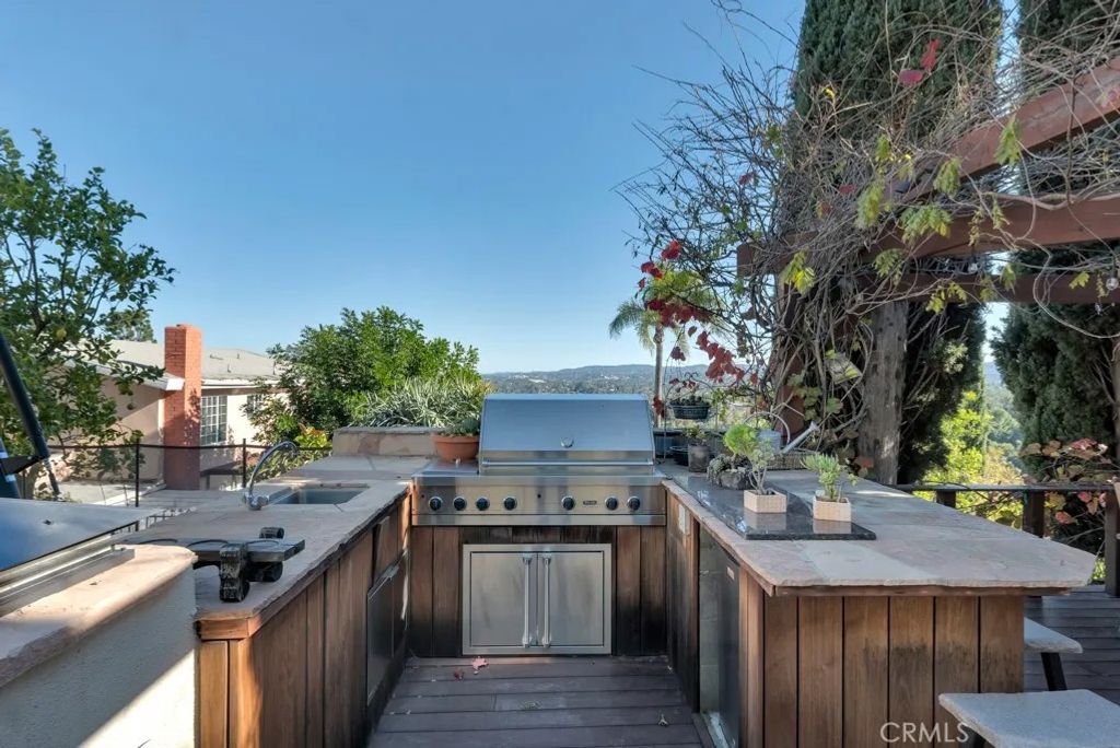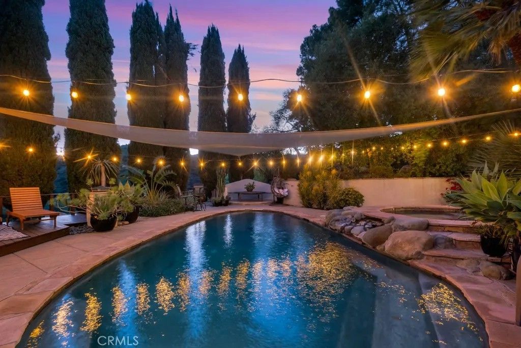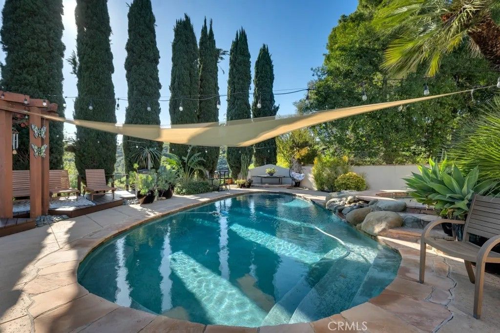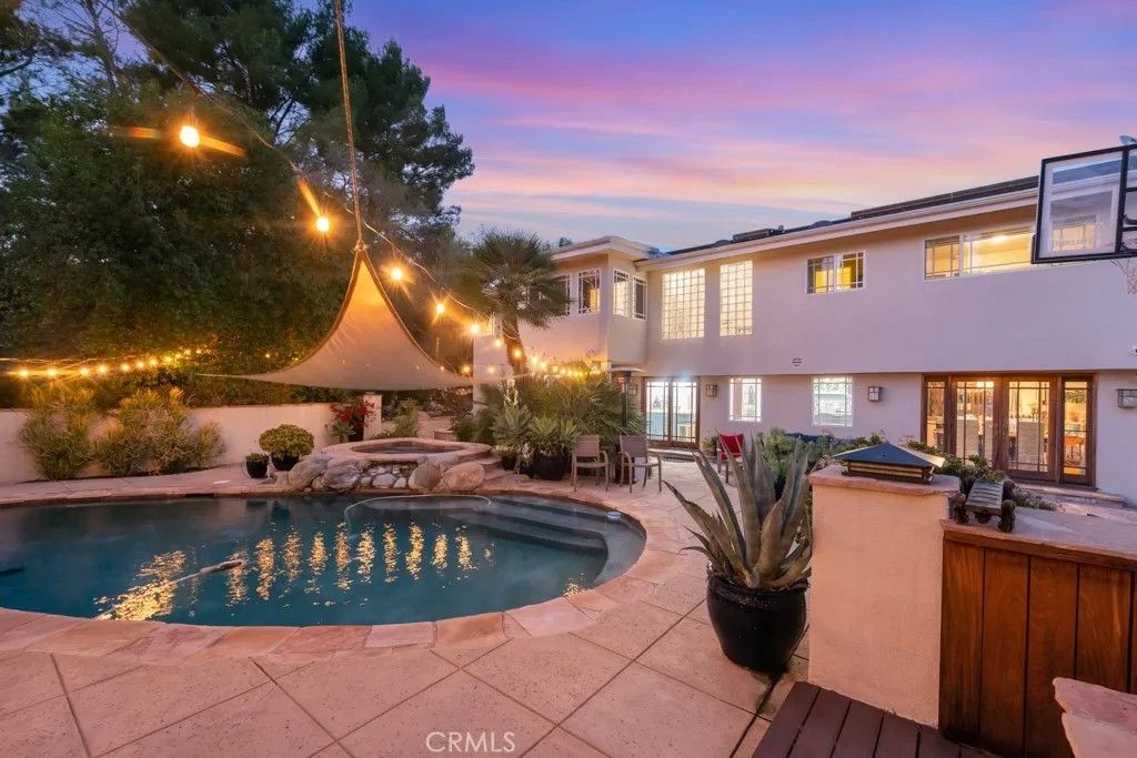 This updated and remodeled 5 bedroom and 3 bedroom home is simply stunning! Tucked away at the top of a peaceful cul-de-sac in the coveted Knapp Ranch community and within the Las Virgenes School District, this beautifully home perfectly blends luxury, comfort, and community living. With over 3,100 sq. ft. of stylish, open-concept space on a quarter-acre lot, the home is designed for both relaxed living and effortless entertaining. The chef-inspired kitchen features a custom island, Quartzite countertops, stainless steel appliances, and a built-in bar that flows seamlessly into the sun-filled dining and living areas. Upstairs, the primary suite offers a private sunroom and sweeping Valley views, while the downstairs en-suite bedroom is perfect for guests or a home office. Smart dual-zoned Nest thermostats, paid-off solar, and a three-car garage with EV charging add modern convenience. Step outside to your own resort-style retreat, complete with a sparkling pool and spa, outdoor kitchen, and expansive deck surrounded by peaceful Valley views and exceptional privacy. Additional highlights include new ultra-quiet Chamberlain garage doors, a whole-house Ring security system, and daily Las Virgenes school pickup and drop-off. Close to parks, scenic trails, and shopping, this home offers the perfect balance of elegance, comfort, and community in the heart of West Hills.