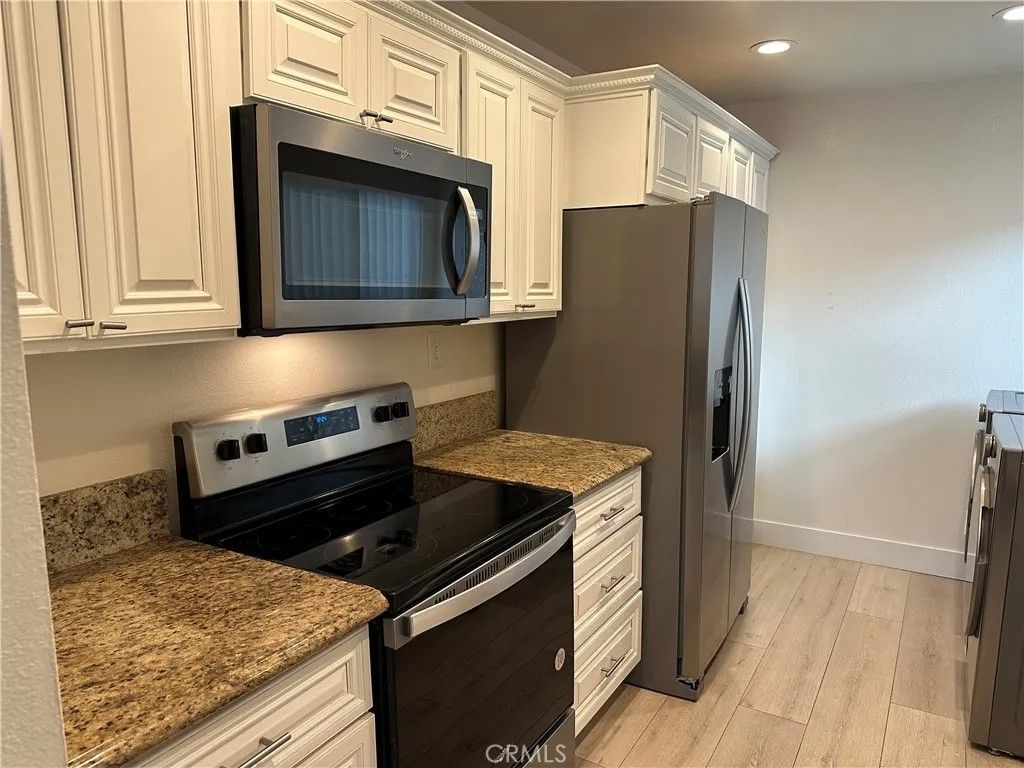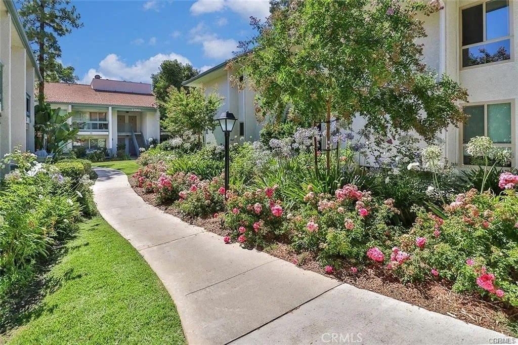 Lots of updates, ready to move in. First-floor unit, one level throughout. Walk to The Commons shopping center, Calabasas Tennis and Swim Center, and stroll around Lake Calabasas; enjoy the most convenient location in Calabasas. Ground-level unit with a private patio in a quiet location, away from the street but an easy walk to guest and private parking (2 spaces, side by side). This complex enjoys a creekside location with greenbelts for walking and plenty of mature trees for a peaceful setting while being located so close to everything. The property overlooks a well-planted walkway that is pleasant and open. Lake privileges are included; enjoy the 2.2-mile walking path around scenic Calabasas Lake. There is a pedestrian bridge over the creek for an easy walk to Calabasas Lake and the Tennis and Swim Center, city owned pool, gym and fitness classes plus activities for mature folks and children. Las Virgenes schools, highly rated from elementary through high school. The condominium is one level, ground floor no steps. Vinyl floors, granite countertops, and updated white cabinets in the kitchen. Laundry in unit. This complex was painted, and new windows were installed recently; the parking lot resurfaced within the last 3-4 years. Includes refrigerator, range, dishwasher, and updated water heater included. New electrical panel. Washer and dryer in unit, included too.