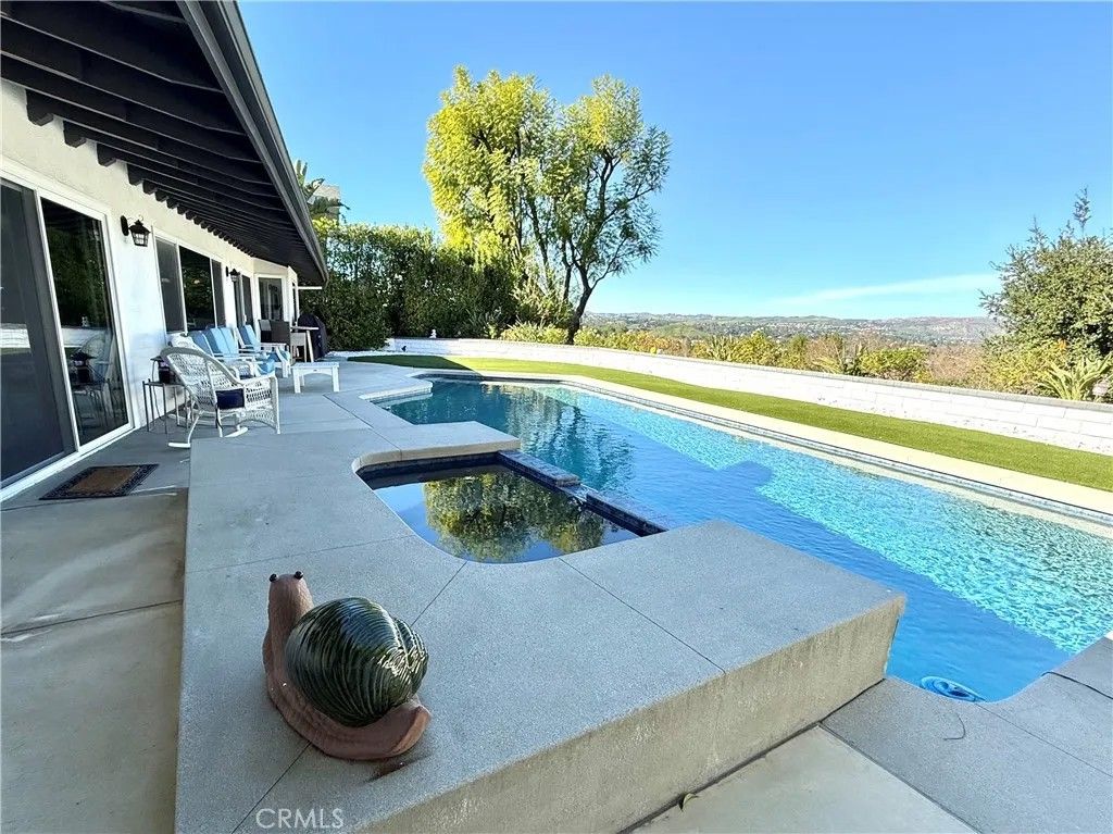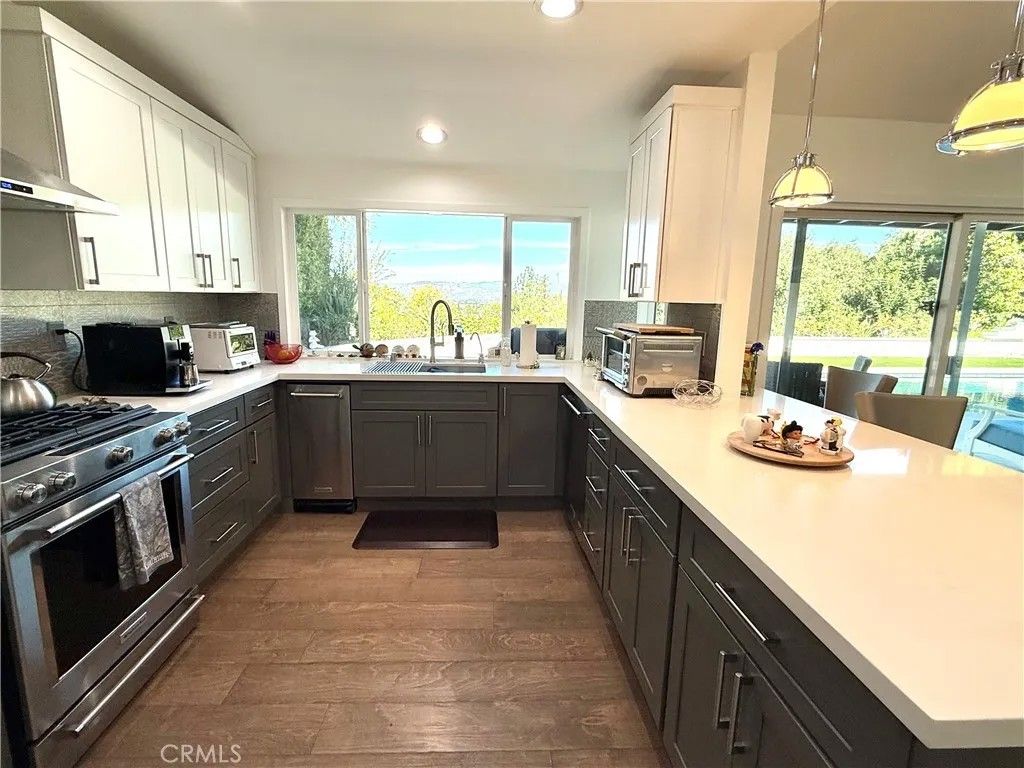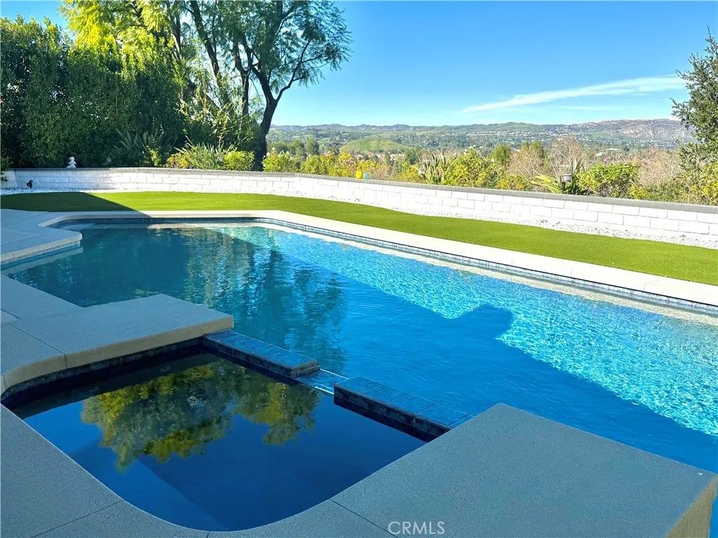 You're finally home! Walk thru the front door and see the breathtaking view of the valley. This Turnkey home boosts 3 bedrooms and 2 1/2 bathrooms. Enter through a double-door entryway set within a spacious front courtyard. With bright & Open Living Spaces, this home is filled with natural light and flows seamlessly. Enhanced by vaulted ceilings, recessed lighting, and views of the backyard from multiple rooms. High-Quality Finishes throughout includes double-pained windows and sliding doors, custom plantation shutters, gourmet kitchen KitchenAid 5 burner stove, refrigerator, dishwasher, trash compactor, self closing cabinets and drawers, customized UV tinting on sun faced windows. The spacious Primary Suite features a cozy gas log fireplace in the seating area.The luxurious en-suite bathroom has a double sink, Toto Bidet, walk-in shower, and walk in closet. Each secondary bedroom are generously sized. The second bathroom has double sinks and a Toto Bidet as well. Enjoy your night and days entertaining in your backyard with pool and spa enjoying views of of the valley. Additional Amenities include a gas log fireplace in the living room, separate laundry room, recirculating hot water, Ring, ADT, Solar panels not leased, and two Tesla Charging units and two Tesla power wall Batteries. The two car garage has plentiful finished storage. Just minutes from The Calabasas Commons, local shopping, dining, and the vibrant Saturday Farmers Market. Enjoy nearby parks and the exceptional Las Virgenes school district all contributing to the Calabasas lifestyle.Drive up, we are waiting for you!