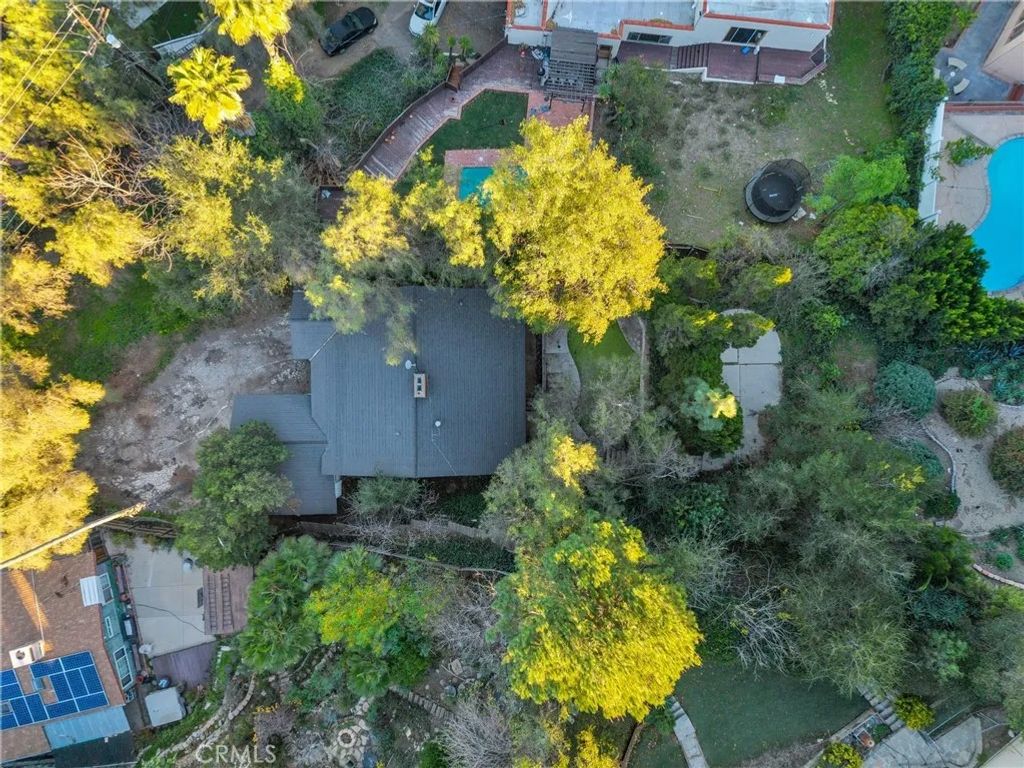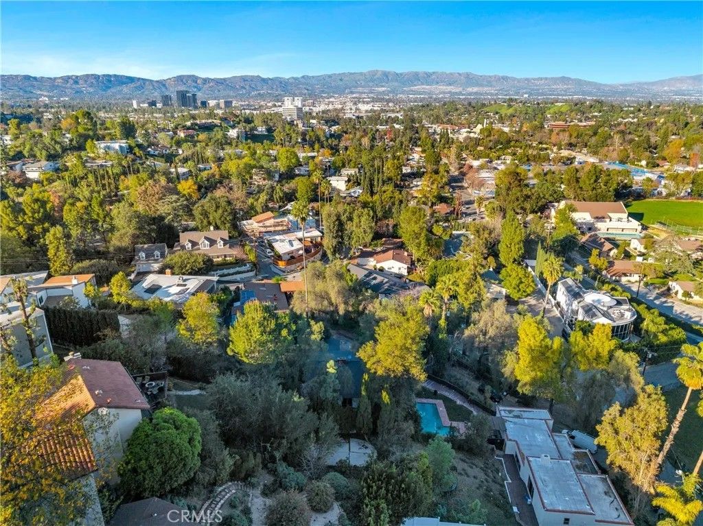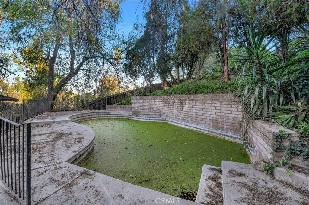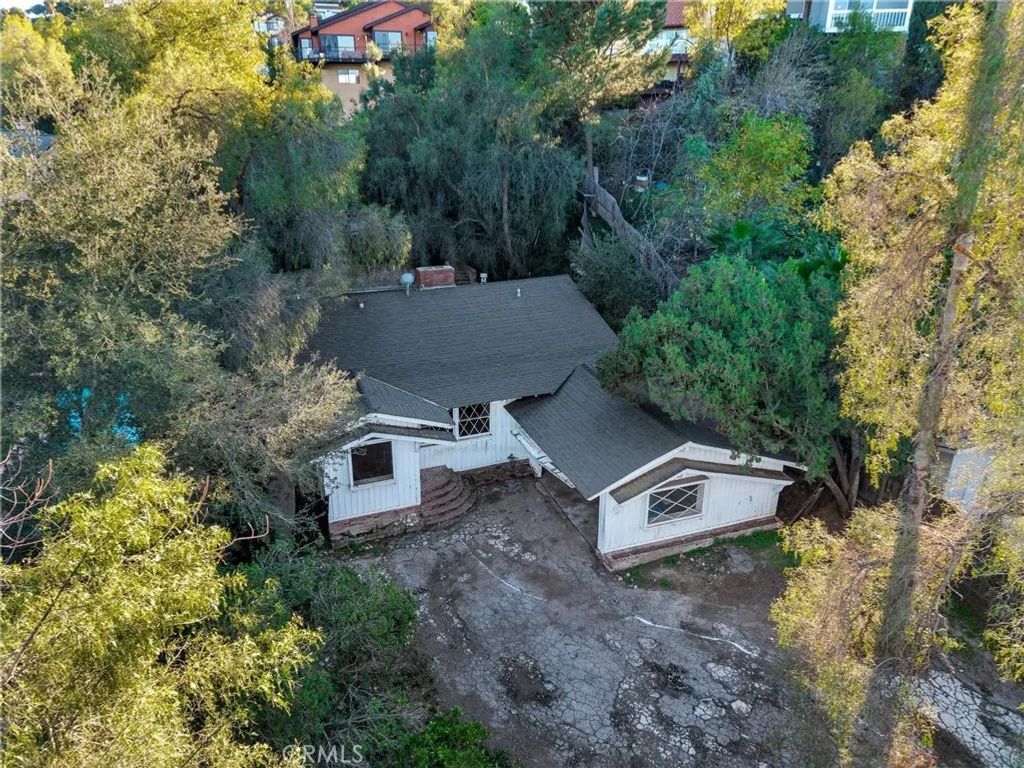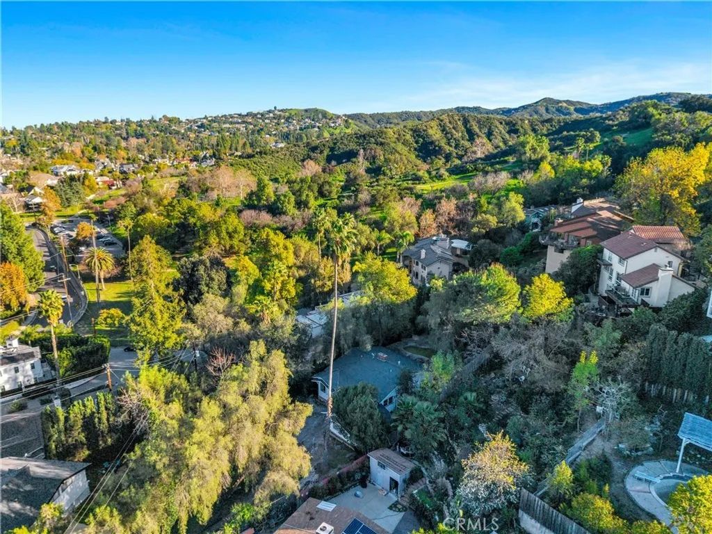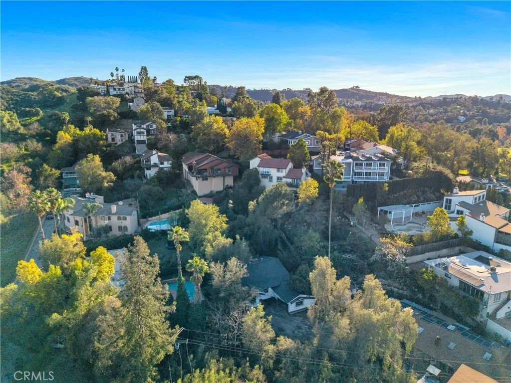Tucked on a generous 12,962 sq ft lot in the highly sought-after hills of Woodland Hills, south of Ventura Blvd, this 2-bedroom, 1.5-bath, 1,415 sq ft property presents a true fixer-upper opportunity for investors and developers looking to reimagine and add value in a premier location. The home is set back from the street up a long driveway edged with mature trees and vegetation for added peace and privacy. The home has an open floorplan with L-shaped living and dining area anchored by an imposing double-sided brick fireplace. On the other side is an informal family room with backing brick fireplace and sliding glass door access out to the yard. A good-sized kitchen has a convenient breakfast nook area, adjacent utility room with laundry hookups, and a convenient powder bath. Down the hall are two bedrooms, one more sizable to act as primary, and a shared full, hall bath with separate tub and shower. The structure is rife with possibilities for renovation, expansion, or potential reconfiguration to maximize the lot and hillside setting. Outdoors, the generous parcel extends back and up the slope, featuring a large side yard, an existing pool area, and a concrete pad at the top of the hill that invites reimagining as terraces, outdoor entertaining spaces, or a statement viewpoint. The property is serviced by a septic system and is ideally positioned near Taft Charter High School, Serrania Park, and Woodland Hills Country Club, with convenient access to shopping, dining, and entertainment along Ventura Blvd, as well as an easy drive to Pacific Palisades, Malibu, and the City. Dont miss out on the amazing potential embodied but the land, location, and potential for a buyer ready to create something special in one of Woodland Hills most desirable hillside neighborhoods. Property is being sold in As-Is condition.