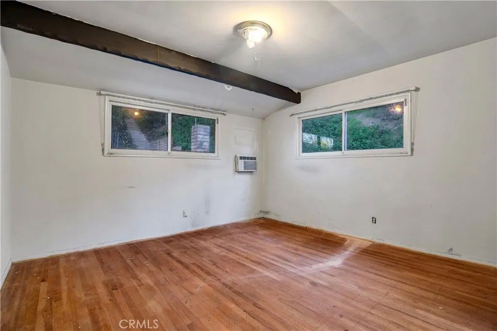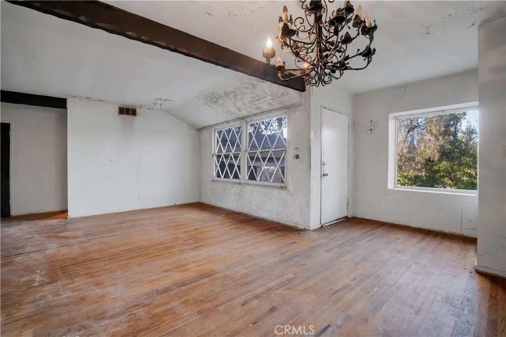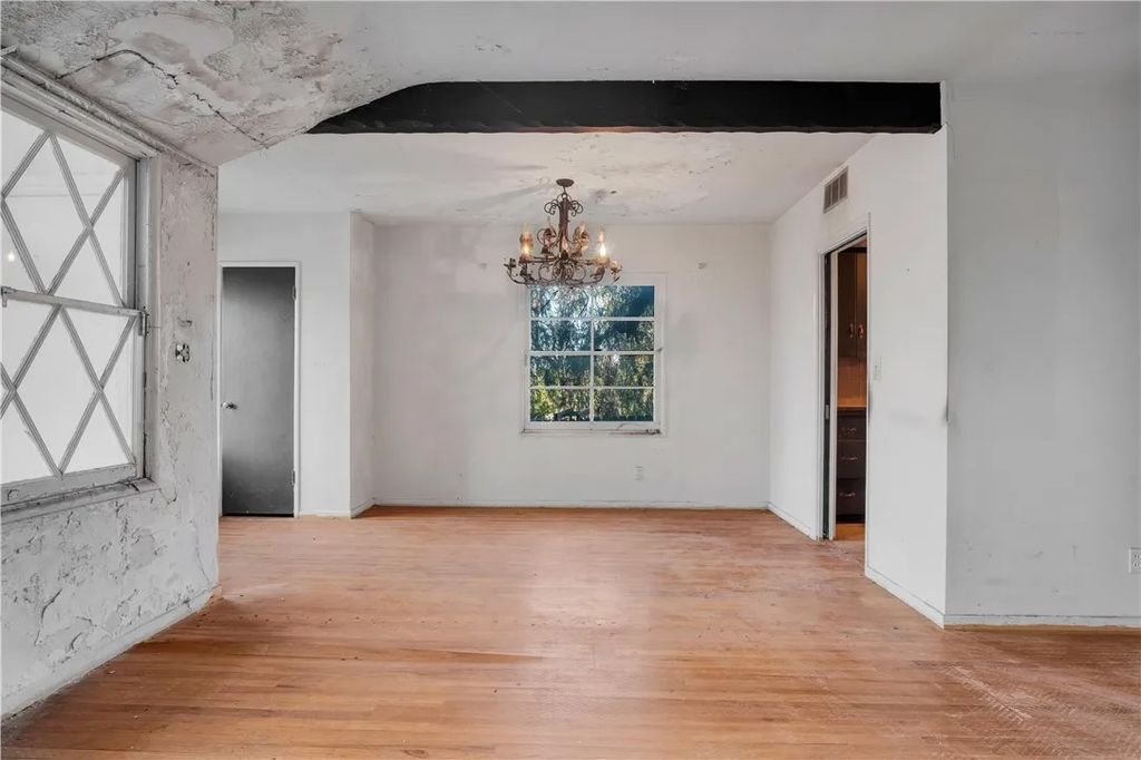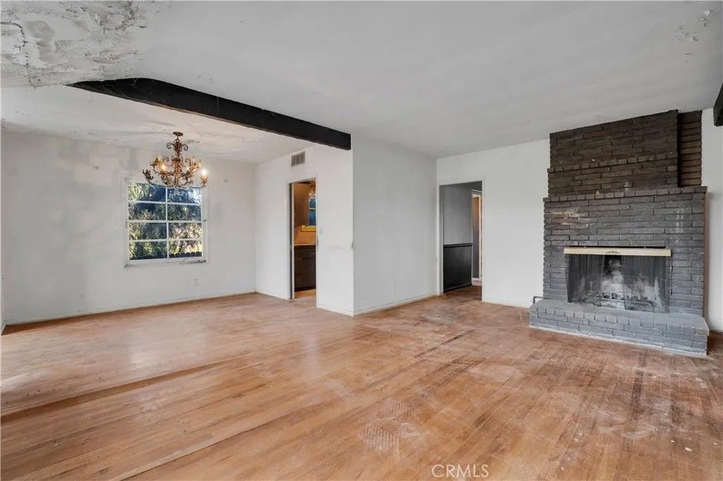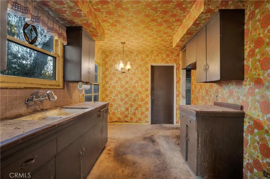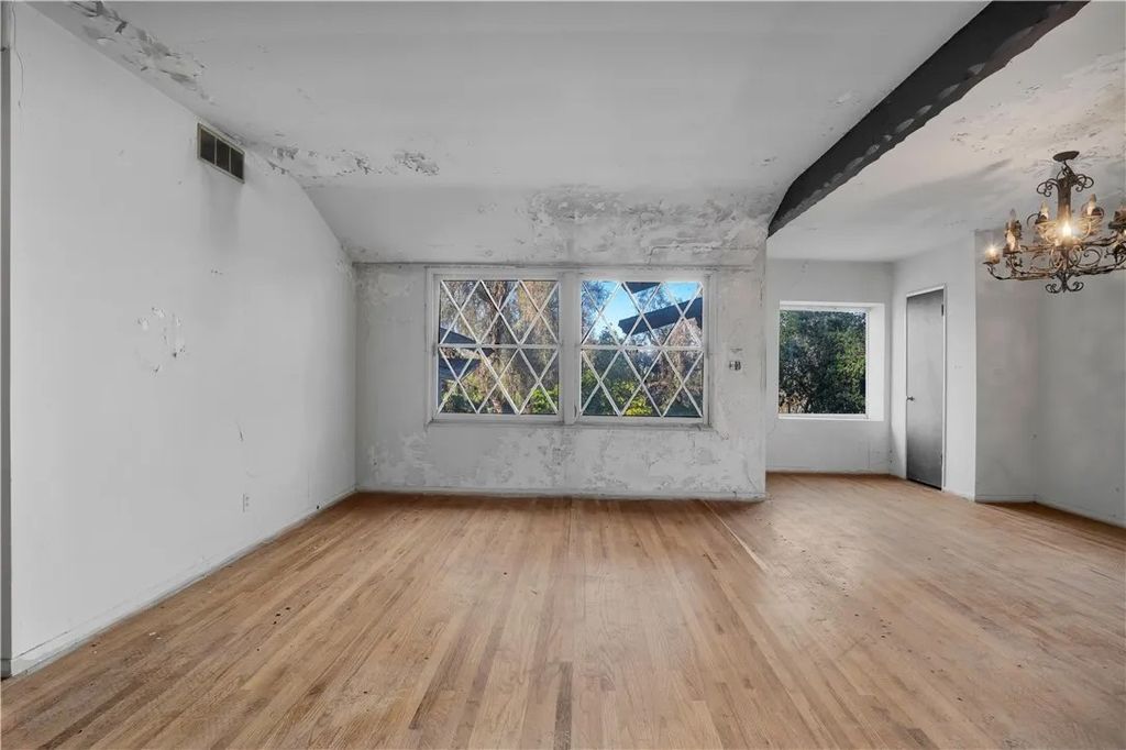 Tucked on a generous 12,962 sq ft lot in the highly sought-after hills of Woodland Hills, south of Ventura Blvd, this 2-bedroom, 1.5-bath, 1,415 sq ft property presents a true fixer-upper opportunity for investors and developers looking to reimagine and add value in a premier location. The home is set back from the street up a long driveway edged with mature trees and vegetation for added peace and privacy. The home has an open floorplan with L-shaped living and dining area anchored by an imposing double-sided brick fireplace. On the other side is an informal family room with backing brick fireplace and sliding glass door access out to the yard. A good-sized kitchen has a convenient breakfast nook area, adjacent utility room with laundry hookups, and a convenient powder bath. Down the hall are two bedrooms, one more sizable to act as primary, and a shared full, hall bath with separate tub and shower. The structure is rife with possibilities for renovation, expansion, or potential reconfiguration to maximize the lot and hillside setting. Outdoors, the generous parcel extends back and up the slope, featuring a large side yard, an existing pool area, and a concrete pad at the top of the hill that invites reimagining as terraces, outdoor entertaining spaces, or a statement viewpoint. The property is serviced by a septic system and is ideally positioned near Taft Charter High School, Serrania Park, and Woodland Hills Country Club, with convenient access to shopping, dining, and entertainment along Ventura Blvd, as well as an easy drive to Pacific Palisades, Malibu, and the City. Dont miss out on the amazing potential embodied but the land, location, and potential for a buyer ready to create something special in one of Woodland Hills most desirable hillside neighborhoods. Property is being sold in As-Is condition.