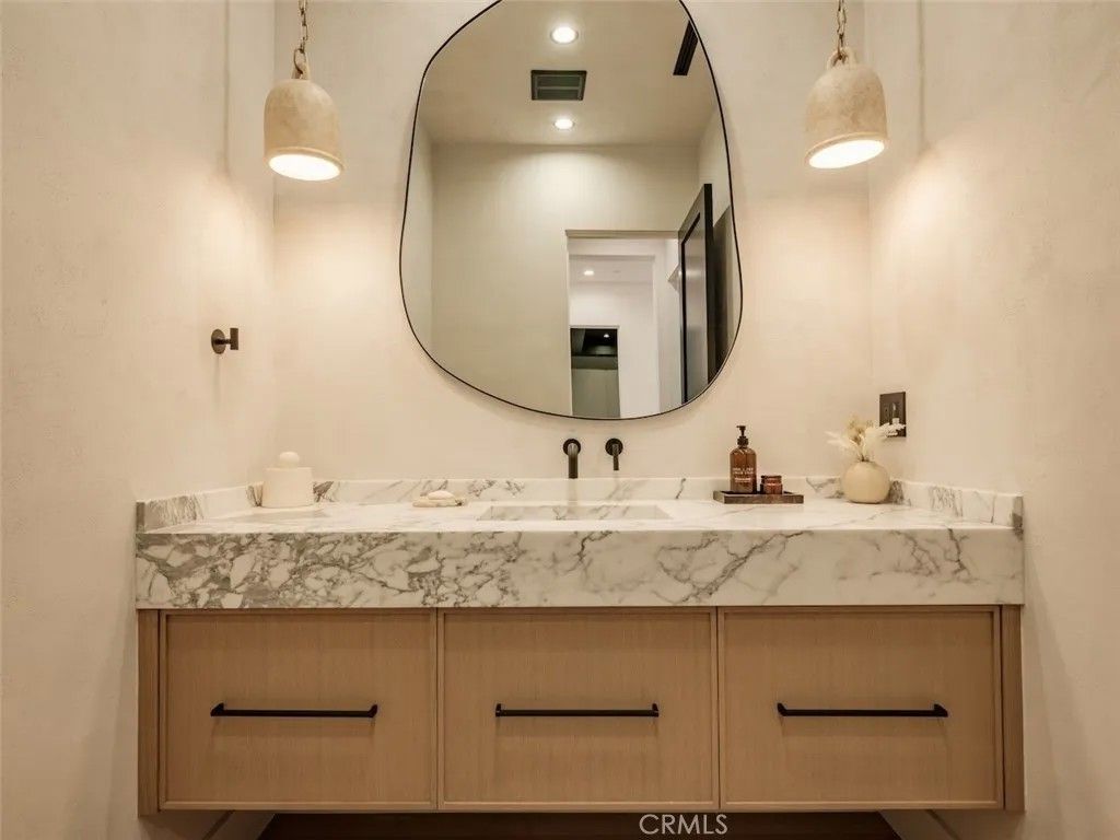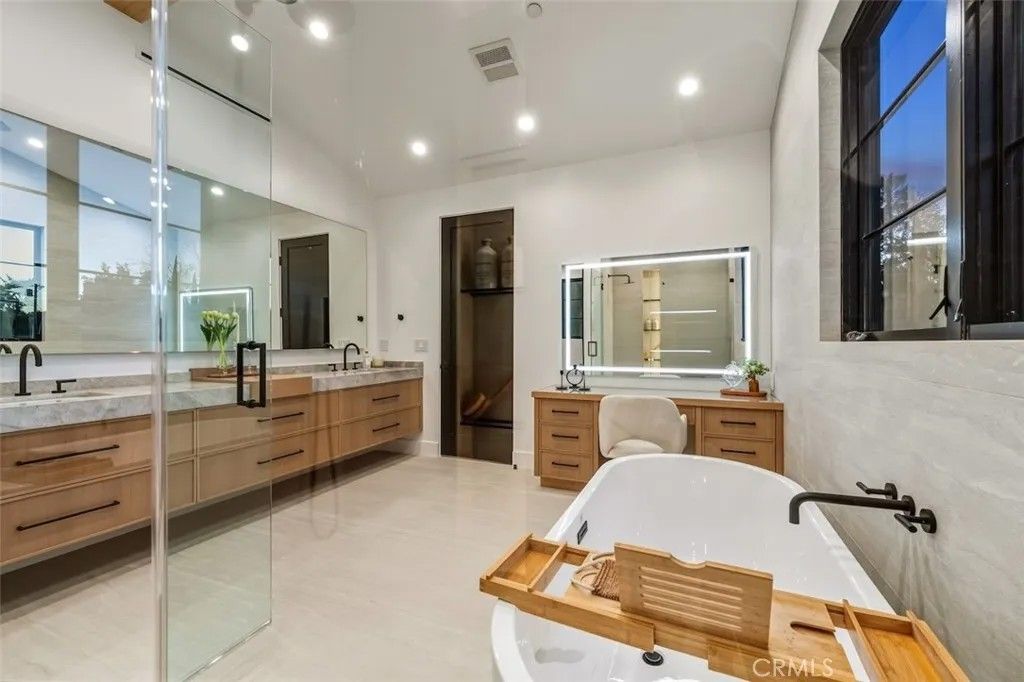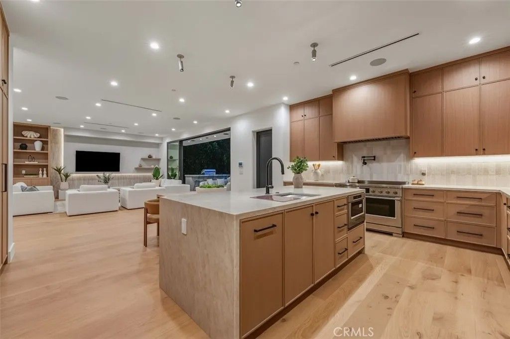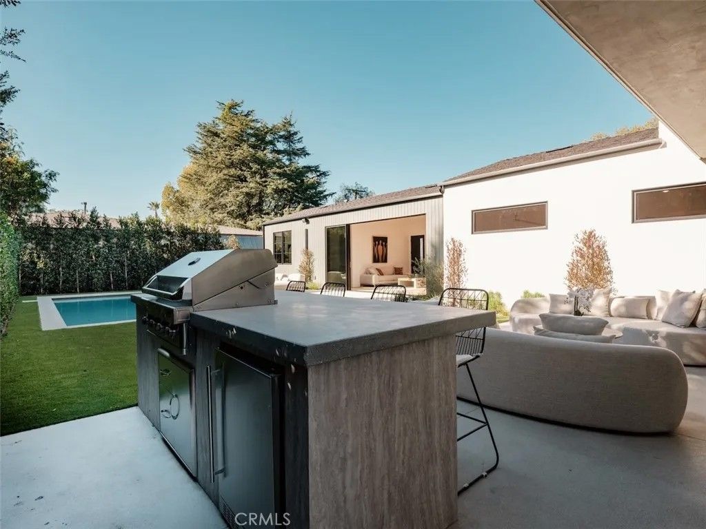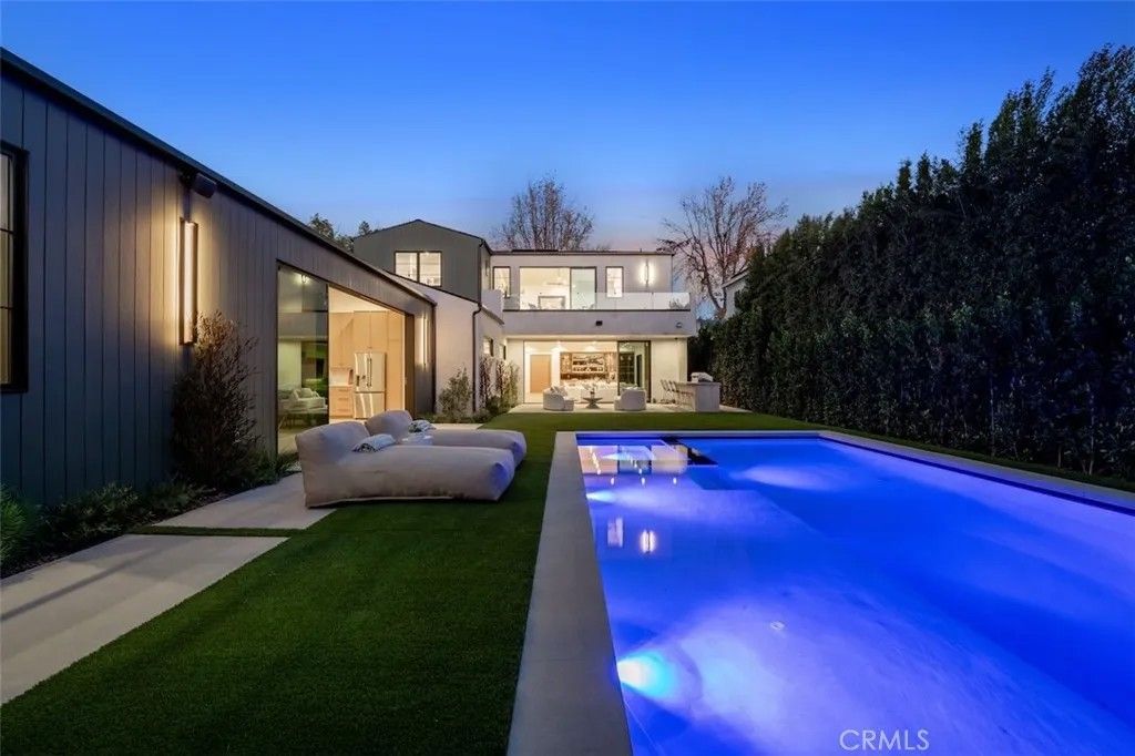 Welcome to an exceptional gated estate in the heart of Encino. This luxurious residence spans approximately 4,800 square feet of refined living space, offering 6 spacious bedrooms and 6.5 elegantly appointed bathrooms, perfect for both everyday living and grand-scale entertaining. Step through the private secure gate with intercom into a beautifully landscaped front courtyard, setting the tone for the privacy and prestige that define this home. Inside, the residence is crafted with attention to detail and modern lifestyle in mind, featuring an integrated Control4 smart home system that controls lighting, climate, security and more with seamless precision. The heart of the home includes a spectacular theater room, designed for immersive entertainment with premium acoustics and luxurious finishes, ideal for movie nights and gatherings with family and friends. The living spaces flow effortlessly, offering ample room for relaxed living and elevated entertaining. Large windows and thoughtful layout enhance the sense of space and natural light throughout. A standout feature of this property is the fully permitted Accessory Dwelling Unit (ADU) with its own separate entrance, providing flexibility for guests, extended family or office space , all while maintaining privacy for both occupants. Each bedroom is generous in size and comfort, with the primary suite serving as a serene retreat. Multiple en-suite bathrooms feature high-end finishes and fixtures that elevate everyday comfort. Outside, the outdoor areas provide a private sanctuary - perfect for California living - and complement the indoor lifestyle beautifully.
