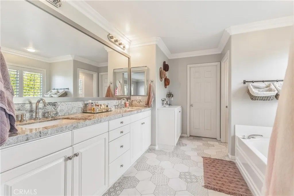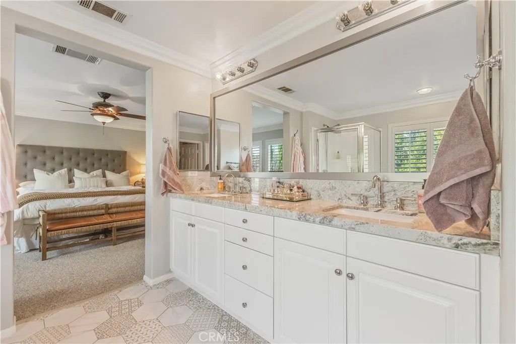 Turnkey, refined, and impeccably maintained, this elegant 3-bedroom, 3-bath Fair Oaks Ranch home offers 2,086 sq ft of elevated living and is tucked away on a quiet cul-de-sac in a highly desirable neighborhood. Thoughtfully renovated and showcasing true pride of ownership, this home blends timeless style with modern comfort. The open, light-filled floor plan features rich beveled tile flooring with the look of dark hardwood and a beautifully appointed kitchen with granite countertops, farmhouse sink, stainless steel appliances, and an inviting eat-in breakfast nook. No detail has been spared crown molding, baseboards, & wainscoting all professionally installed by Hahnco, plantation shutters throughout, and recessed lighting. Upstairs, a large and spacious loft provides the perfect secondary living area, home office, or media space, along with the convenience of an upstairs laundry room. The luxurious primary suite is a true retreat, offering a generous bedroom, large granite counter top vanity with dual sinks, designer tile, a separate soaking tub and shower, and a walk-in closet. The private backyard is beautifully landscaped with mature trees, offering a serene and private setting complete with a large covered patio ideal for outdoor entertaining, along with low-maintenance turf for easy year-round enjoyment. Plus, there is a separate room downstairs and full bathroom! Conveniently located near Target, Lowes, Costco, Trader Joes, and a variety of local shops and restaurants, with easy access to the 14 freeway. Too many upgrades to list this is a home youll want to experience in person. A rare, move in ready opportunity in a highly desirable location.