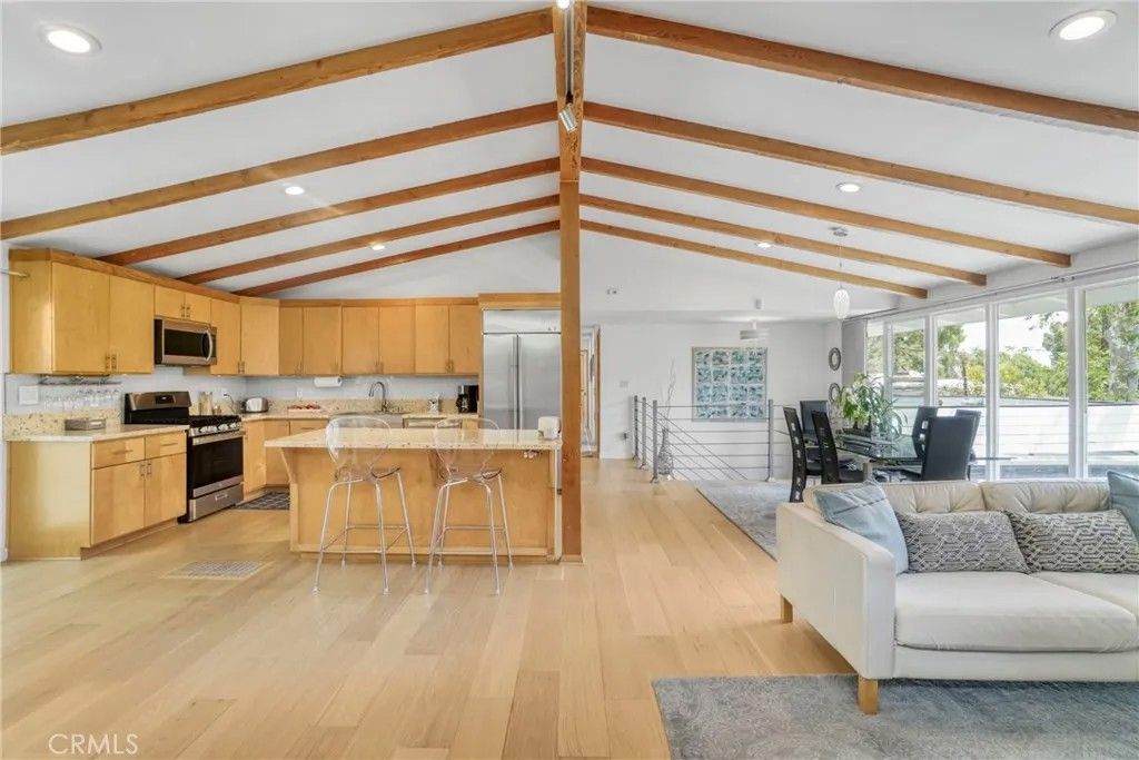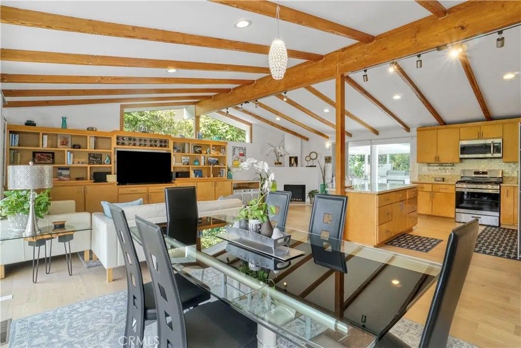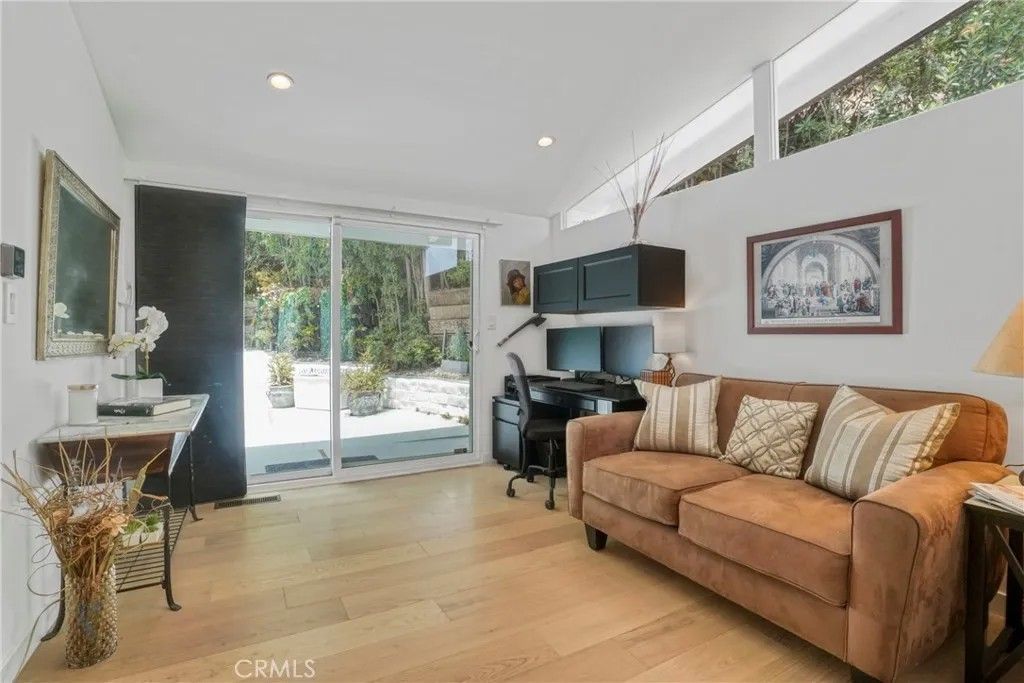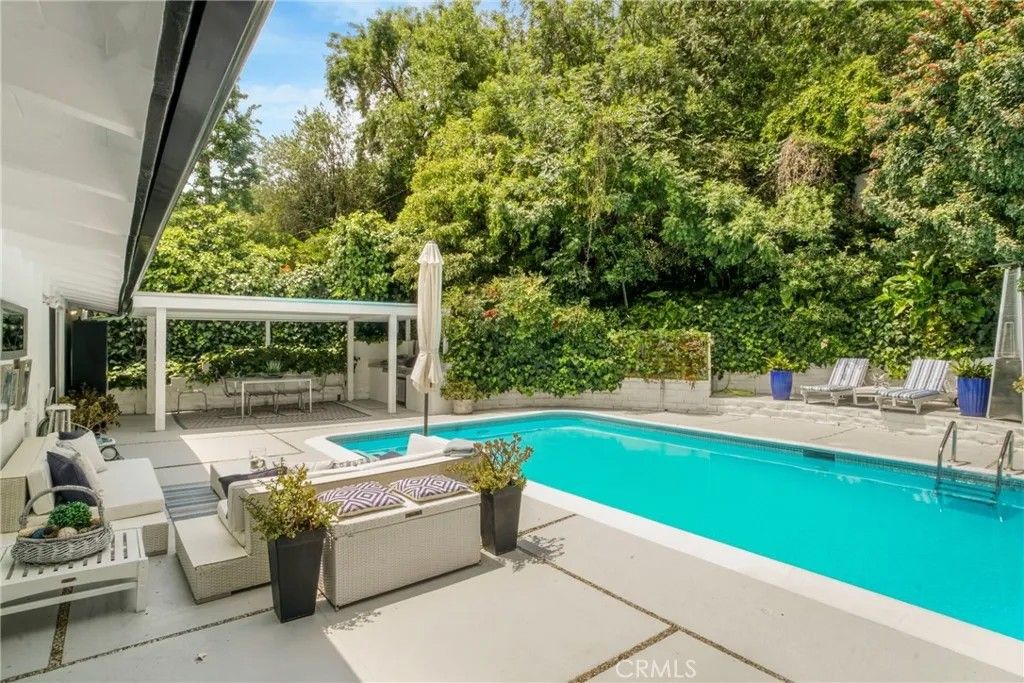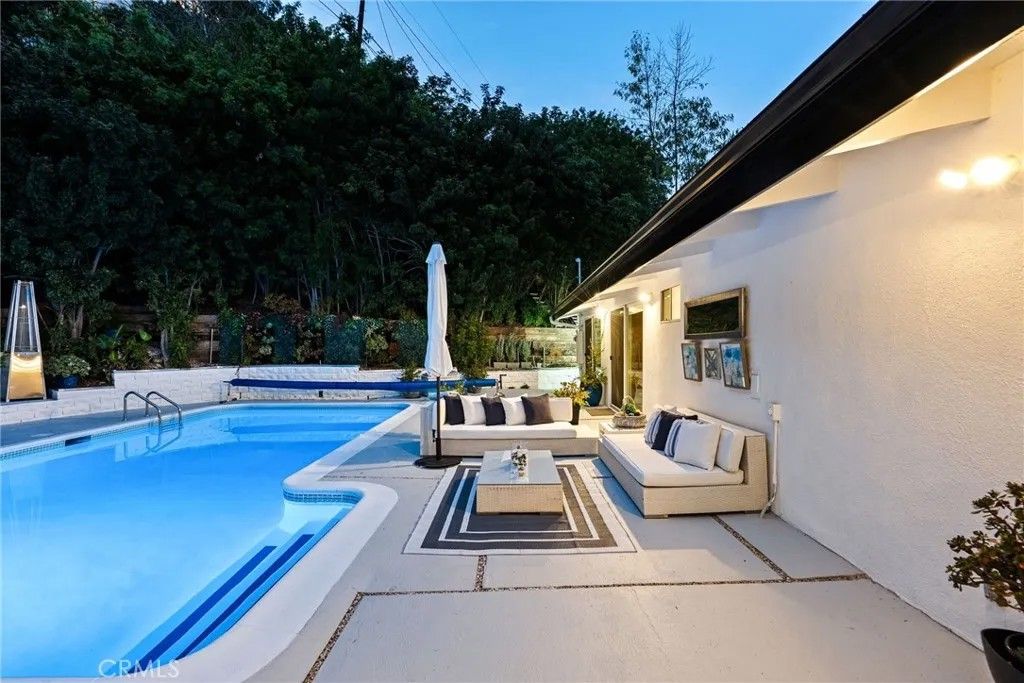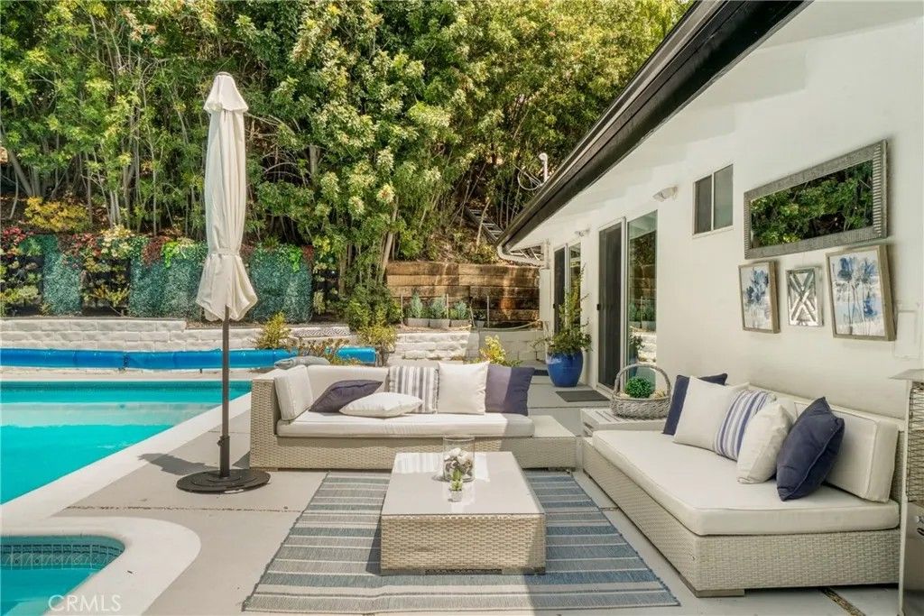 This exquisite mid-century contemporary home with fantastic curb appeal is nestled on a secluded hillside in a coveted Sherman Oaks neighborhood. Ideally located South of Ventura Blvd., this property offers close proximity to top-rated schools, premier dining/shopping, and easy freeway access. It features 4 bedrooms & 4 bathrooms (3 en suite), and 2,597 sq. ft. of thoughtfully designed living space on a 7,988-sf. lot that perfectly blends privacy, comfort, and style. Lush, mature landscaping surrounds the home, highlighted by an inviting heated swimming pool and a covered outdoor dining/BBQ areaideal for enjoying the quintessential Southern California lifestyle year-round. Recently updated, the home showcases new hardwood floors, fresh interior/exterior paint, recessed lighting throughout, solid oak-veneer doors, and abundant built-in storage. The open-concept floor plan features high ceilings with exposed wood beams, floor-to-ceiling windows, and seamless indoor-outdoor flow. The living room is a true showpiece, featuring custom built-in cabinetry with a wine rack and a stunning fireplace as the focal pointperfect for both entertaining and everyday living. Some furniture may be included, offering added value and convenience. The beautiful kitchen is equipped with a stainless-steel built-in GE Monogram refrigerator, quartz countertops, a stainless-steel farmhouse sink, a generous island with ample storage, and brand-new GE gas stove and dishwasher. One of the homes standout features is a custom-built recording studio, constructed with QuietRock drywall for superior soundproofing. The studio includes a booth suitable for vocals, live instruments, or drums (equipment not included) and can easily be converted into a movie theater, media room, fifth bedroom, or even a separate ADU. Upstairs, the spacious primary suite opens to a private deck with delightful peek-a-boo views of the mountains and the San Fernando Valley. Additional features include a two-car carport, triple-zone HVAC, a separate laundry room, a large mechanical room, and extensive storage throughout. Located just two homes from the end of the road leading to a tranquil hiking trail with breathtaking panoramic valley views, this iconic mid-century modern residence offers a rare opportunity to own a truly special home in Sherman Oaks. Dont miss this unique chancewelcome home! SELLERS ARE OFFERING BUYER'S CONCESSIONS. PRICE ADJUSTMENT! NOW $2,299,000
