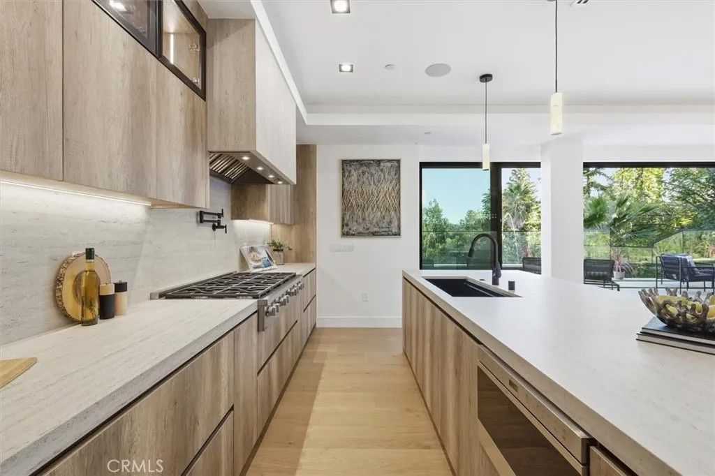 BRAND NEW MODERN LUXURY HOME IN ENCINO HILLS! ( Motivated Seller!) Step into your dream home with this stunning, newly built masterpiece located in the tranquil Encino Hills, just south of the Boulevard. This spacious residence offers approximately 4,282 sq ft, featuring 5 beautifully designed bedrooms and 5 full bathrooms, perfectly blending contemporary aesthetics with the comforts of everyday living. Imagine gathering with family and friends in the open floor plan, where expansive glass doors invite sunlight and showcase breathtaking views of the lush hills and woods. The heart of the home, the elegant main kitchen, is equipped with a sleek island and top-of-the-line finishes, complemented by a fully equipped Butlers kitchen to make entertaining effortless. As you flow from the living areas to the outdoor patio and cantilever pool, youll feel the seamless connection to nature, perfect for enjoying the California lifestyle. Whether sipping your morning coffee or hosting sunset gatherings on the rooftop deck with panoramic views, this home is designed for making cherished memories. Additional highlights include a 2-car garage, energy-efficient solar panels, custom cabinetry, designer finishes, and meticulously crafted Dekton stone countertops, all adding to the homes allure. This residence offers not just a place to live, but a sanctuary of peace, privacy, and sophistication. Embrace the modern Encino lifestylewhere elegant architecture meets relaxed luxuryjust minutes from fine dining, shopping, and the vibrant energy of the Boulevard. The sellers motivation to move means you have a unique opportunity to make this exceptional house your new home. Schedule a viewing today and feel the magic for yourself!