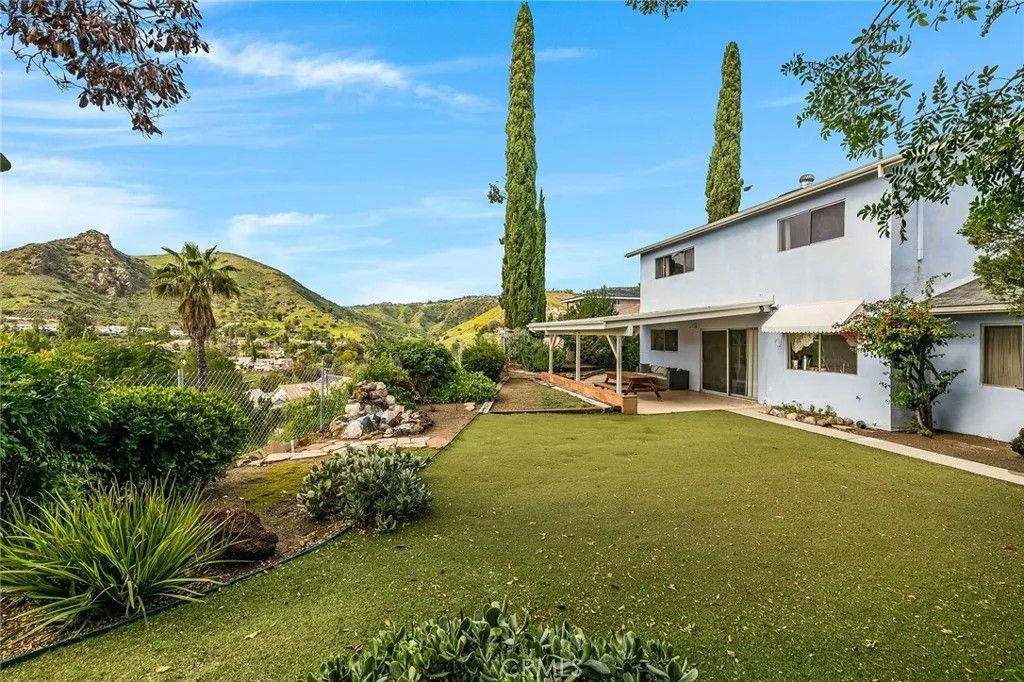 SPECTACULAR VIEWS ALERT!! Perched on a quiet cul-de-sac in prime West Hills, this exceptional two-story home offers truly spectacular 180 views of the Bell Canyon hills, Castle Peak, the West Valley, and the Santa Monica Mountains. From breathtaking sunsets to sparkling city lights, the panoramic vistas are simply unforgettableand visible from almost every window in the home. The backyard is a private hillside retreat. A terraced hillside with staircase access leads to multiple flat sitting areasperfect for a table and chairs, a garden, or simply relaxing in the hammock nestled between two trees. The drought-tolerant landscaping in both the front and back yards, complete with synthetic turf, offers low maintenance. A covered cabana patio provides the ideal shaded space for outdoor dining and entertaining. Theres even room to add a pool and imagine the views youd have while you float! Inside, the home features a spacious primary suite and a downstairs bedroom with an adjacent three-quarter bath. The kitchen opens to the dining room and includes a breakfast bar peninsula. A cozy wood-burning fireplace anchors the family room. The large attached garage presents exciting potential for a future ADU or game room if desired. Beyond the home itself, the location is unbeatable. Located walking distance to Mae Boyar city park (2 playgrounds, sand pit exercise area, basketball courts, and clean public restrooms), the beautiful West Hills baseball complex, and Pomelo Elementary School. Its also a short drive from the Fallbrook center, the Westfield, Topanga Village and mall and the new LA Rams training facility.