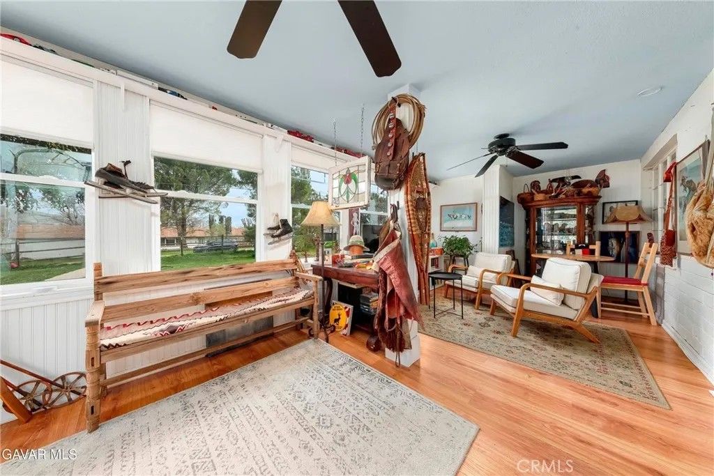 COZY UPGRADED HOME WITH LARGE WORKSHOP/BARN ON AN ACRE OF ALL USEABLE PROPERTY. This unique Leona Valley Home is fully fenced, with mature trees and it is on a paved street. In addition to the Living Room with Wainscoting and a Cozy Wood Burning Stove, there is a Sun Room with Lots of Windows that works great as a Family Room. The Kitchen has been remodeled with Lots of Cabinets, Butcher Block Countertops with Stone Tile Backsplaxh and Stainless Appliances. Beyond the kitchen is a Laundry Room with cabinets for your supplies. The Master Bedroom has a large Walkin Closet. The Bathroom was also very tastefully remodeled. You'll love the Real Hardwood Flooring! This home has Central Heat and Air. All appliances can stay including Refrigerator and Washer Dryer. And the Roof is New. Covered Outdoor Areas are great for Indoor/Outdoor Living. What also makes this home special is the Large Permitted Metal Barn/Workshop with full power. It can probably fit 8 cars and it features rolling entry doors and hay or equipment Awnings on each side. There is a second quaint storage building. And how about the outdoor shower dog washing station. And there is an old well sellers have never activated (no pump currently). This Lovely Property is in Peaceful Leona Valley, only 30 minutes from Santa Clarita -- a hidden Gem of southern California. Don't miss this great property.