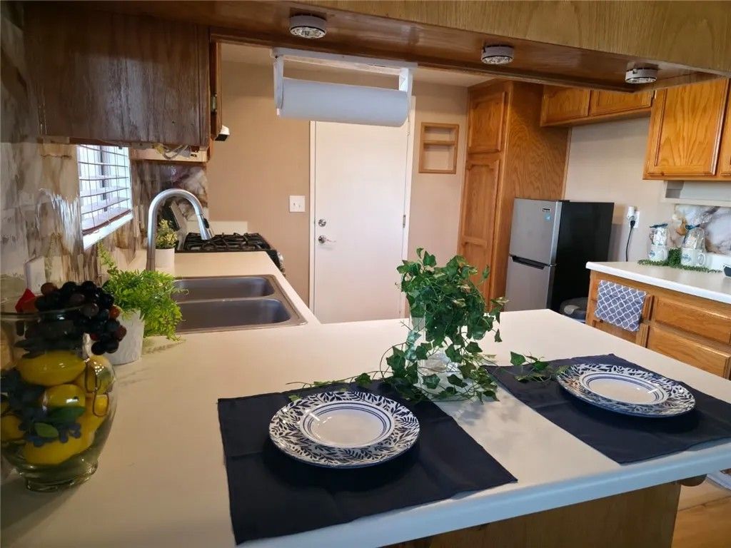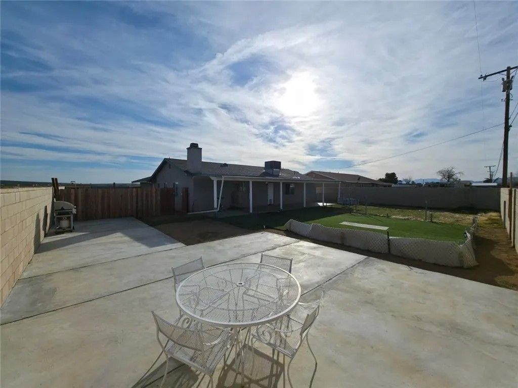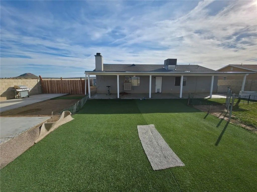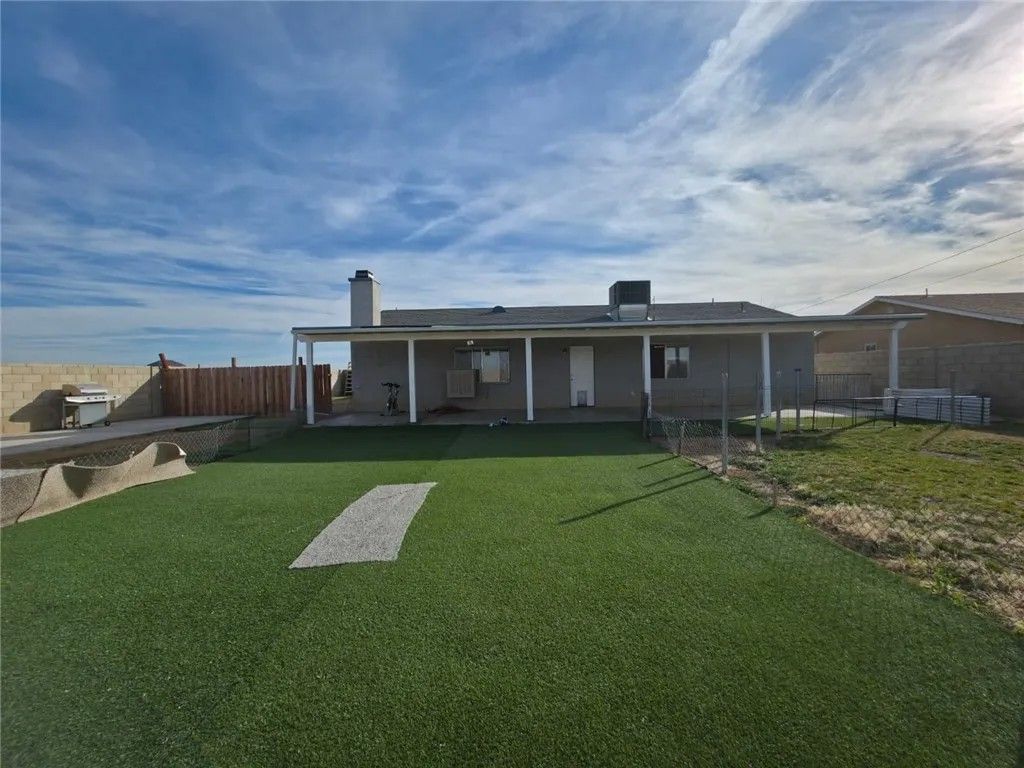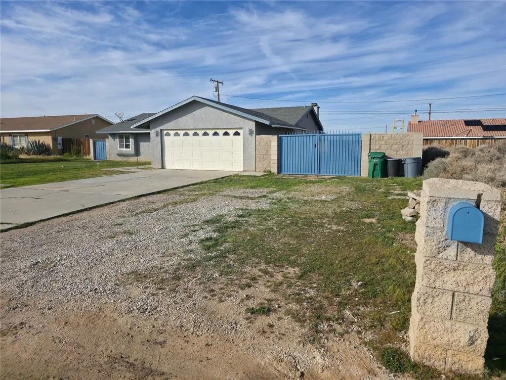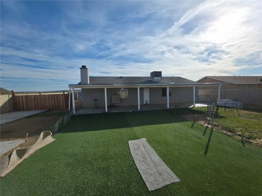 Cozy home for You!! This single-story home offers 3 bedrooms, 2 bathrooms, and 1,367 sa ft of living space on a 10,018 sq ft lot in a quiet California City neighborhood. Built in 1991, the property features an attached 2-car garage and a functional floor plan with freshly painted interiors that create a bright and welcoming atmosphere. The living room includes wood-burning fireplace, and the home provides central heating and air conditioning for year-round comfort. The layout flows easily between the living, dining, and kitchen areas, offering a comfortable setup for everyday living. The spacious lot is fully enclosed with block fencing and an iron gate, offering privacy, security, and room to personalize outdoor spaces. A covered patio provides a great area for relaxing or entertaining. Located in an established residential neighborhood with convenient access to local amenities, schools, and easy access to freeways, this home presents a great opportunity to own a home.