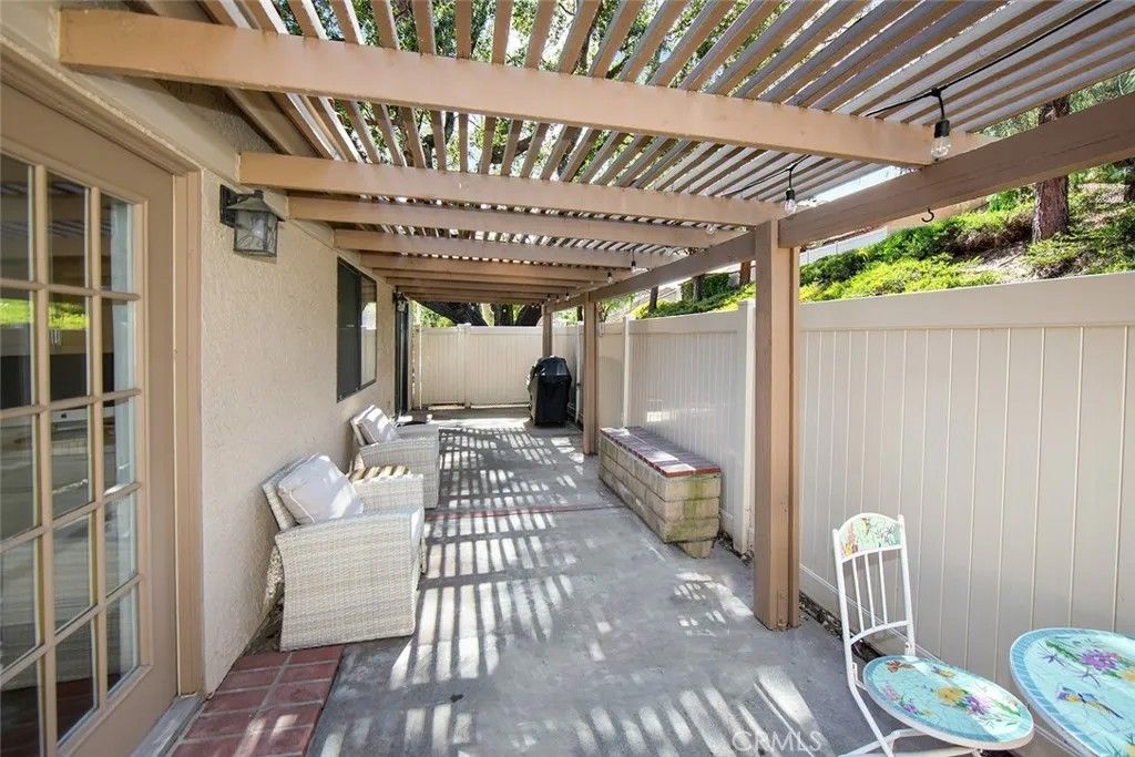 Welcome to this beautiful single-story townhome in the private, gated Scenic Hills community. Featuring 2 bedrooms and 2 bathrooms with only one shared wall, this home offers exceptional privacy and is ideally positioned at the end of a quiet cul-de-sac making it one of the most desirable locations in the entire neighborhood. With no guest parking on the street, youll enjoy added peace and minimal traffic. Recent upgrades provide both value and comfort, including a new roof in 2025 and new water heater installed in 2022. The owners have thoughtfully enhanced the interior with recessed lighting in the living and dining rooms, new light fixtures throughout the interior, and a Level 2 electric vehicle charging hookup. Vaulted ceilings create an open, airy atmosphere in the oversized living room, complemented by a cozy fireplace and charming French doors. There is a formal dining room and spacious kitchen with sliding door access to the expansive 370+ sq. ft. private patio making it perfect for entertaining or relaxing outdoors. Flooring includes hardwood, tile, and carpet, while plantation shutters add timeless character to the bedrooms. The primary suite features a walk-in closet, and the attached 2-car garage offers direct-entry convenience. Enjoy picturesque greenery and beautifully maintained landscaping throughout the community. Scenic Hills offers true resort-style amenities, including a sparkling pool, spa, sauna, clubhouse, library room, gym, tennis courts, basketball court, picnic areas, and an exclusive 9-hole par-3 golf course. Ideally located near everyday essentials and shopping, including Costco, Trader Joe's, Target, and Stater Bros. Markets, all within approximately 2.5 miles. This is a rare opportunity to own a private, upgraded home in one of the communitys premier locations.