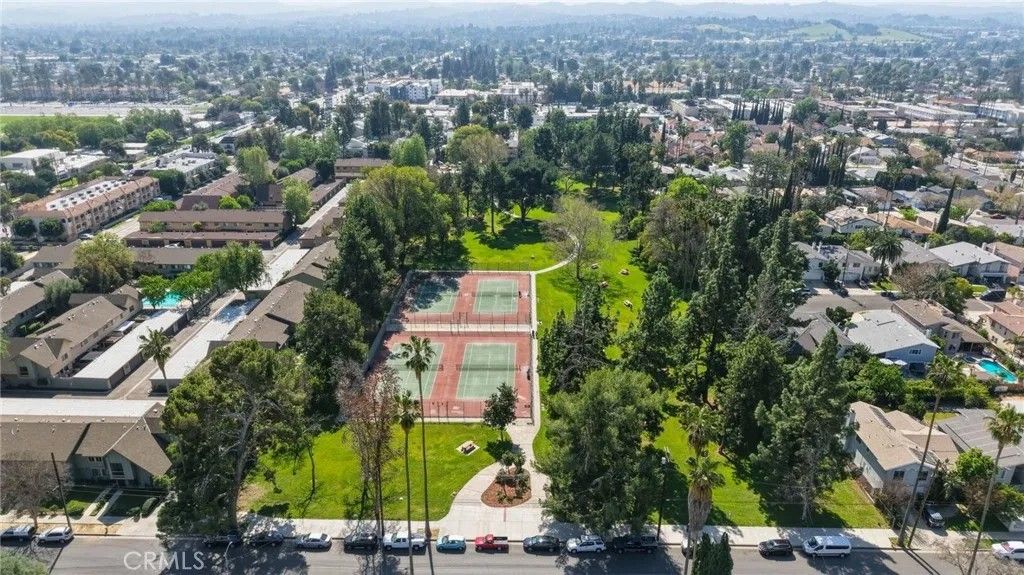 Welcome to this charming move-in ready townhome located in a quiet and well-maintained community in Winnetka. Situated next to a beautiful park featuring tennis courts, a children's play area, multiple tables and is perfect for enjoying outdoor space, whether for morning walks or family time. Perfectly situated near the pool within the community, it enjoys open views of the beautiful blue pool and lush greenery. Step inside to a welcoming entry that opens to a spacious living room, complete with a convenient powder room and an additional storage closet. The newly renovated kitchen features new stove, dishwasher, exhaust fan, white shaker cabinets with soft-close drawers, beautiful quartz countertops and a large pantry room offering plenty of storage. The generous dining area opens to both the kitchen and a private patio, creating a great space for everyday living and entertaining. Upstairs you will find three bedrooms, including a spacious primary suite with oversized closets and a private ensuite bathroom. Two additional bedrooms share a full bathroom and linen closets in the hallway provide extra storage. The large private patio offers a peaceful outdoor space with fresh flowers and plants, perfect for relaxing. Additional highlights include fresh interior paint, updated flooring, newer HVAC system and newer waterheater. Completing the home is an oversized two-car garage with washer-dryer hook-ups and direct access into the yard and home. The community features a pool and beautifully maintained greenbelts, creating a serene environment to call home. Lower HOA includes water, earthquake insurance, green belts, pools. The complex offers ample street parking for guests. VA APPROVED COMPLEX
