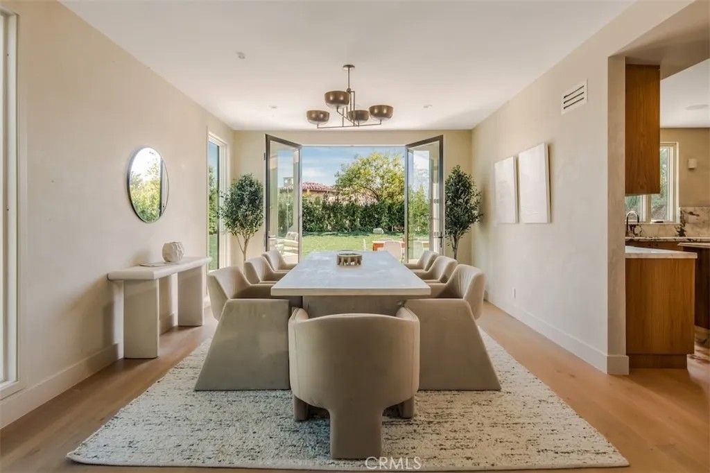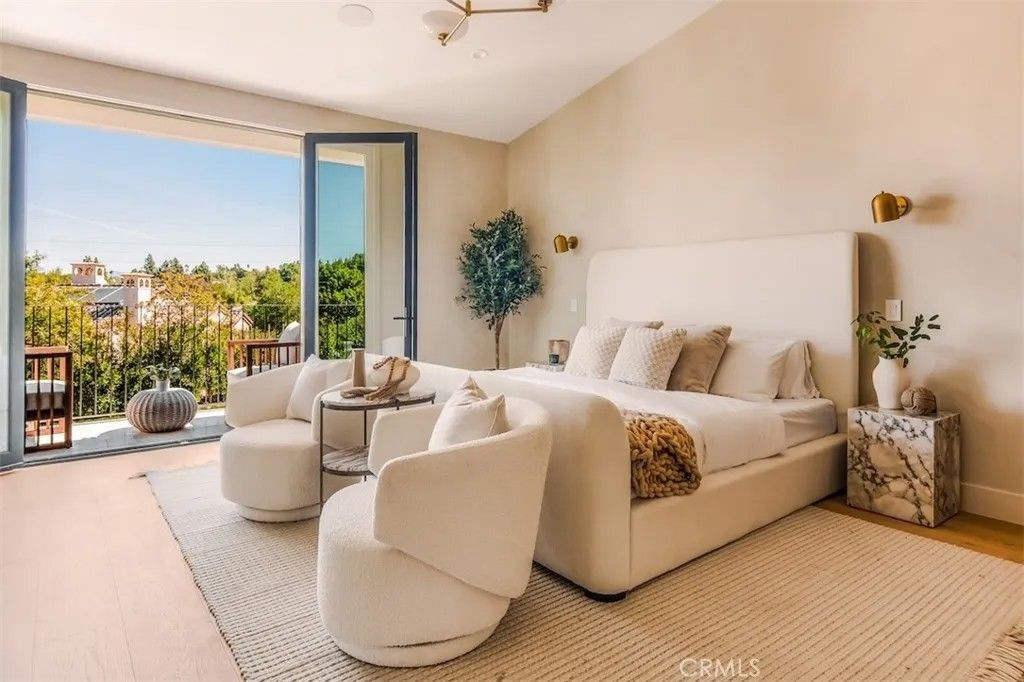 Welcome to 4016 San Remo Way, a statement estate nestled behind the exclusive 24-Hour Guard-Gated Silverhawk Ridge. Set on a commanding 17,743 sqft lot with sweeping views of the valley and Santa Monica Mountains, this newly reimagined residence is a masterclass in modern California luxury. A striking arrival sets the tone, where a custom oak front door and wood-clad garage hint at the level of craftsmanship and intention carried throughout the home. Inside, dramatic two-story vaulted ceilings and a sun-drenched open floor plan create an immediate sense of scale, volume, and effortless sophistication. Every detail has been carefully curated. Plastered interior walls, solid oak flooring, custom cabinetry, and bespoke lighting come together to create a warm yet refined palette. Expansive Fleetwood sliding doors and Lincoln windows dissolve the boundary between indoors and out, elevating the homes connection to its natural surroundings. Integrated speakers throughout the home allow music to flow seamlessly from room to room, enhancing the overall ambiance and lifestyle experience. The living spaces are both grand and inviting, offering a formal living room, an elegant dining area, and a stunning family room - all seamlessly connected to a showpiece kitchen with marble countertops and premium finishes, designed for everyday living and elevated entertaining. The primary suite is a true retreat, privately positioned to capture breathtaking views across the valley and into the Santa Monica Mountains. A private balcony extends the space outdoors, while a generous walk-in closet and spa-like bath complete the experience, creating a setting that feels both indulgent and serene. Each of the four bedrooms and bathrooms has been thoughtfully designed with a cohesive, high-end aesthetic, including a sculptural powder room featuring a natural stone, chiseled-edge vessel sink. An attached studio ADU with one bathroom offers ultimate flexibility, ideal for a media lounge, game room, guest quarters, or private studio. Outdoors, the estate transforms into a private resort. A sprawling backyard framed by mature hedging offers complete seclusion, with a pool, multiple lounge and entertaining areas, and an abundance of space to host or unwind under the open sky. Positioned just moments from Mulholland Hills and El Caballero Country Club, this turnkey residence offers a rare blend of privacy, design, and prestige within one of Tarzanas most sought-after gated enclaves.