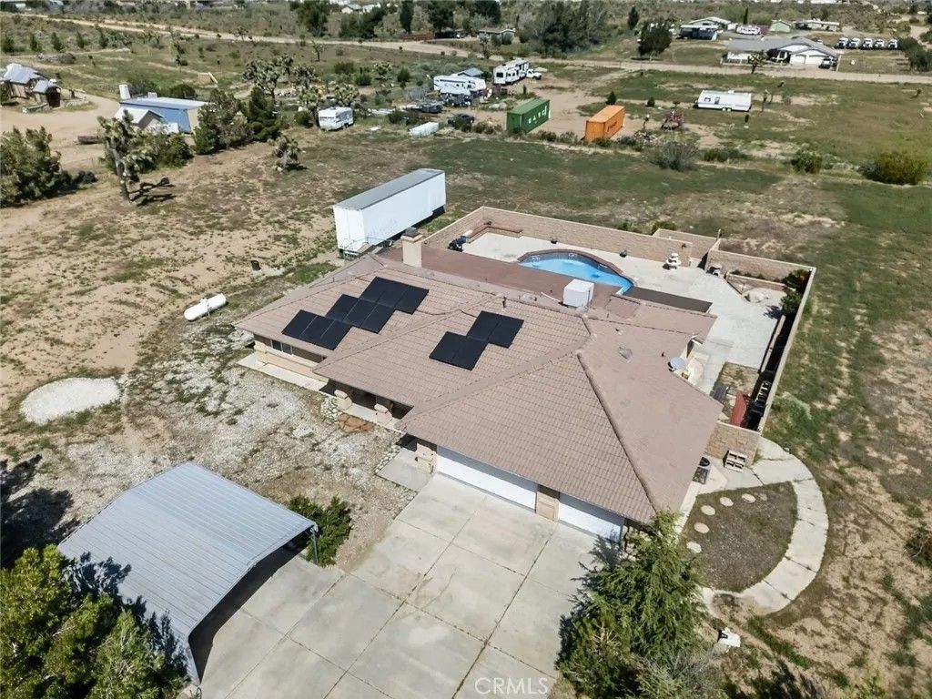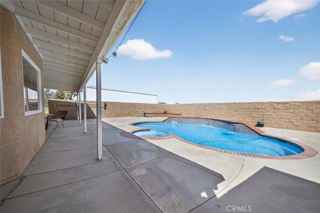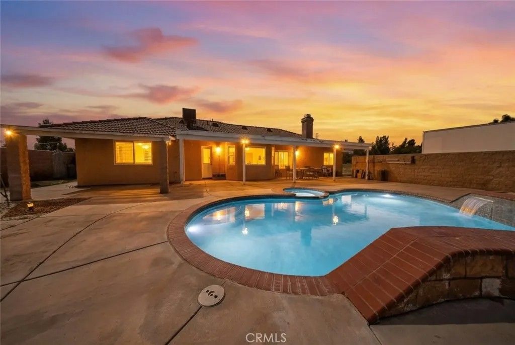 Beautiful single-story home situated in the heart of Victorville, offering space, comfort, and endless possibilities. Built in 2005, this well-maintained residence features 4 spacious bedrooms, 2 bathrooms, and approximately 2,160 square feet of living space. Set on an expansive 2.05-acre lot, the property provides a rare opportunity for those seeking room to grow, entertain, or create their ideal outdoor retreat. The backyard is designed for enjoyment, complete with a private pool and spa, perfect for relaxing or hosting gatherings. Inside, the home offers a functional and inviting layout with a cozy living room fireplace, ceiling fans throughout, and a dedicated laundry room for added convenience. The 3-car garage provides ample parking and storage space. Additional highlights include solar panels for energy efficiency and the potential that comes with a large lot in a desirable location. A unique opportunity to own a property that combines land, lifestyle, and comfort, all in one.