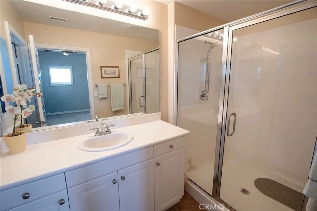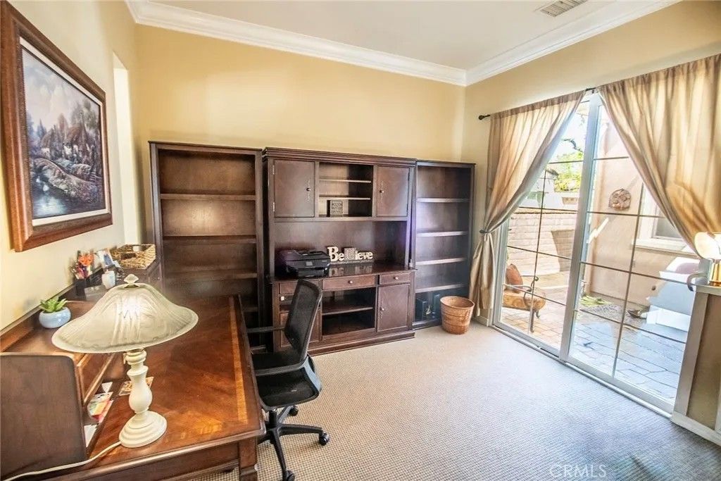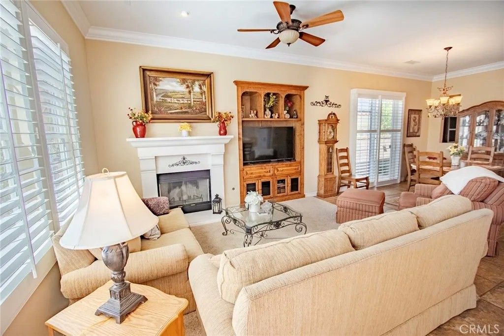 As you pass through the custom wrought iron entry, youre welcomed into a private covered atrium a true centerpiece of the home. With charming landscaping, a tranquil fountain, and shaded seating areas, this inviting space connects the main residence to a detached casita featuring its own bedroom and bathroom ideal for guests, a home office, or flexible living. As you enter the main home, a light-filled foyer opens to a thoughtful layout with a den overlooking the atrium and a convenient powder room for guests. The spacious living and dining areas flow seamlessly together, creating an ideal setting for both everyday living and entertaining. The large kitchen offers abundant cabinetry, beautiful countertops, updated appliances, a breakfast bar, and a sunny nook that opens to the backyard patio. The main-level primary suite features direct outdoor access and an ensuite with soaking tub, dual vanities, walk-in shower, and a generous walk-in closet. Upstairs, youll find an additional bedroom, bathroom, and a versatile loft space. Located in a vibrant 55+ community with a clubhouse, theater, pool, bocce ball, and more this home offers comfort, connection, and flexibility, with the rare addition of a private casita and inviting atrium.