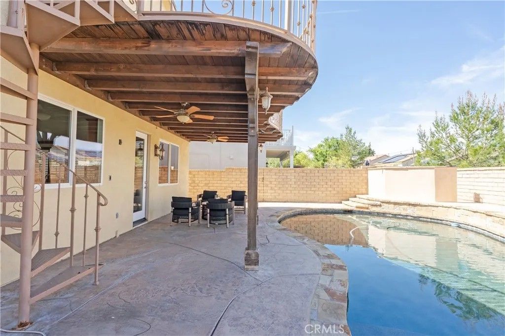 Welcome to an exceptional opportunity to own a home in the highly sought-after Fair Oaks community of Santa Clarita now offered at an incredible value, do not miss this opportunity to own a spacious pool home for just under $1M. This beautifully refreshed home offers 4 spacious bedrooms, a versatile loft, 2.5 bathrooms, and approximately 2,551 square feet of thoughtfully designed living spaceperfectly suited for both everyday living and memorable entertaining. From the moment you enter, youre greeted by soaring ceilings, abundant natural light, and an open, airy floor plan that creates an immediate sense of warmth and sophistication. Recently enhanced with fresh interior paint and brand-new carpet, the home feels crisp, modern, and truly move-in ready. The inviting living area, anchored by a granite-faced fireplace, provides the perfect backdrop for relaxing evenings and gatherings with family and friends. The kitchen is both functional and inviting, featuring granite countertops, a center island, and stainless steel appliancesideal for everything from casual mornings to hosting guests. Upstairs, the generous loft offers endless possibilities as a home office, media lounge, or playroom. The spacious primary suite serves as a private retreat, complete with a walk-in closet and ample storage, while the additional bedrooms provide comfort and flexibility for any lifestyle. Step outside and discover your own private oasis. The backyard showcases a sparkling, resort-style pool, creating a serene and inviting space to unwind, entertain, and enjoy Southern Californias year-round sunshine. With both patio and balcony areas, youll find multiple spaces to relax, dine, and take in the peaceful surroundings. Adding to its appeal, the home is ideally located directly across from a picturesque neighborhood park, offering scenic views and effortless access to open green space, playgrounds, and outdoor recreationan extension of your own backyard. Additional features include solar panels for enhanced energy efficiency, a 3-car attached garage with direct access, an upstairs laundry room, and tasteful upgrades throughout including plantation shutters and recessed lighting. Perfectly situated near top-rated schools, shopping, dining, and major commuter routes, this home delivers the ideal blend of location, comfort, and lifestyle. A rare opportunity to own a move-in ready home with a private pool in one of Santa Claritas most desirable neighborhoods.