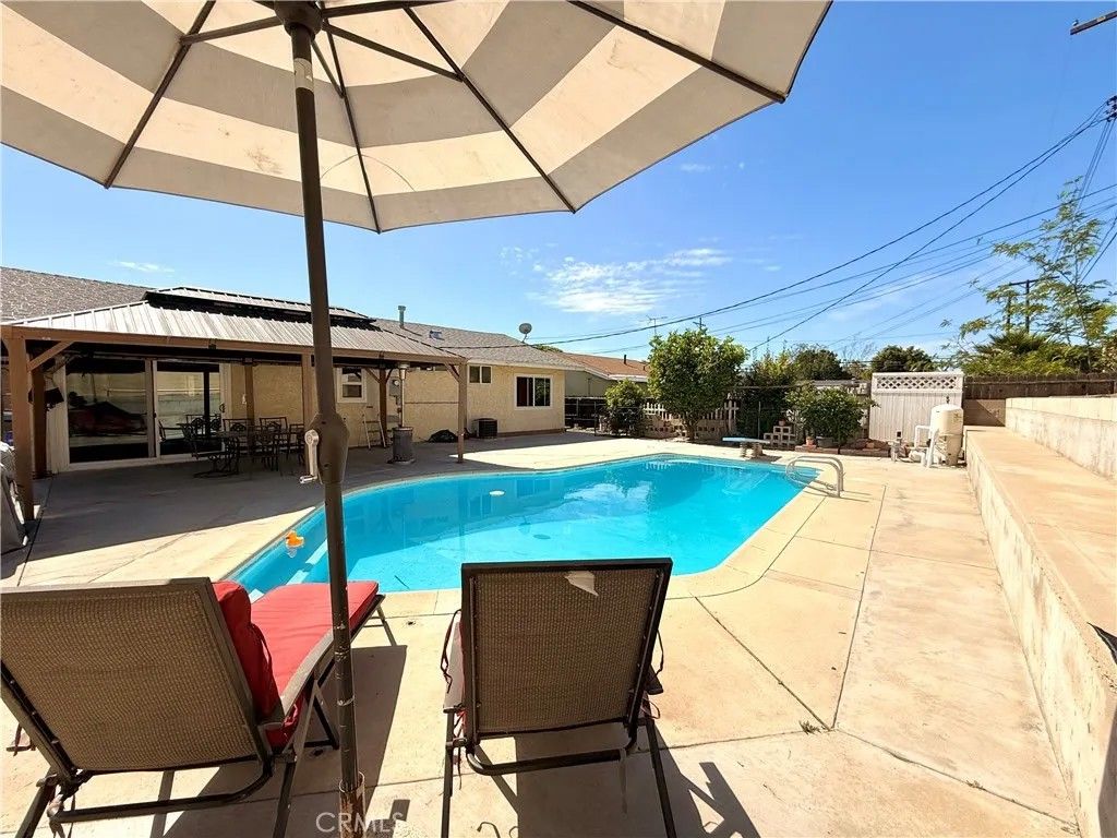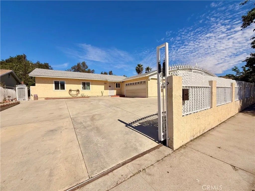 Welcome to 12471 Claretta Streetan inviting 3-bedroom, 2-bath home offering privacy, space, and exceptional outdoor living on a generous 7,500+ sq. ft. lot. Behind the gated front entry, youre welcomed by an expansive concrete driveway with ample parkingperfect for multiple vehicles, RV and/or boat parking. The property is fully enclosed with private brick and iron fencing, offering both security and seclusion. Inside, enjoy a spacious and comfortable living area filled with natural light, complemented by laminate and tile flooring throughout and dual-pane windows. The home offers a functional layout ideal for both everyday living and entertaining. The kitchen features granite countertops, white cabinetry, and stainless-steel appliances, flowing into a dining area with a ceiling fan and sliding doors that lead directly to the backyard. The bedrooms are generously sized and include ceiling fans and mirrored closet doors. Recent upgrades include copper plumbing and newer toilets, along with central A/C and heating for year-round comfort. Step outside to your private backyard retreatcomplete with a large pool, covered gazebo perfect for entertaining, and a low-maintenance yard with extensive cement work. The space is ideal for hosting gatherings or simply enjoying sunny Southern California days. A garden area with citrus trees and rose bushes adds charm, along with additional storage space. The garage is currently being used as a bonus room, offering flexibility for a home office, gym, or additional living space, with the option to use it as a garage if desired as well. Gated, private, and full of possibilitiesthis property features a large, low-maintenance lot with a spacious pool, a clean, move-in ready interior, and flexible indoor-outdoor spaces perfect for entertaining and comfortable living.