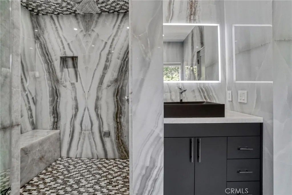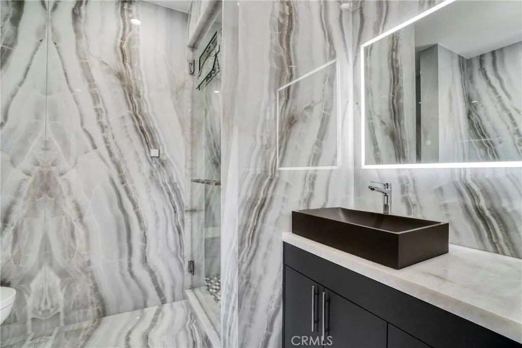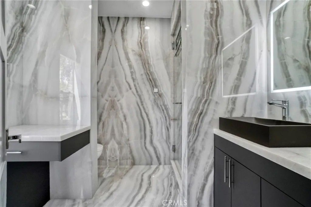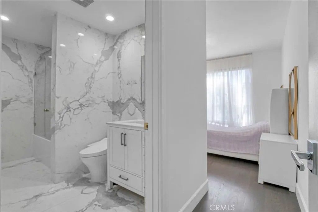 Chandler Park Village!!! Unit #207 Exquisitely remodeled 3-bedroom, 2.5-bathroom condo that exudes sophisticated modern living in the heart of Sherman Oaks. No expense was spared in transforming this residence into a designer showcase, combining elegance, smart technology, and luxurious finishes throughout.From the moment you step inside, you're greeted by sleek European oak floors, elegant recessed lighting, and a thoughtfully designed open floor plan perfect for entertaining. The living area is anchored by a cozy modern fireplace and accent wall, complemented by private balcony that fills the home with natural light.Thecustom chefs kitchenis a true masterpiece, boasting high-end Quartzite Cristallo countertops, sleek dual-tone cabinetry, soft-close drawers, andtop-of-the-line smart appliances. Whether you're preparing a quick meal or hosting a dinner party, this kitchen is equipped to impress even the most discerning chef.Allbathrooms feature custom vanities,Quartzite Cristallo countertops, designer lighting, and luxury wall-to-wall imported tile. The spa-like primary bath includes a walk-in Steam shower with rainfall fixtures and gold hardware that adds a touch of glamor to every morning routine.