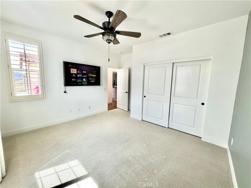 Step into modern luxury in this absolutely stunning, 2021-built home located in the prestigious gated community of Saddlewood at Joshua Ranch. With over $140,000 in builder and custom designer upgrades, this residence far exceeds new model offerings in the neighborhood. Located at the end of the cul de sac, this home features sweeping views of the beautiful mountains and the surrounding community. Enjoy an open-concept layout featuring rich wood floors, a chef's kitchen with granite countertops, classic antique white cabinetry, top of the line Bertazzoni wall oven and microwave, Bosch dishwasher, instant hot faucet and much more. The primary suite is a true retreat, with mountain views right from your bedroom window, The en-suite offers a huge soaking tub and separate shower. There are three additional bedrooms, all wired with fan outlets. There are a total of 2.5 baths, all with rubbed bronze fixtures. Designed for indoor-outdoor living, the home features a spectacular ''California Room'' outdoor patio with a built-in fireplace, and flat screen TV (included). It overlooks the professionally designed landscape and stamped concrete with panoramic mountain views. With it's fully paid solar system, this all-electric ''smart home'' is state of the art and includes a 3-car tandem garage for multiple vehicles or extra storage. The owners have spared no expense in upgrading this gorgeous property. They have carefully curated the home from top to bottom including; paint, flooring, electrical, lighting, tile, landscaping, and so much more. Schedule an appointment to see this one of a kind home today!
