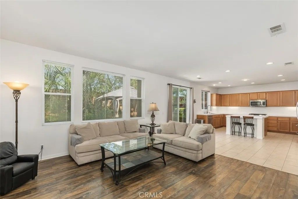 Stunning, warm, and inviting, centrally located, turn-key home, set in a quiet, secure gated Golf Community of Tournament Hills, with private, on-site security. Pull up to the curb where you will notice the low maintenance landscaping, highlighted by a peaceful balcony, bright green grass & mature shrubs, with front patio & brick accents. offering sharp curb-appeal. Walk into the front door, where you will be treated to the open floorplan, high ceilings, upgraded staircase, modern light fixtures, and a plethora of windows, letting in that all important natural light. Look to your right and see the spacious formal Dining Room, and to your left a large Living Room. Step into the Kitchen, and enjoy the gorgeous, clean, bright white countertops, recently installed stainless steel Kohler appliances, stainless steel Kohler farm sink with ss pull down faucet, and eat in island. The Kitchen opens to a cozy Family Room, with waterproof laminate wood flooring, and tile encased fireplace. The main floor, you will be treated to a Bedroom, and full Bathroom, for those all-important, multi-generational options. Upstairs you will find two guest Bedrooms and a full guest Bathroom with double sinks, and a HUGE flex room which can be used as an Office, Recreation Room, or easily converted into an additional Bedroom. The large Master Suite boasts a spacious walk-in closet and shower, as well as a soaking tub. Step into the low maintenance, pool sized PRIVATE Backyard, and notice the decorative concrete patio, mature shading trees, and trimmed shrubs. The 3-car garage has finished drywall. The home is walking distance to the park with an incredible fishing lake, Tournament Hills Elementary School, Golf, shopping, freeways, and much, much more.