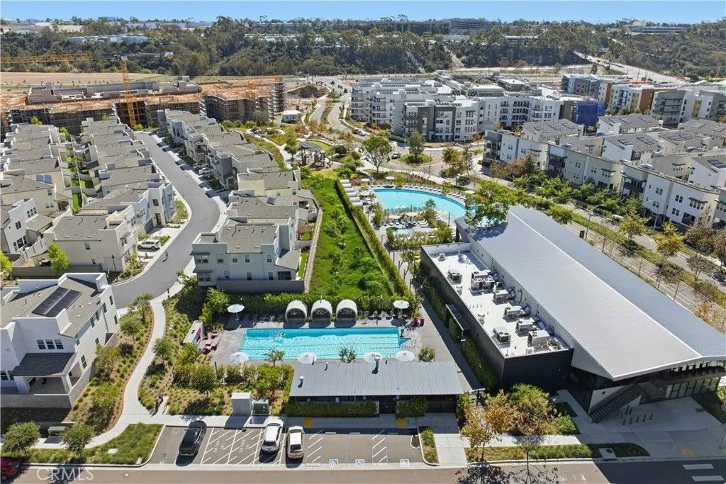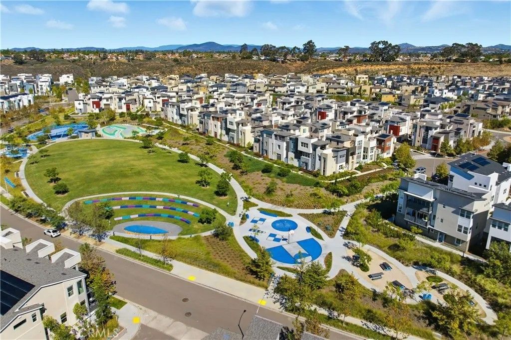 Beautifully upgraded 2 bedroom, 2.5 bathroom light and bright end unit, with quartz waterfall counter tops, home automation including blinds on third story, upgraded engineered wood flooring and Paid Off Solar! Designer interior paint, and elegant glass railings and surround sound that enhance the homes modern aesthetic. The gourmet kitchen features a dual waterfall-edge quartz countertop, upgraded pull-out drawers, and premium finishes that make it a true showpiece. The downstairs bedroom and full bathroom with direct two car garage access, are ideal for guests or a home office. Upstairs, youll find a versatile loft with bonus space off the bedroom, perfect for a playroom, media area, nursery or private retreat. The automated window blinds on the third story offer both convenience and sophistication. Every detail has been thoughtfully designed to exceed model-home qualitythis home is truly better than the model in one of San Diegos most sought-after master-planned communities - 3 Roots. This modern residence offers the perfect blend of luxury, comfort, and energy efficiency. Enjoy resort-style living with community amenities that include sparkling pools, a state-of-the-art gym, parks, and a state of the art community center.