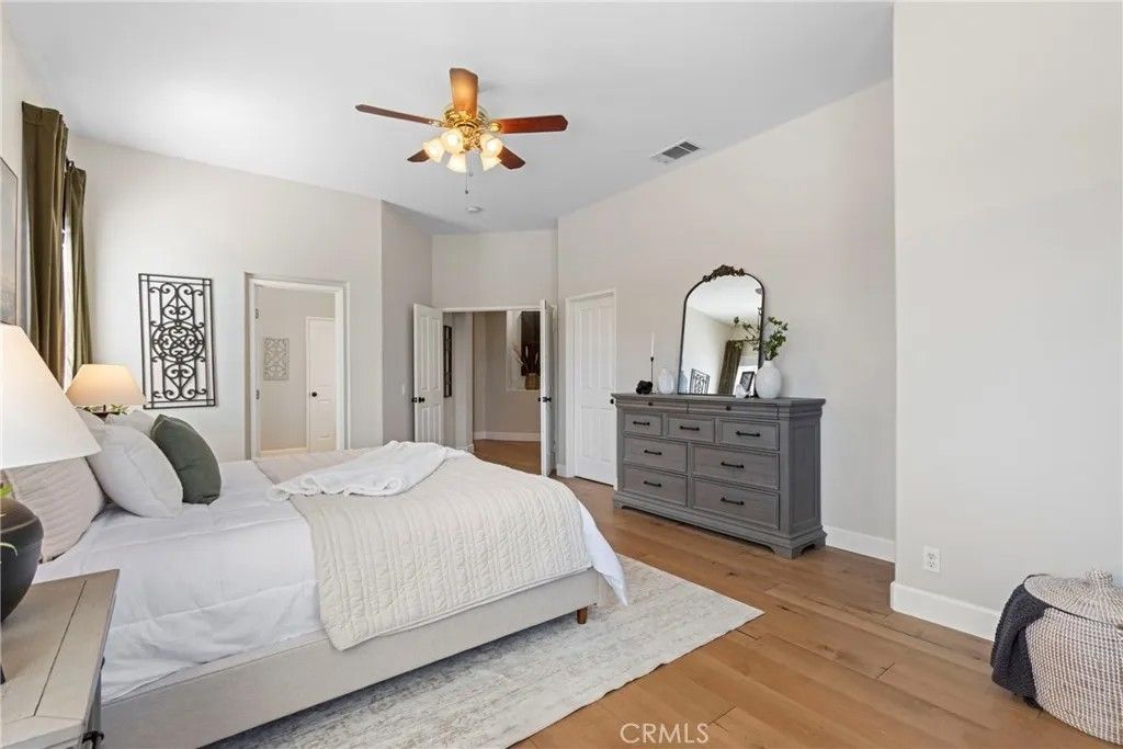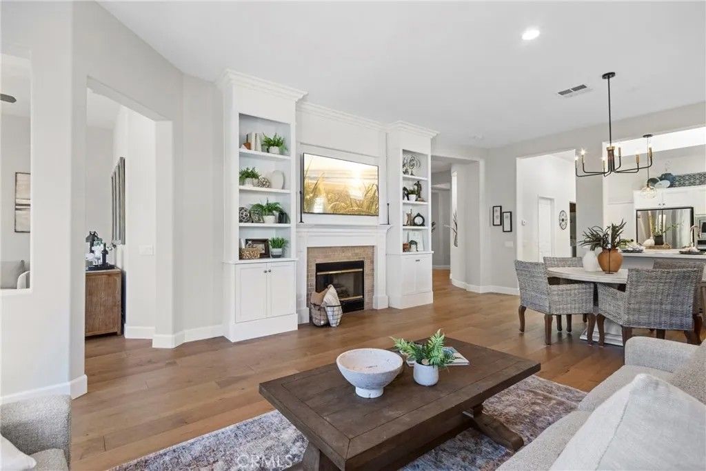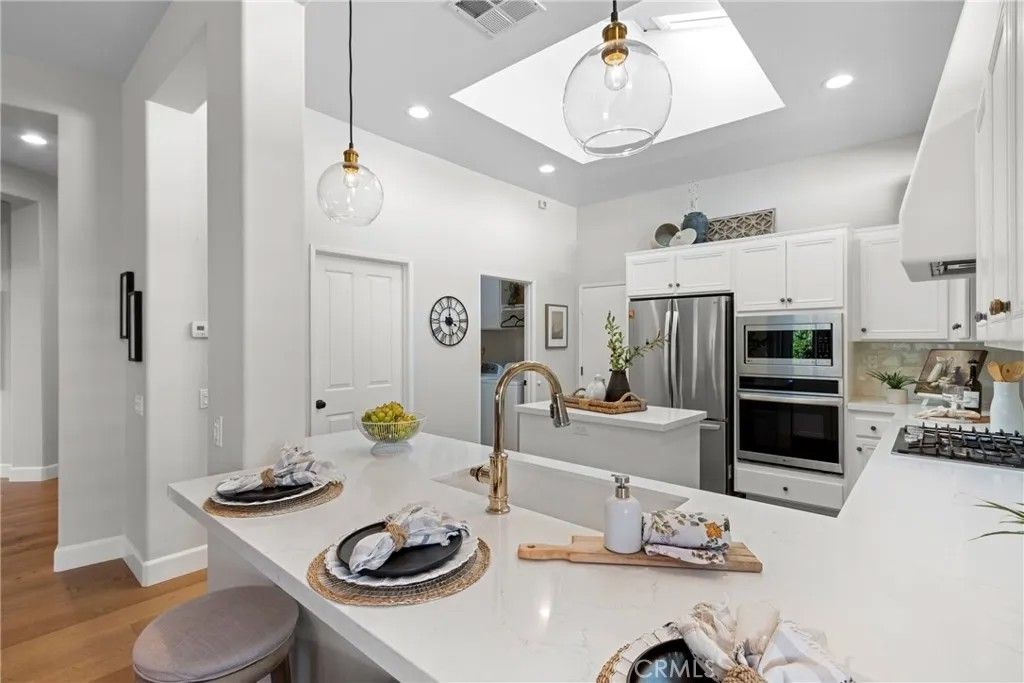 Splendor awaits in this rare, turnkey single-story home in the highly desirable Temeku Hills community! Ideally situated at the end of a quiet cul-de-sac with no rear neighbors, this property offers peaceful mountain views, exceptional privacy, and wonderful proximity to all that Temecula living has to offer. Enjoy easy freeway access and be just minutes from Wine Country, Pechanga Resort & Casino, Old Town, and top-tier shopping and dining. Step inside and instantly feel the warmth and sophistication of this pristine home, where pride of ownership shines throughout. Rich maple hardwood flooring, plantation shutters, and abundant natural lightenhanced by lovely kitchen skylightscreate a bright, welcoming ambiance. A spacious den/flex room flows effortlessly into the open-concept great room, framing beautiful backyard and mountain views. The gourmet kitchen is a showpiece, boasting quartz countertops, elegant zellige tile backsplash, stainless steel appliances, a center island with storage, large walk-in pantry, and barstool seatingperfect for gatherings. Through elegant French doors, the primary suite is a serene retreat offering a custom-designed walk-in closet, an ensuite bath with dual sinks, vanity area, separate tub and shower, and a private water closet. The large laundry room with storage cabinets adds everyday convenience, while the secondary bedroom enjoys a charming view of the front garden and easy access to the full guest bath. Step outside to a low-maintenance backyard designed for relaxation and entertainingcomplete with mountain views, open space behind the home, and a built-in gas line ready for your BBQ. Residents of Temeku Hills enjoy a premier resort-style lifestyle with access to a grand clubhouse, Olympic-size pool and spa, fitness center, sports courts, golf, tot lots, and beautifully maintained grounds.