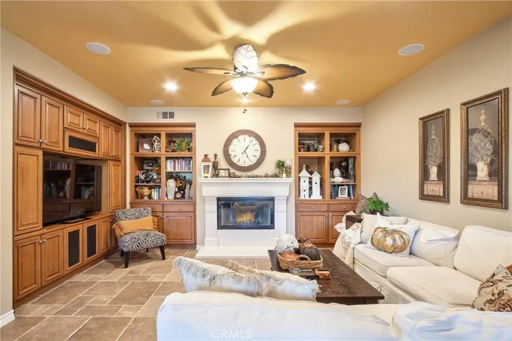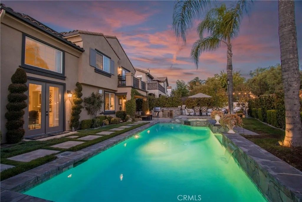 Welcome to the highly coveted gated community of the Fairways in Redhawk. This well appointed Italianate home has PAID SOLAR and no direct front facing neighbors and the back views to the third fairway of the Redhawk Community Golf Course and the beautiful Palomar Mountain. Enjoy cool backyard breezes due to the prime elevation of the home alignment to the Rainbow Gap. You will fall in love with the spacious and open floor plan. Step inside the glass wrought iron double doors to a grand formal entry and living/dining room with high volume ceilings. The heart of the home is the kitchen featuring a large center island, granite counter tops, glass mullion cabinetry, stainless steel dual ovens and a DCS 5 burner gas cooktop. The kitchen flows seamlessly into the open concept family room and informal dining room offering a fireplace and french doors that open to the back yard. The home has been highly upgraded with custom built in cabinetry throughout and designer touches. Surround sound speakers hardwired throughout most of the home interior and backyard with central volume controls which provide a great addition for holidays and entertainment. Delight in year round outdoor entertaining in the resort style backyard; with your own private saltwater pool, spa and a custom built outdoor kitchen featuring a natural gas barbecue, cooktop and refrigerator. The backyard has been landscaped to perfection with several areas to relax and enjoy the views. The interior of the home features 4 bedrooms and 3 bathrooms, including 1 bedroom/bath downstairs for multi generational living and an upstairs open loft. The primary bedroom suite is a true retreat with volume ceilings and a large private outdoor balcony. The spacious primary bath features a walk in closet and built in dresser for additional storage. Enjoy soaking in your large jacuzzi tub after a long day and the ample space provided in the large over sized built in dual bathroom vanity. The 3 car garage has been upgraded with epoxy coating and multiple cabinets. In addition, the home has been equipped with a central vacuum system throughout the home to make cleaning a delight.