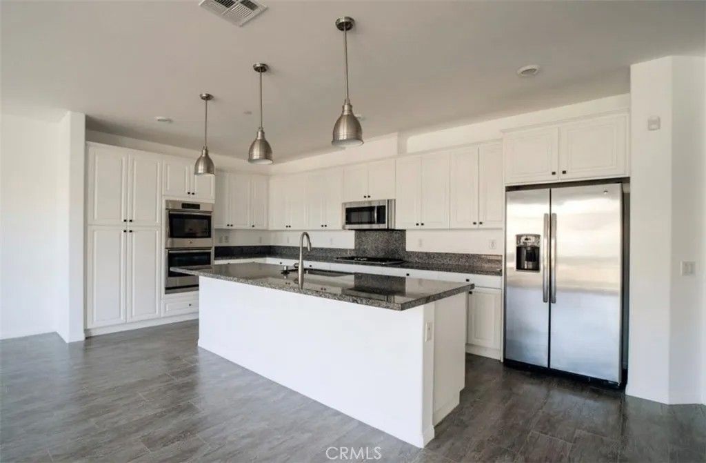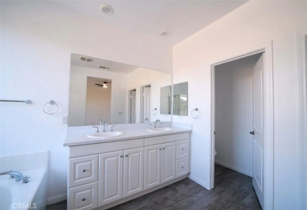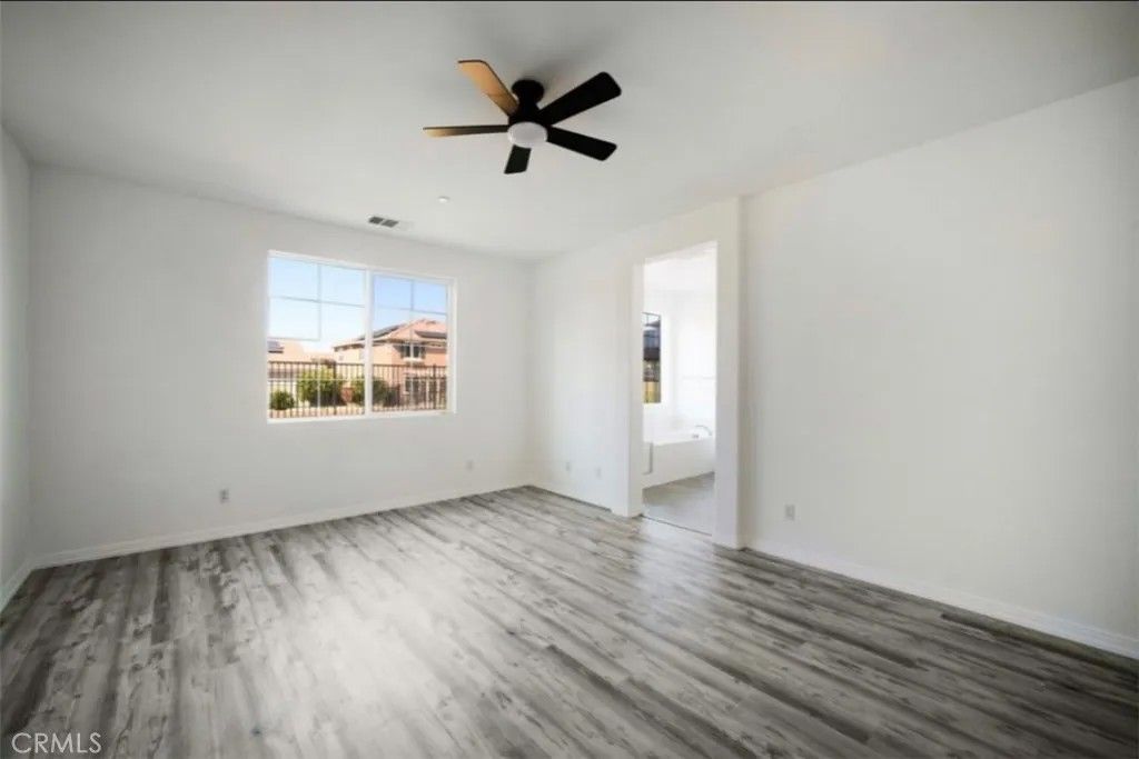 Welcome to this beautiful single-story corner-lot home located in one of Menifees most desirable gated communities, offering access to a gym, sparkling pool, relaxing hot tub, splash pad, and a park directly across the street. Step inside to a spacious entryway that leads into an open-concept living area filled with natural light from large windows and high ceilings throughout. The home features 3 bedrooms plus a versatile bonus room that can be used as an office, den, or 4th bedroom, and 2 full bathrooms, each with double sinks. The modern kitchen is a chefs dream, complete with granite countertops, stainless steel appliances, a double oven, a large center island, and ample cabinet space. The kitchen seamlessly connects to the dining and living areas perfect for entertaining. The primary suite offers a luxurious retreat with a separate soaking tub and shower, dual vanities, and a large walk-in closet with custom shelving. Every bedroom includes a ceiling fan for year-round comfort. Additional highlights include: Tile and vinyl flooring throughout for easy maintenance Laundry room with custom shelving and cabinetry Spacious hall closet and abundant storage Attached 2-car garage with automatic opener Neutral modern finishes ready for your personal touch Enjoy both comfort and convenience in this move-in-ready Menifee home where style, functionality, and community amenities come together perfectly.