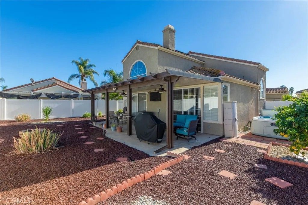 Welcome to sought after Menifee Lakes. This Home has been meticulosly taken care of. This 2 story home has everything you need to live a very comfortable life for you and your family. Starting with totally PAID OFF SOLAR. New AC Unit with a whole House Fan. Alarm System, Camera system, Ring system. Sink in the Garage. LVP Flooring in Stairway and all Bedrooms. Huge Backyard that's ready for your Pool, Upgrated Alumawood Patio cover for those days to cool off and relax with friends and family. Bathrooms have all been upgrated with the Master Bath waiting for you to put your final touches on it. Master Bedroom is located DOWNSTAIRS so no need to climb stairs! Also Master Bath and guest Bath are downstairs, with 2 Bedrooms and a Bathroom located Upstairs. This home sits in a cul de sac, nestled within a community boasting a swimming pool, spa and lush landscaping. Membership to beautiful Menifee Lake, which features fishing and a 2 mile walking path around the lake is also included. The lake membership features access to the Menifee Beach and Swim Club. The Beach and Swim club includes a private beach, sand volleyball, a clubhouse and a pool with a waterslide! A perfect place for summertime/ Golfing fun! Low Taxes and Low HOA, Welcome home! Property is priced for a quick sale and short Escrow!!