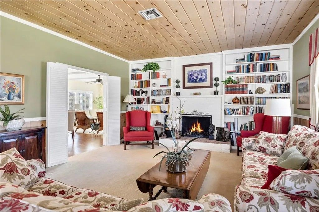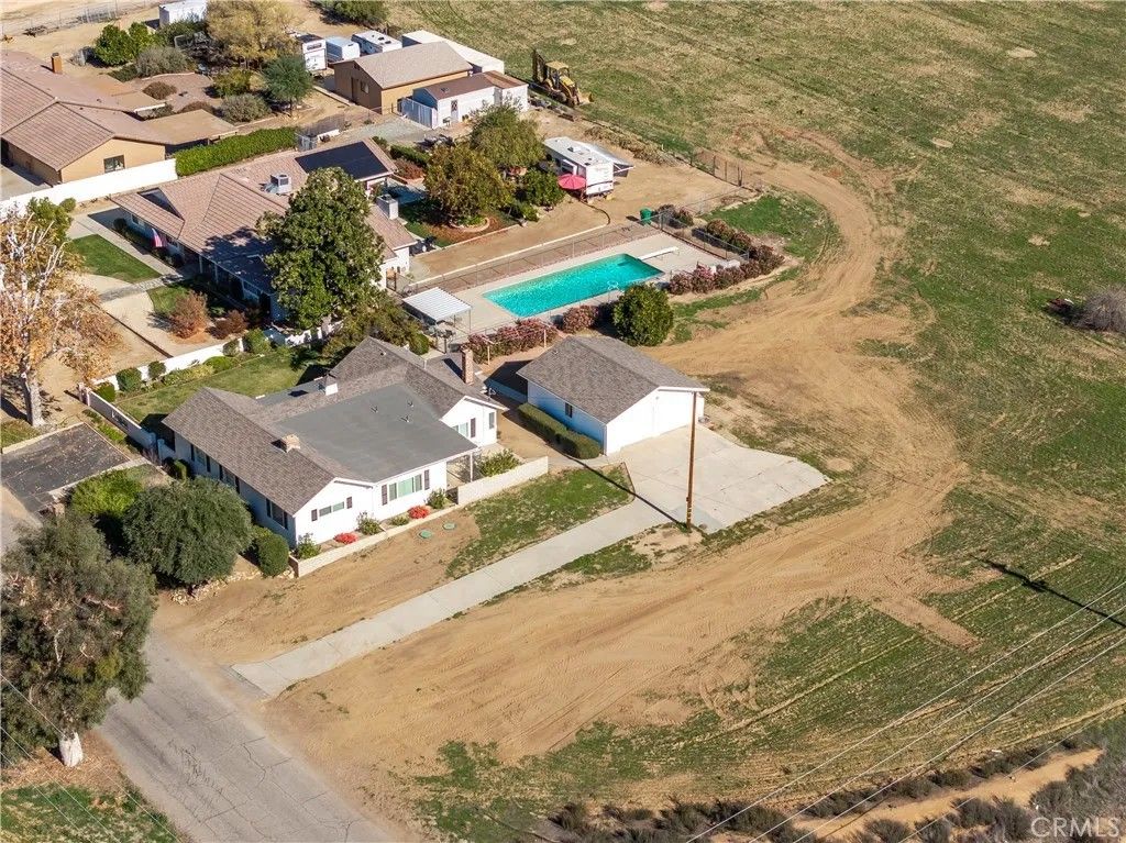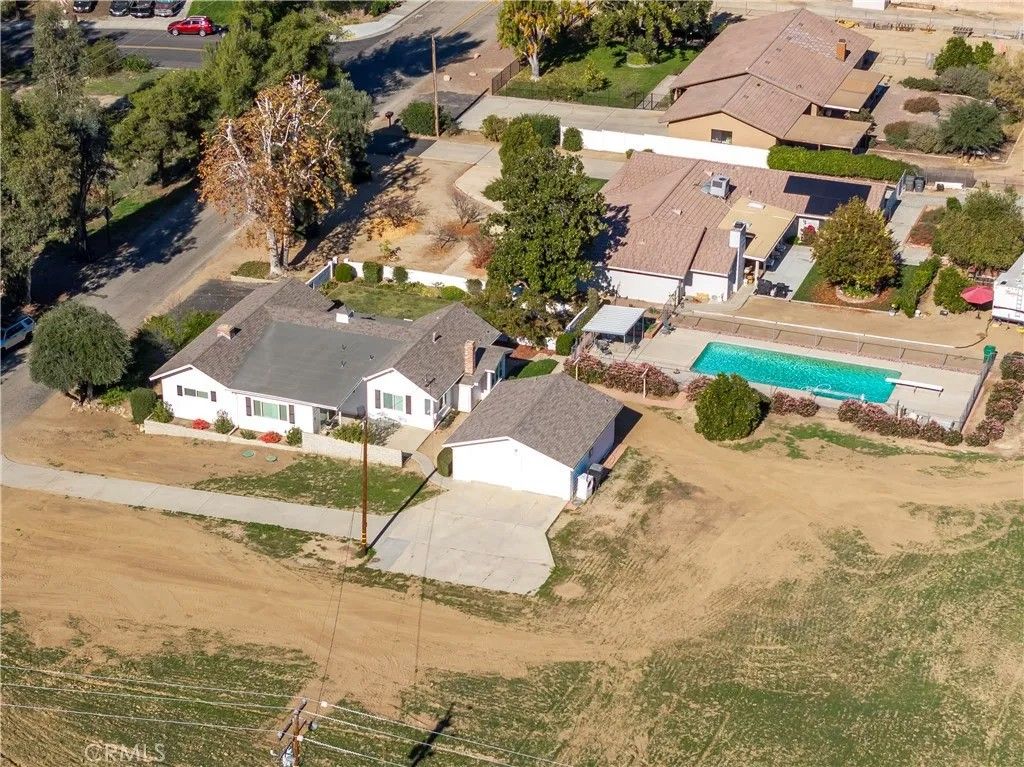 Meticulously maintained by the original owner, this well-built custom home offers three bedrooms and two bathrooms, showcasing timeless craftsmanship and thoughtful design throughout. Newer windows enhance energy efficiency, while the formal living and dining rooms feature vaulted ceilings, built-in bookshelves, and a welcoming fireplaceperfect for both everyday living and elegant entertaining. The open-concept kitchen and family room are filled with natural light and designed for connection and comfort. The kitchen offers a breakfast bar, double oven, gas cooktop, dishwasher, informal dining area, and beautiful views of the covered patio and enclosed grassy yard. Large windows frame picturesque mountain views, creating an ideal setting to enjoy morning coffee or an evening beverage while watching breathtaking sunsets. The spacious family room flows seamlessly to an additional patio, providing an inviting space for gatherings with family and friends. The private primary suite features two closets, a Hogan-style fireplace, ceiling fan, wood flooring, and direct access to the exterior. The primary bathroom includes a combination tub and shower with newer countertops. Two additional bedrooms are generously sized and thoughtfully positioned for privacy. The updated guest bathroom features a walk-in shower, and window coverings are installed throughout the home. Outdoors, the pool area is separately fenced for safety and privacy. A detached two-car garage with an additional bathroom adds convenience and flexibility. Situated on over an acre of land, this exceptional property offers ample space for RVs, recreational toys, or future possibilitiesmaking it the perfect place to turn your dream into reality.